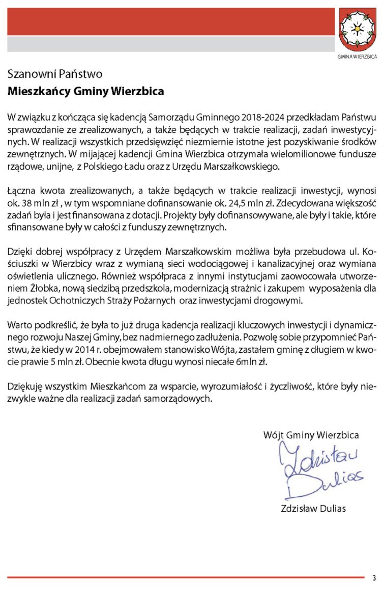 Sprawozdanie z realizacji zadań na terenie Gminy Wierzbica w latach 2018-2024