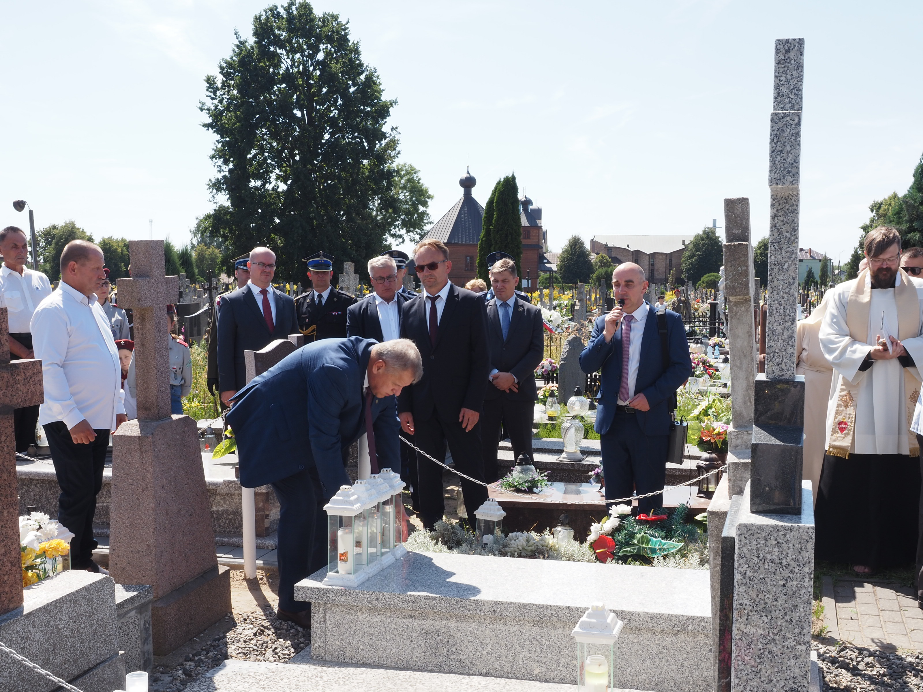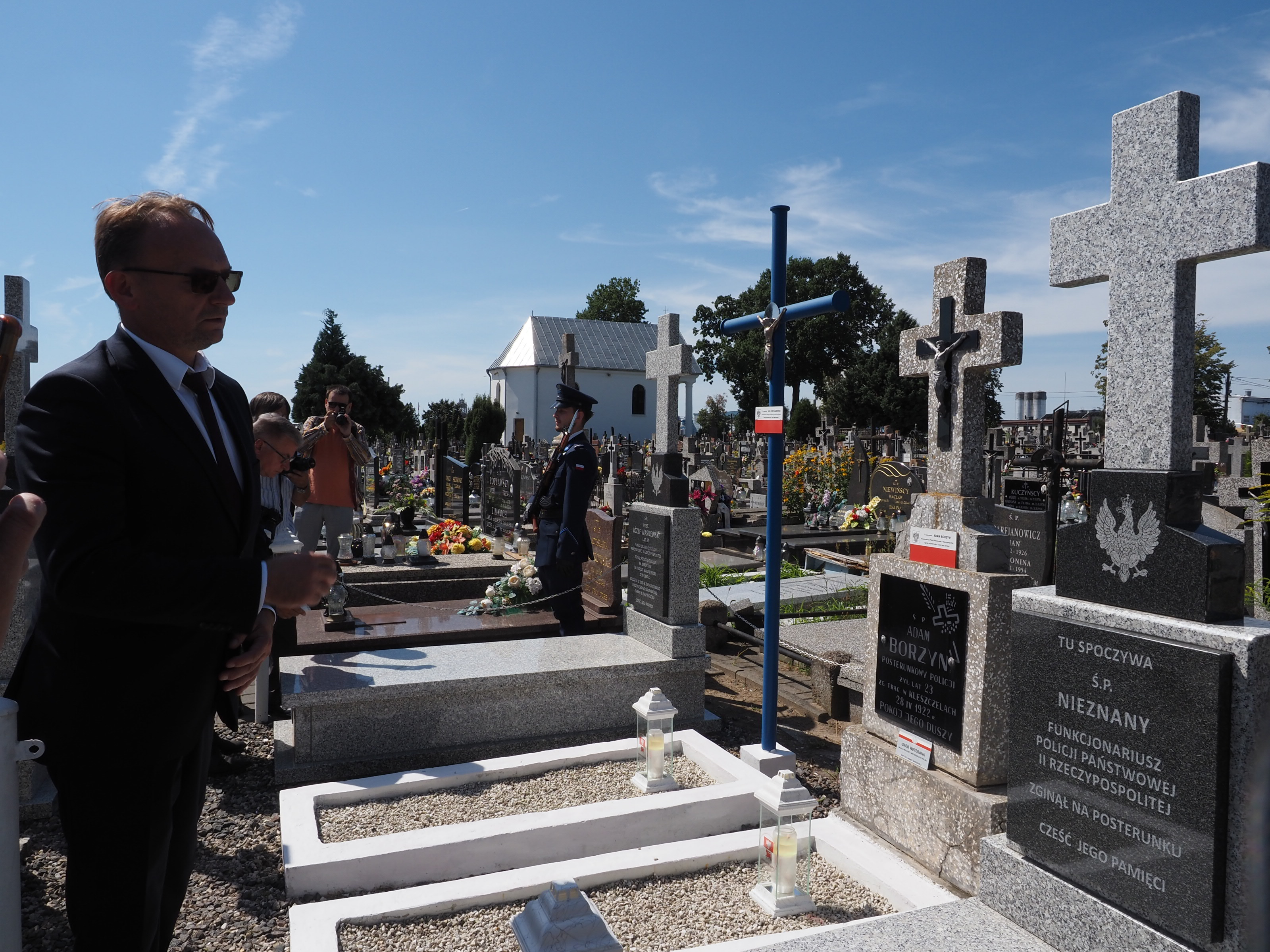 Ostatnim akordem celebracji sierpniowego święta było poświęcenie odnowionych przez IPN czterech nagrobków przedwojennych policjantów, spoczywających na kwaterze policyjnej. W asyście warty honorowej pełnionej przez funkcjonariuszy Policji, aktu poświęcenia dokonał ks. Łukasz Grabowski, wikary parafii Miłosierdzia Bożego. Poprzedzone to zostało krótkim wstępem historycznym przez prowadzącego uroczystości Piotra Daniło. Następnie uczestnicy uroczystości na mogiłach policjantów złożyli wiązanki kwiatów i ustawili zapalone znicze. Dokonali tego również przedstawiciele władz powiatu ze starostą Snarskim na czele.