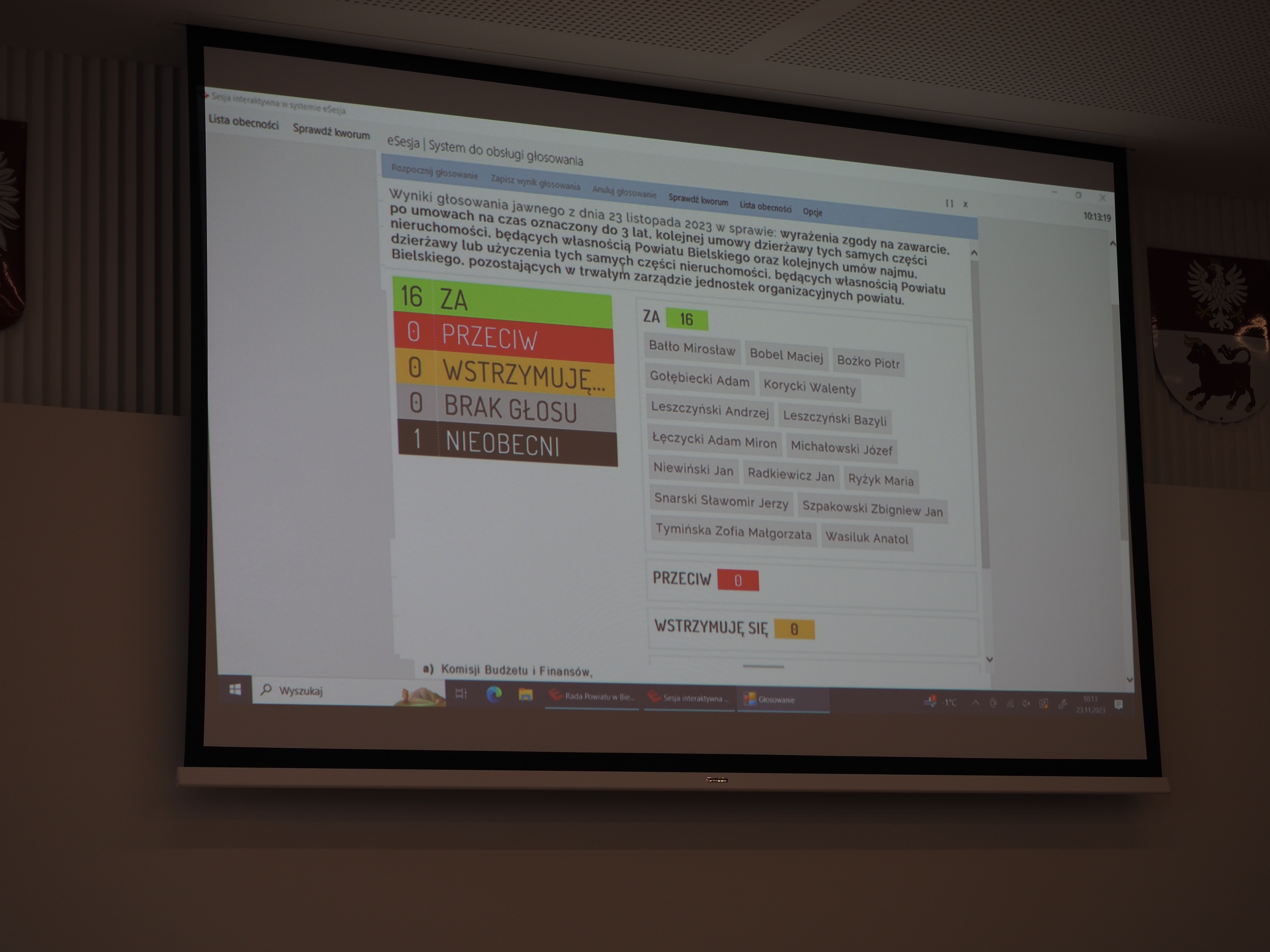 Po sprawdzeniu kworum radni przyjęli protokół z poprzedniej sesji oraz zapoznali się ze sprawdzaniem z pracy zarządu powiatu, przedstawionym przez starostę bielskiego Sławomira Jerzego Snarskiego.