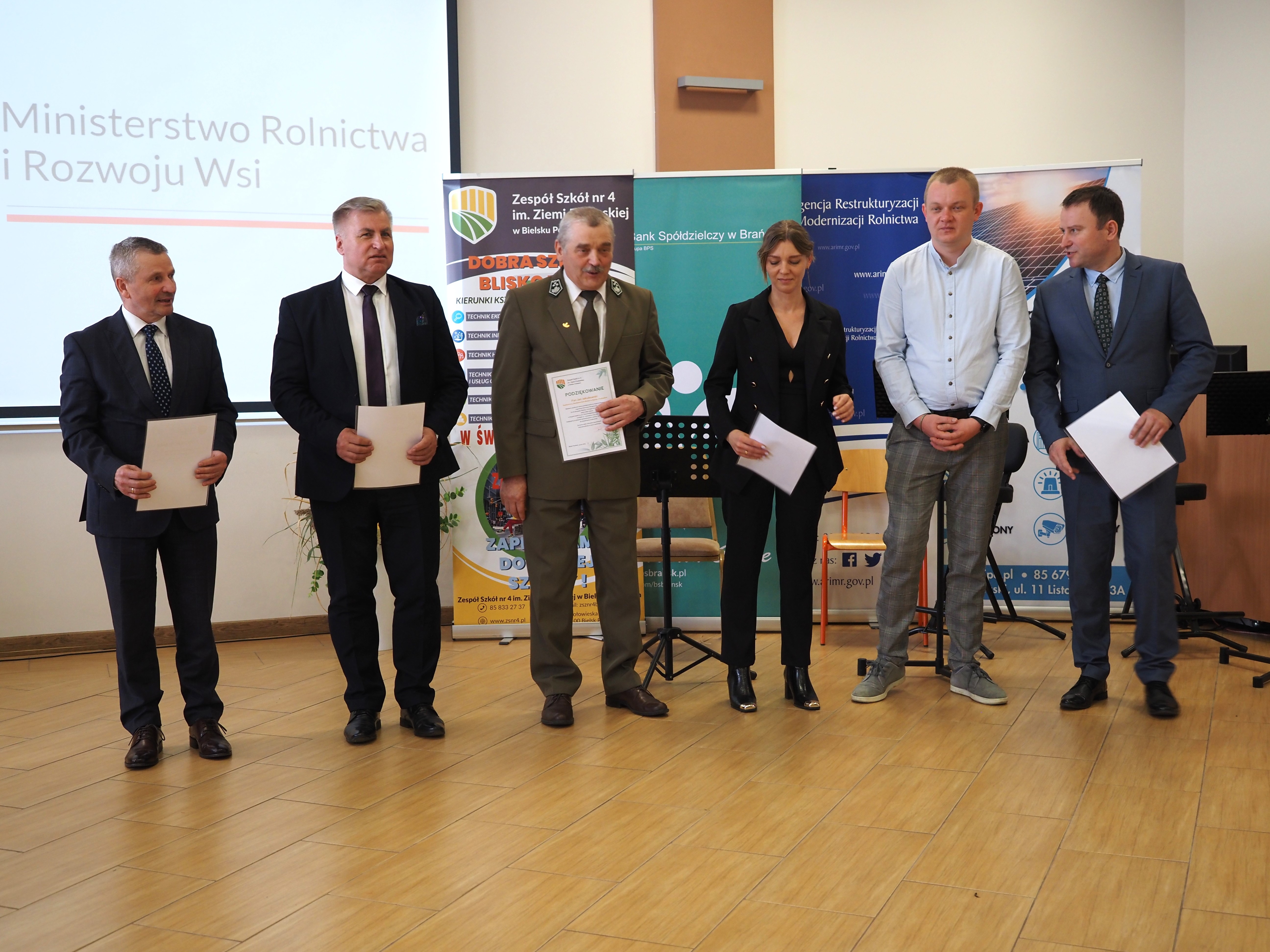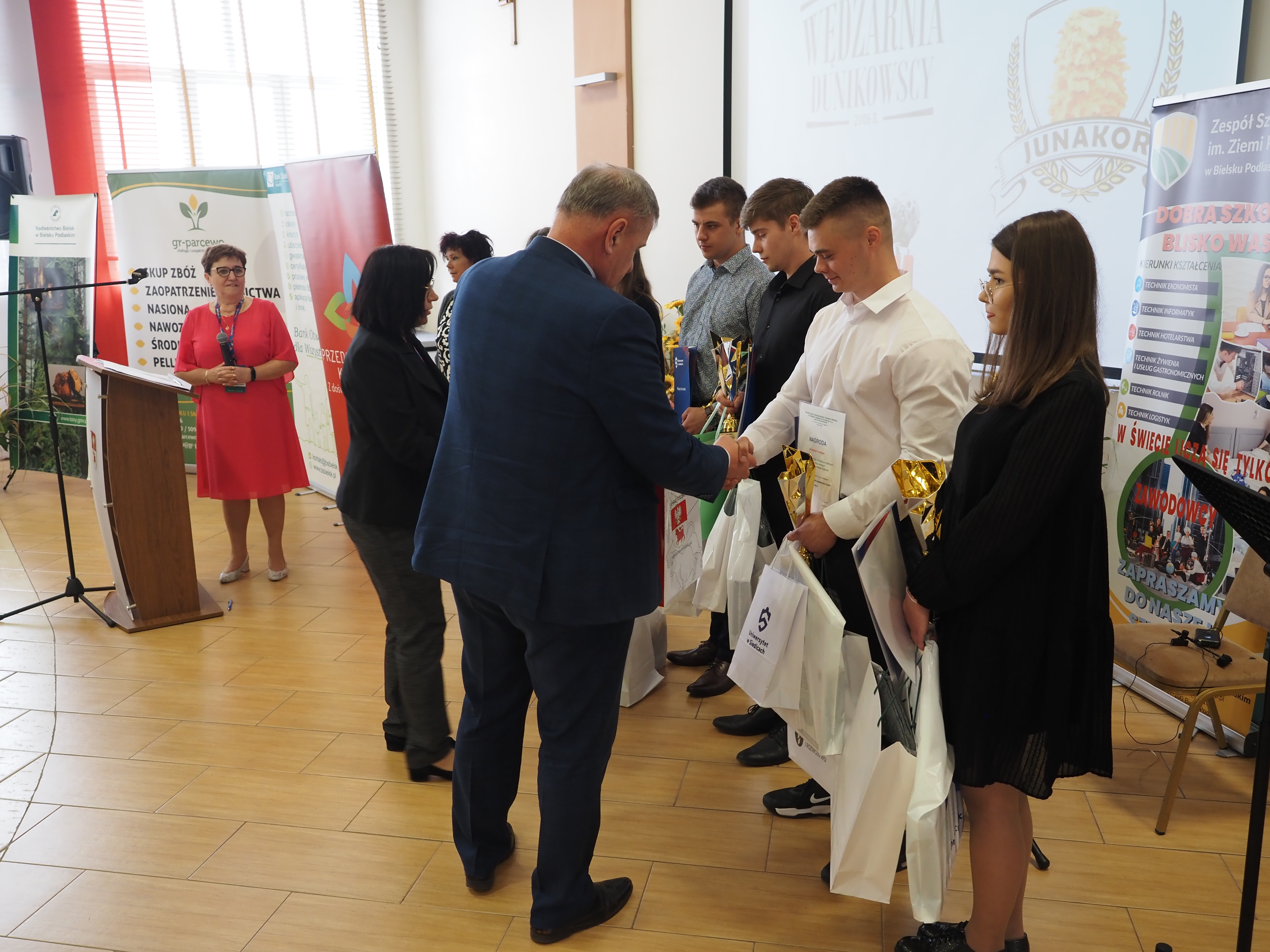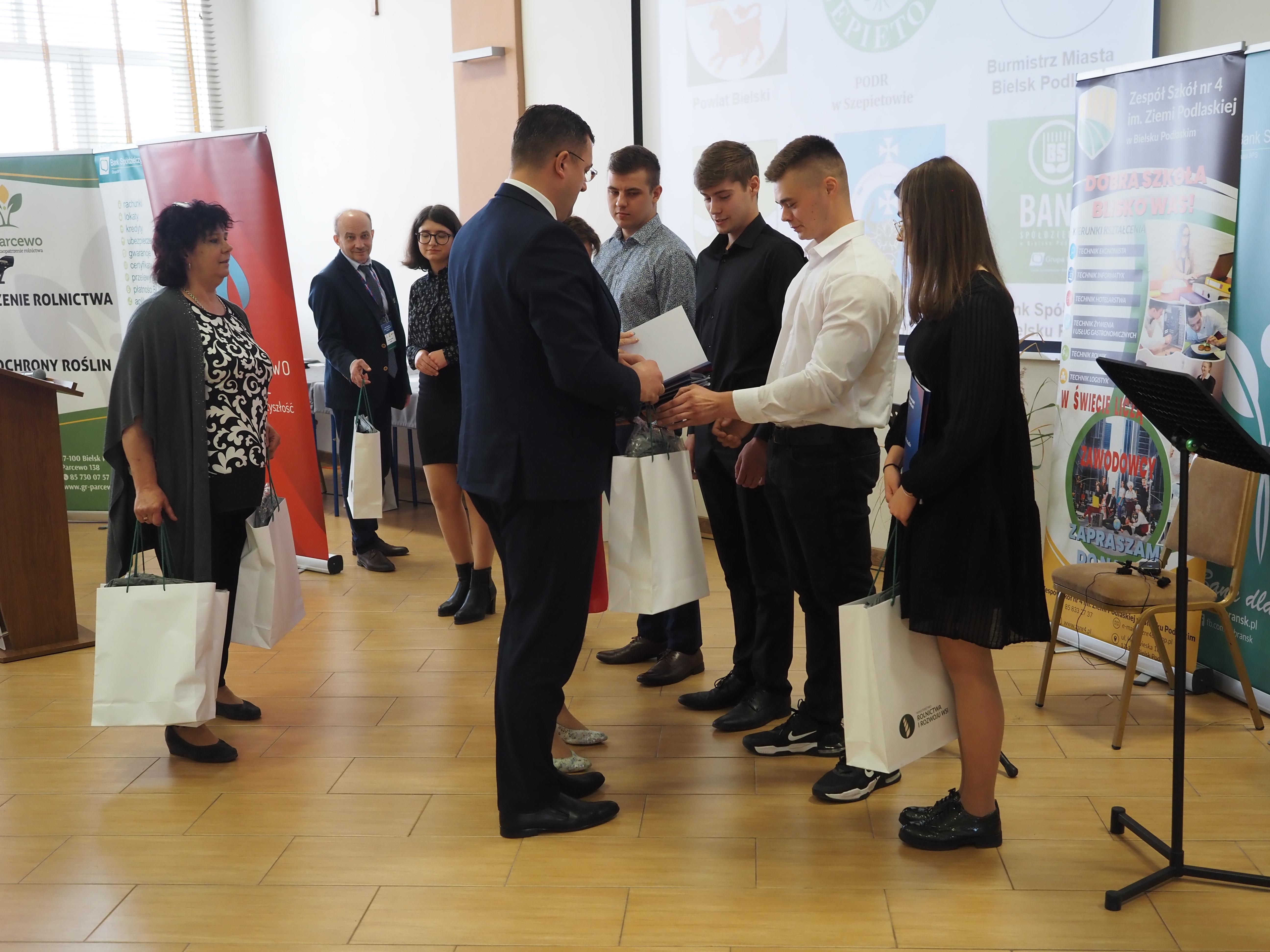 W dalszej części uroczystości dokonano ogłoszenia wyników Olimpiady i wręczenia nagród finalistom. Okazało się, że wśród nich znalazło się 2 uczniów Zespołu Szkół nr 4 im. Ziemi Podlaskiej. I miejsce w bloku produkcja zwierzęca zajął Tomasz Maksimiuk, natomiast w bloku produkcja roślinna na drugim miejscu uplasował się Grzegorz Zinkiewicz. Obaj chłopcy awansowali do finału ogólnopolskiego, który rozegra się w maju w Szczecinie. Starosta Sławomir Jerzy Snarski ufundował i wręczył nagrody uczestnikom, którzy zajęli pierwsze miejsca w poszczególnych blokach tematycznych.