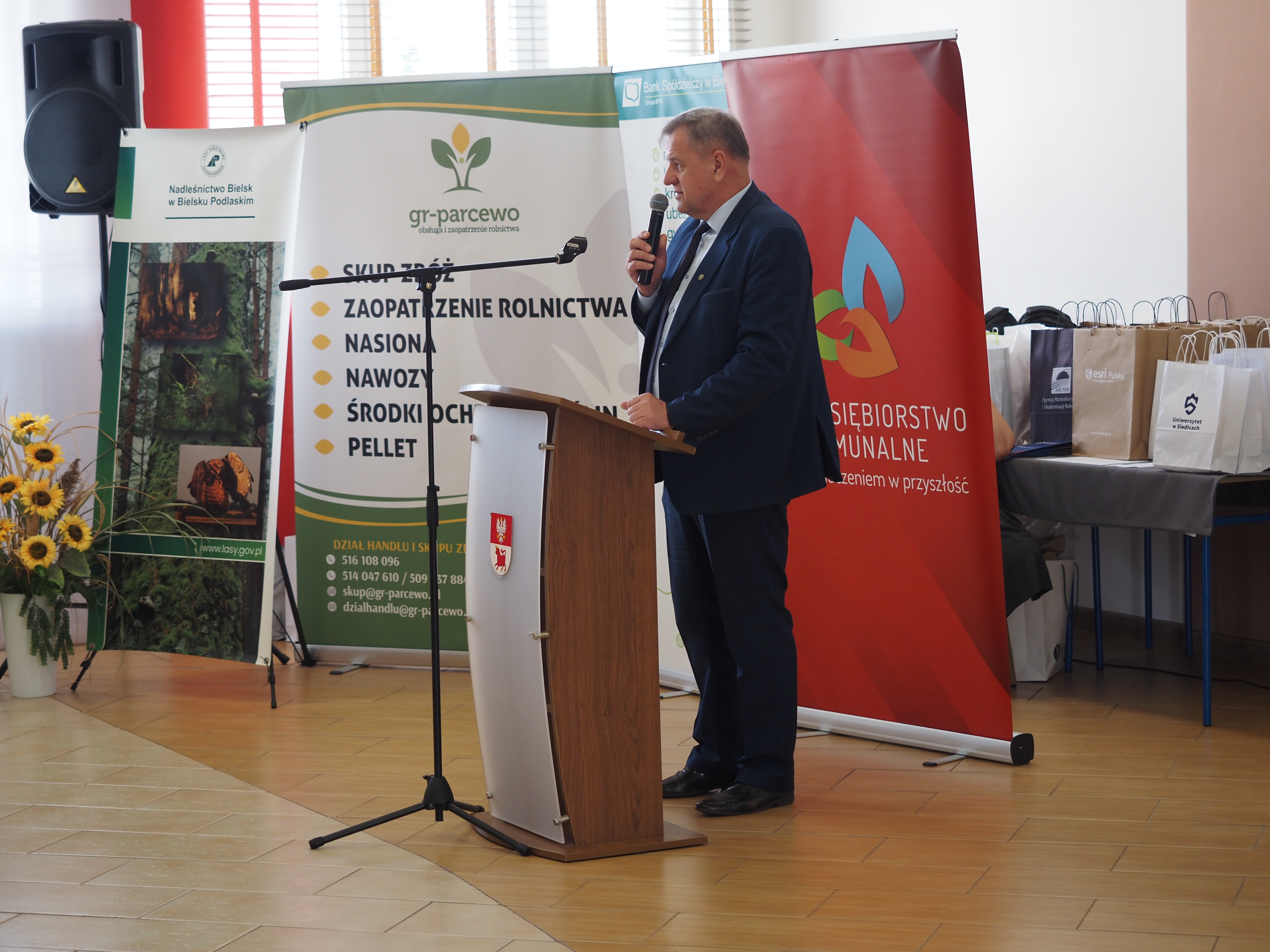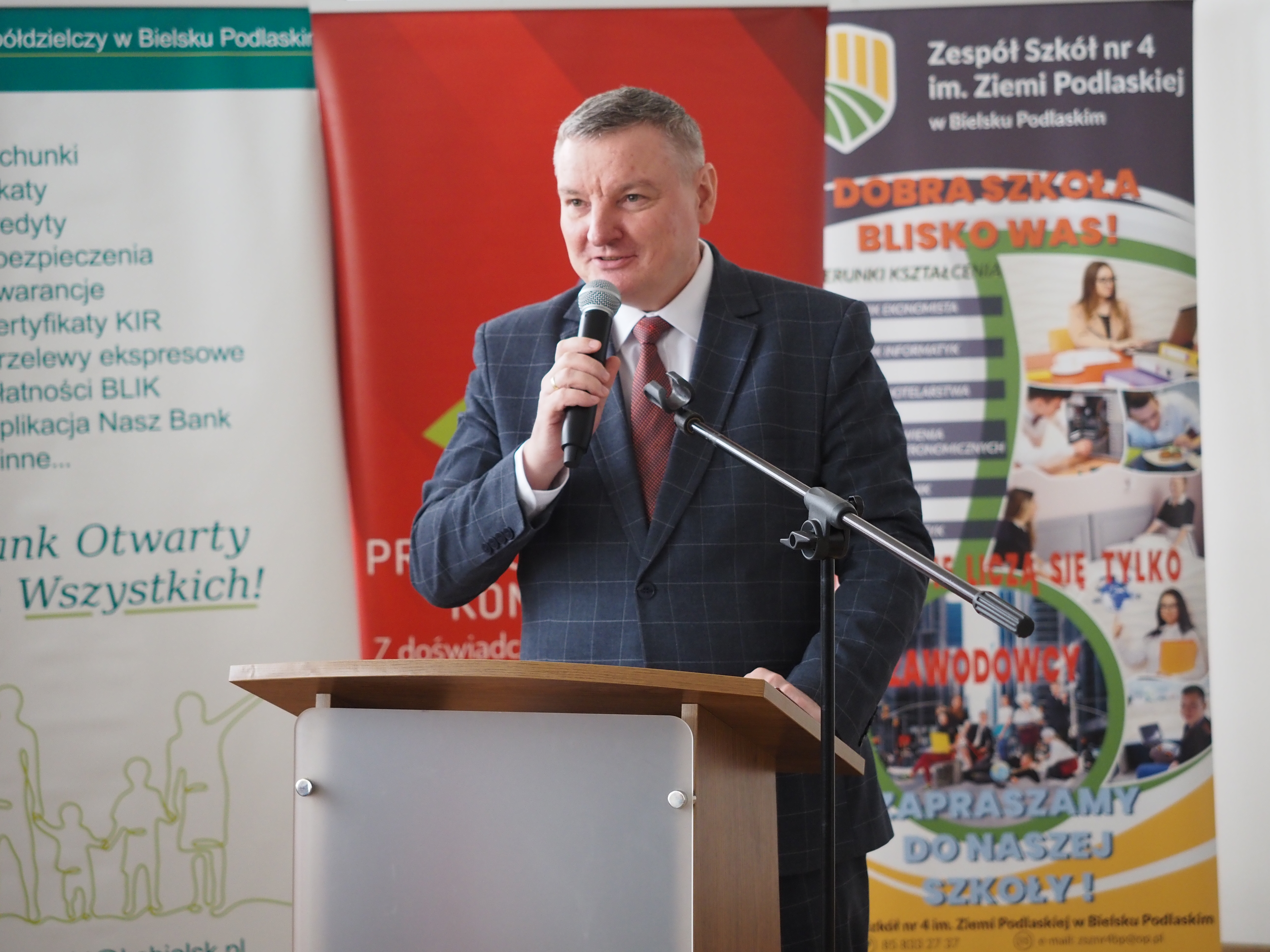 Przemawiając do zgromadzonych starosta bielski Sławomir Jerzy Snarski podkreślił rolę Powiatu Bielskiego w działaniach wspierających naukę i oświatę, cieszącym się tytułem „Samorządowego Lidera Edukacji” nadanym przez kapitułę Fundacji Rozwoju Edukacji i Szkolnictwa Wyższego. – Nie ma postępu bez wiedzy, nie ma postępu bez nauki i poznawania świata – mówił starosta Snarski. – Kieruję słowa uznania dla komitetu okręgowego Olimpiady za to, że tworzy platformę, na której młodzież może wykazać się swoją wiedzą. Mądrość ludzi dorosłych polega na tym, żeby przyspieszyć czas ten, który przed wami, przed młodym pokoleniem. Polega to na tym, żeby młode pokolenie zrozumiało, że nie ma nic za darmo, że nie można zmarnować czasu, który dzisiaj macie w szkołach, który macie w ramach edukacji. Docenicie to za 10-15 lat. Mądrością nauczycieli i ludzi dorosłych jest to, żeby zmobilizować młodzież do zdobywania wiedzy i poznawania świata, bo wówczas dajemy sobie szansę.
