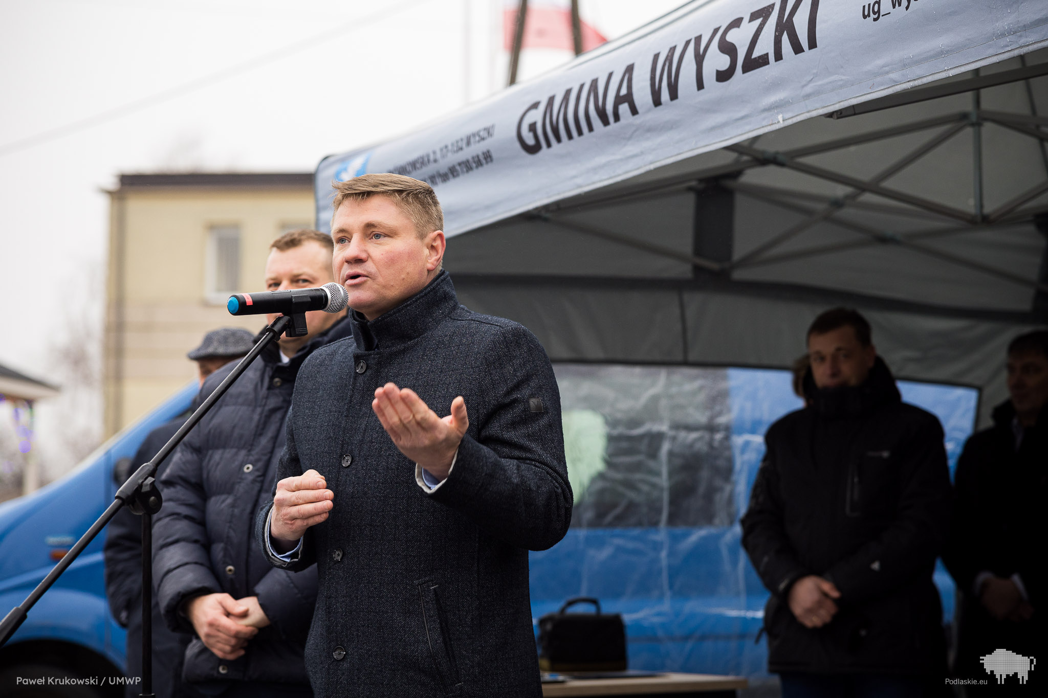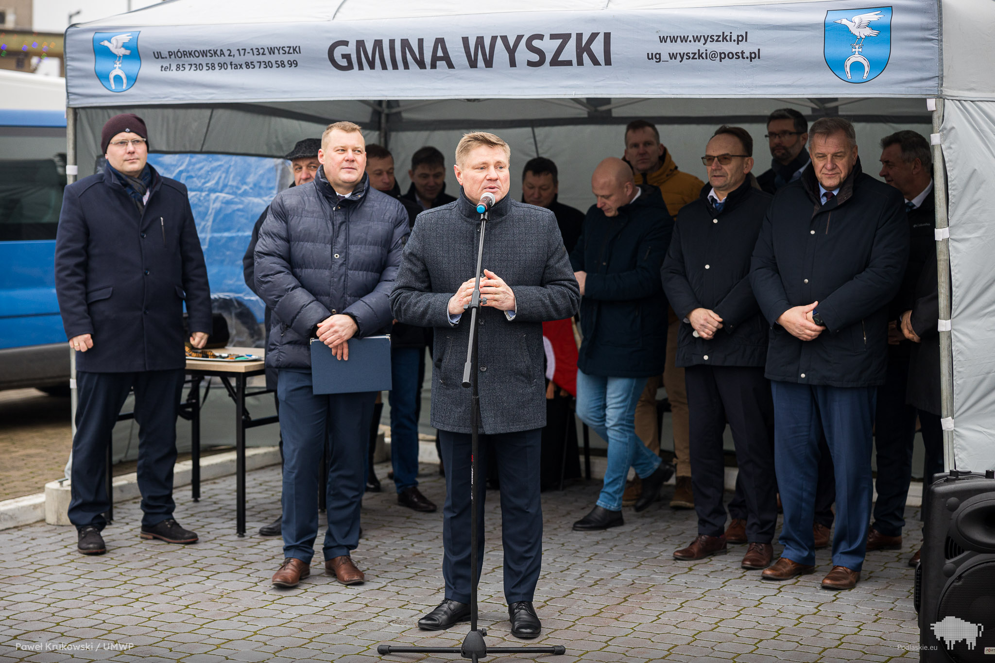 W wydarzeniu uczestniczyli m.in. starosta bielski Sławomir Jerzy Snarski, radni gminy Wyszki oraz przedstawiciele firm, które wygrały przetarg.