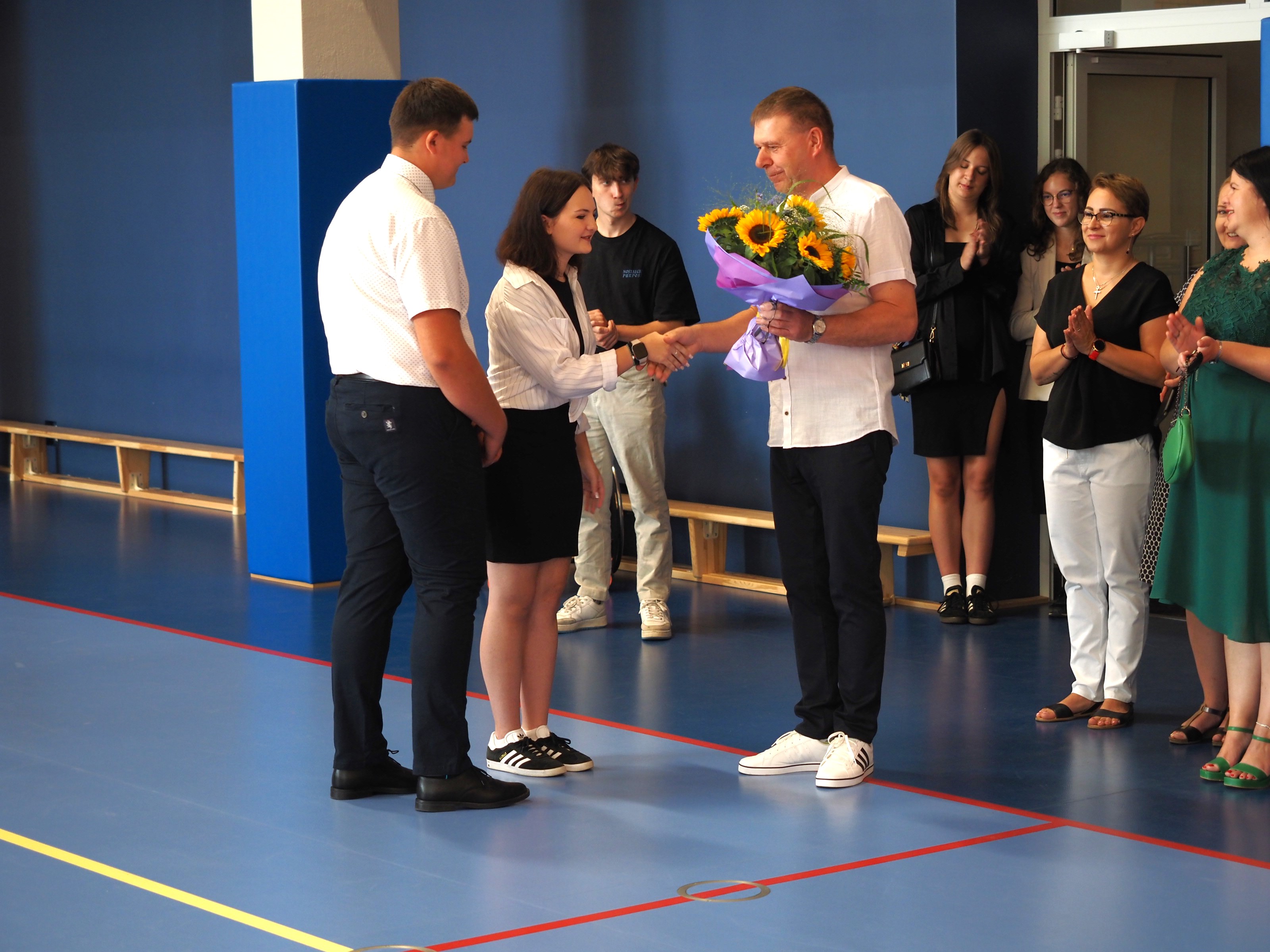 Nieco wzruszającym momentem były podziękowania nowego dyrektora szkoły dla Włodzimierza Wawulskiego, w ostatnim czasie kierującego placówką. Z rąk uczniów przyjął on bukiet kwiatów.