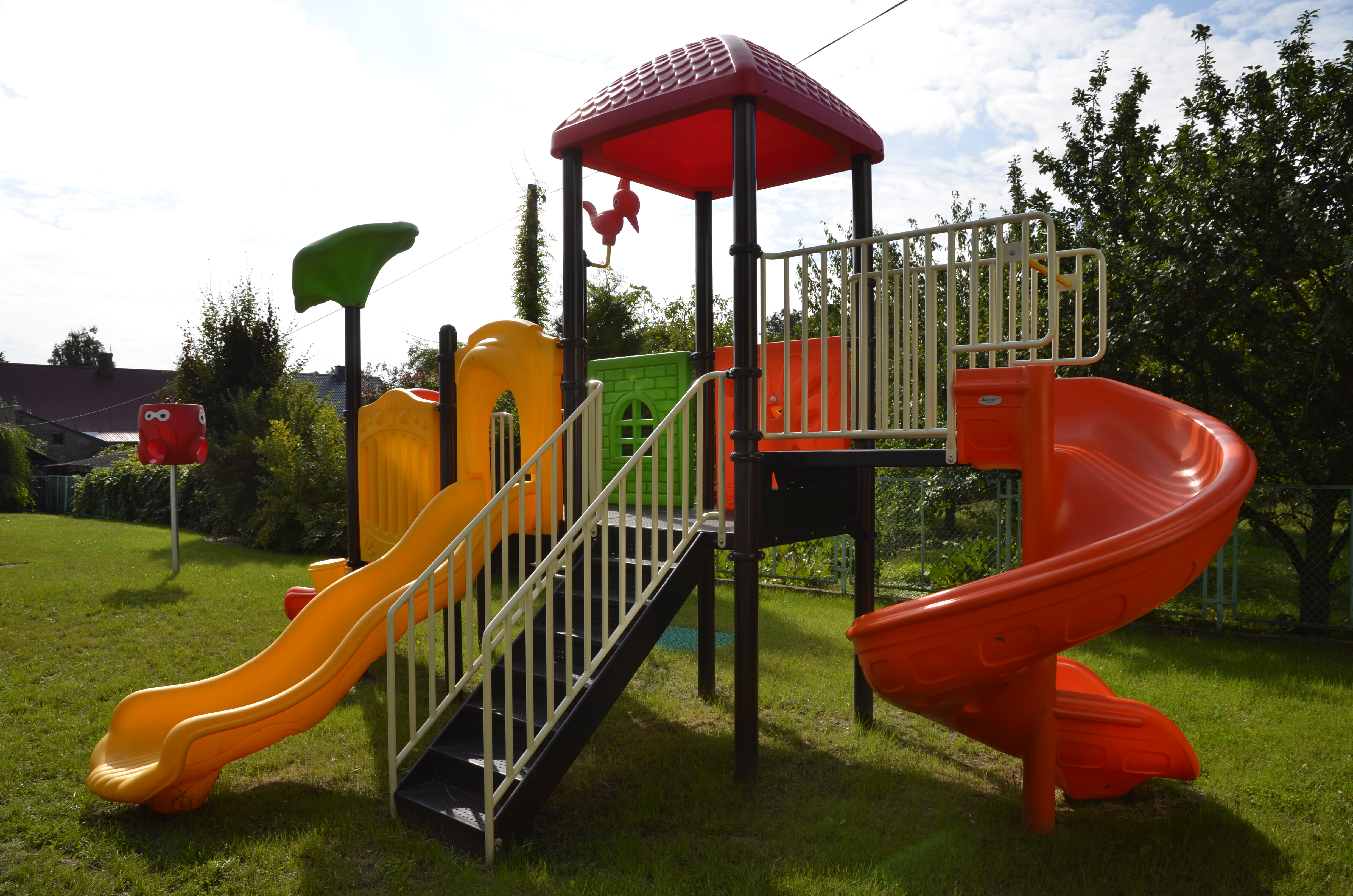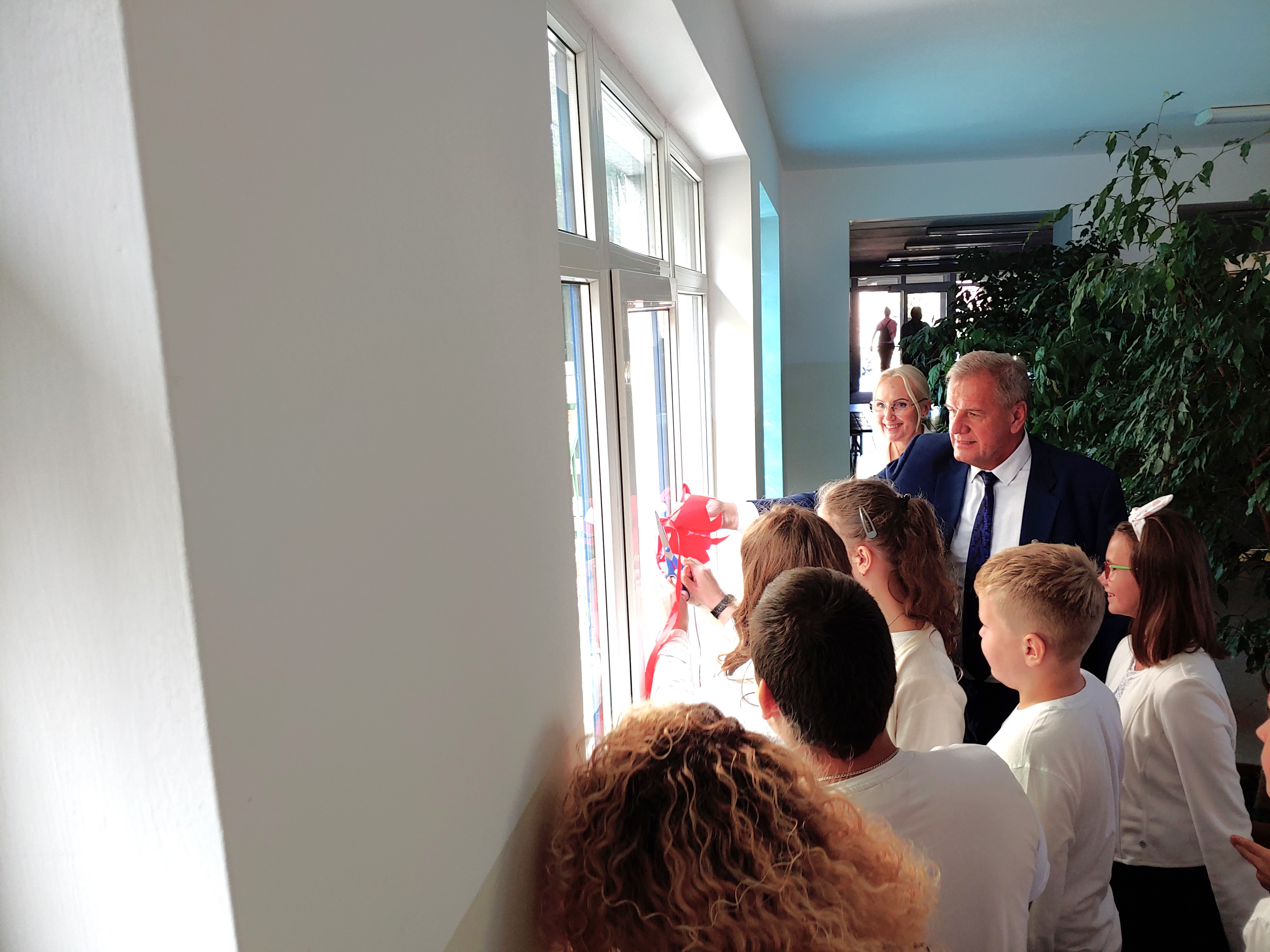 Po zakończeniu ogólnego spotkania starosta wraz z dyrektorem szkoły i uczniami dokonał otwarcia nowego placu zabaw, wyposażonego w urządzenia do zabawy: okręcany fotel, huśtawki, specjalny kosz do rzucania piłek oraz zjeżdżalnie.