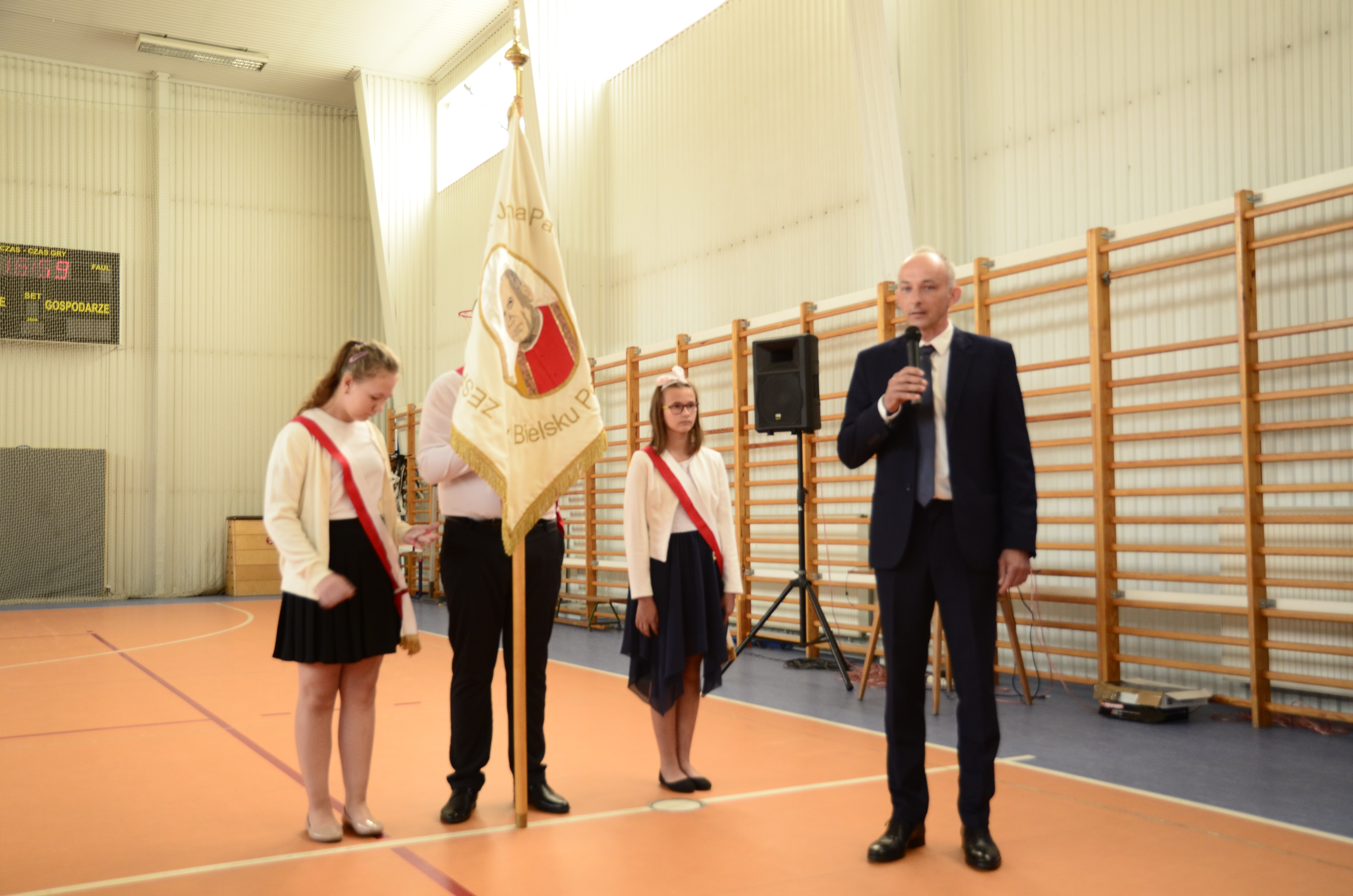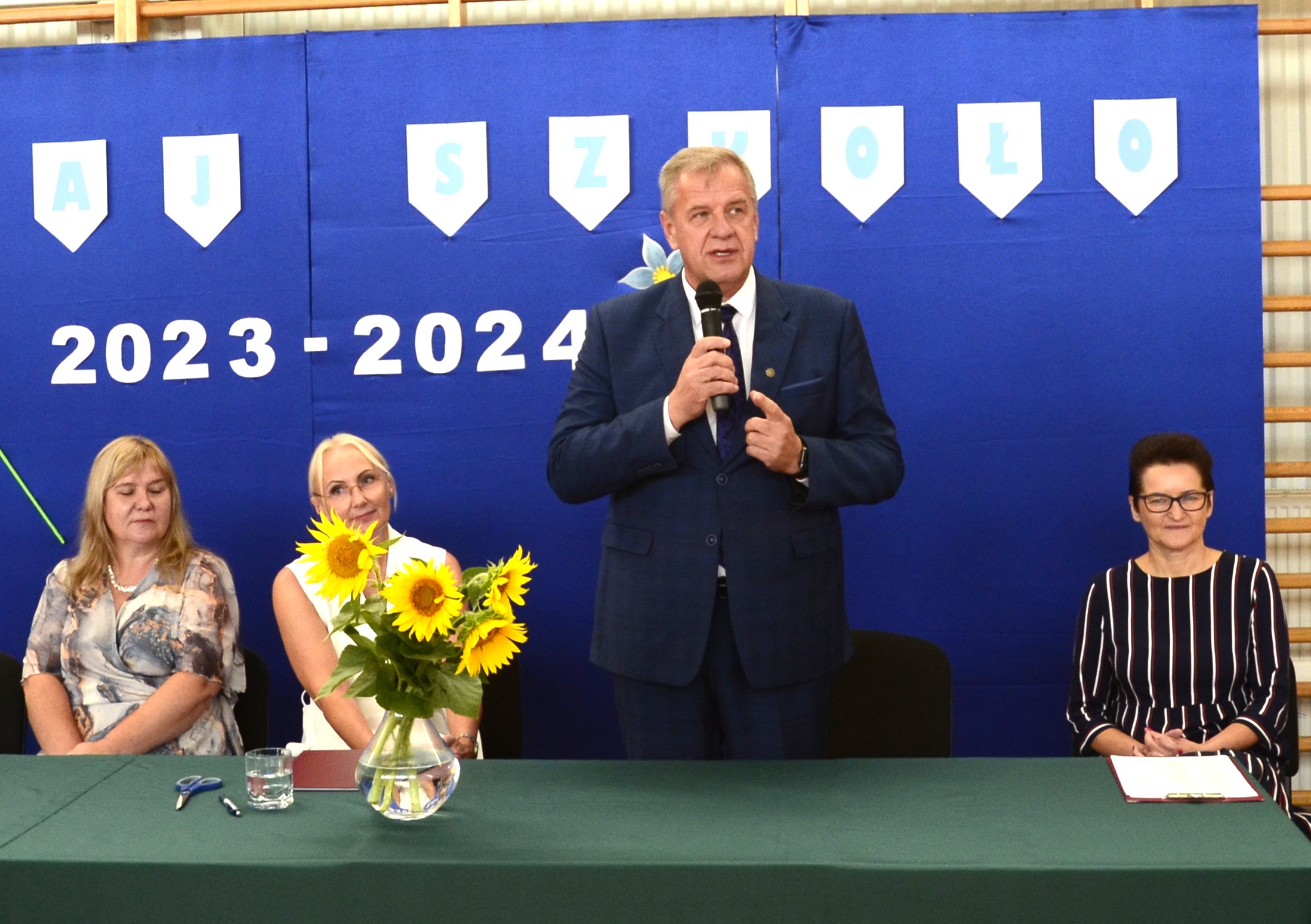Akademia rozpoczynająca nowy rok szkolny zgromadziła uczniów i ich rodziców, radę pedagogiczną i dyrekcję. Po wprowadzeniu sztandaru szkoły odegrano hymn państwowy, a następnie dyrektor Katarzyna Pacewicz powitała wszystkich uczestników uroczystości. Po niej wystąpił starosta Sławomir Jerzy Snarski, który poprzez krótki i zabawny dialog z uczniami nawiązał z nimi bardzo dobry kontakt. Życzył im też, aby z radością przez cały rok uczęszczali do swojej szkoły, jak podkreślił – wyjątkowej.