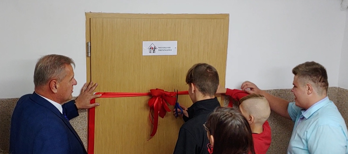 W pomieszczeniach piwnicznych znalazło się miejsce na urządzenie mieszkania treningowego. Komfortowo wyposażona pracownia służyć będzie uczniom szkoły do nauki i doskonalenia codziennych czynności związanych z utrzymaniem mieszkania, takich jak sprzątanie, przygotowywanie posłania do snu, prasowanie ubrań i ich układanie w szafie itd. W otwarciu pomieszczenia uczestniczył starosta Snarski, który przecięcie wstęgi powierzył jednemu z uczniów.