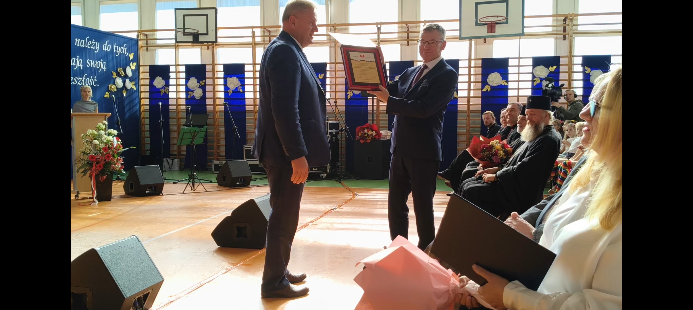 Składając gratulacje, winszując jubileuszu i wręczając okolicznościowe upominki występowali znamienici goście. Głos zabrali: prawosławny arcybiskup bielski Grzegorz, biskup drohiczyński Piotr Sawczuk, ks. prałat Zbigniew Karolak, zastępca burmistrza Iwona Kołos wraz sekretarzem miasta Jolantą Mierzwińską, przewodnicząca rady rodziców Małgorzata Karczewska oraz starosta bielski Sławomir Jerzy Snarski.