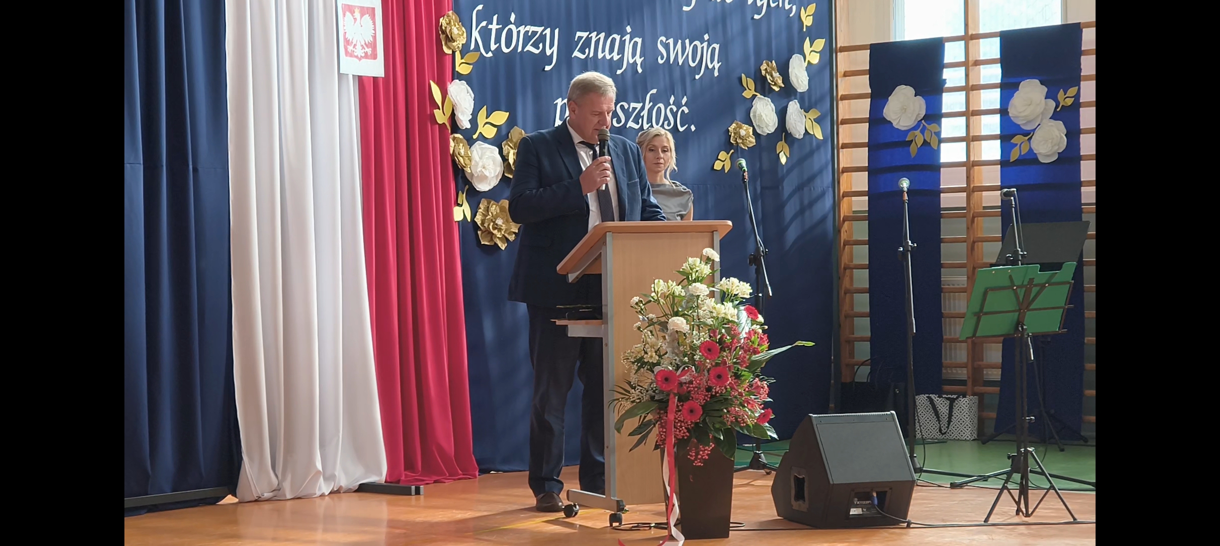 Nawiązując do wcześniejszych występów przedszkolaków starosta mówił – Miałem taką wizję, kiedy te najmłodsze dzieci tańczyły i machały rączkami, myślałem wówczas, że szykują się do lotu. Rolą więc nauczyciela jest to, żeby nauczyć je latać, żeby wierzyć w siebie. Ale ta wiara musi być oparta na prawdzie, na odkrywaniu piękna. Musi być oparta na szacunku do drugiego człowieka, na widzeniu brata w drugim człowieku. Jeżeli jest budowana na prawdzie, a więc i na nauce, to wtedy wzbijając się możemy dostrzec ten świat, możemy szukać swego miejsca, możemy rozwijać się i służyć rodzinom i państwu.