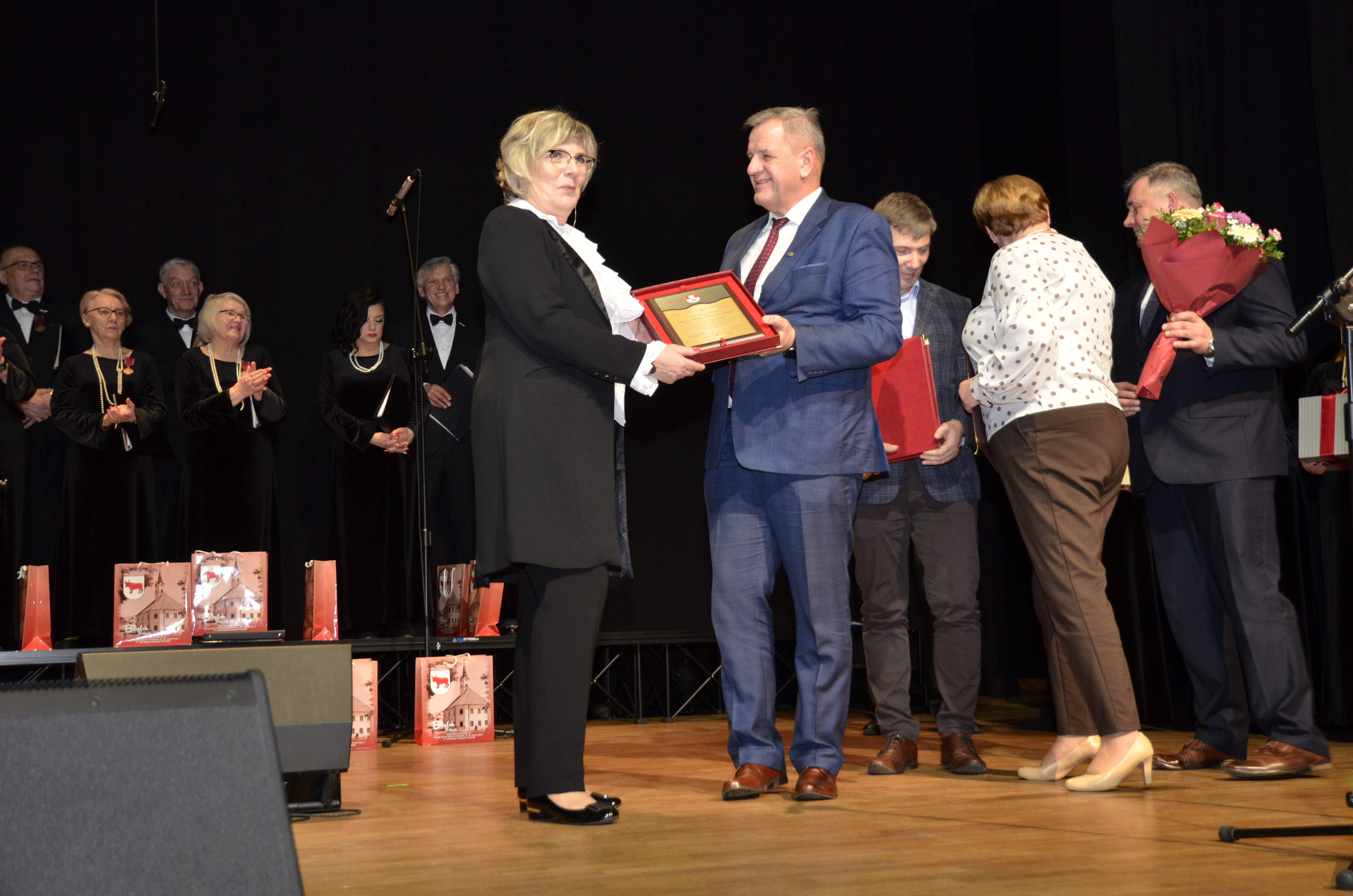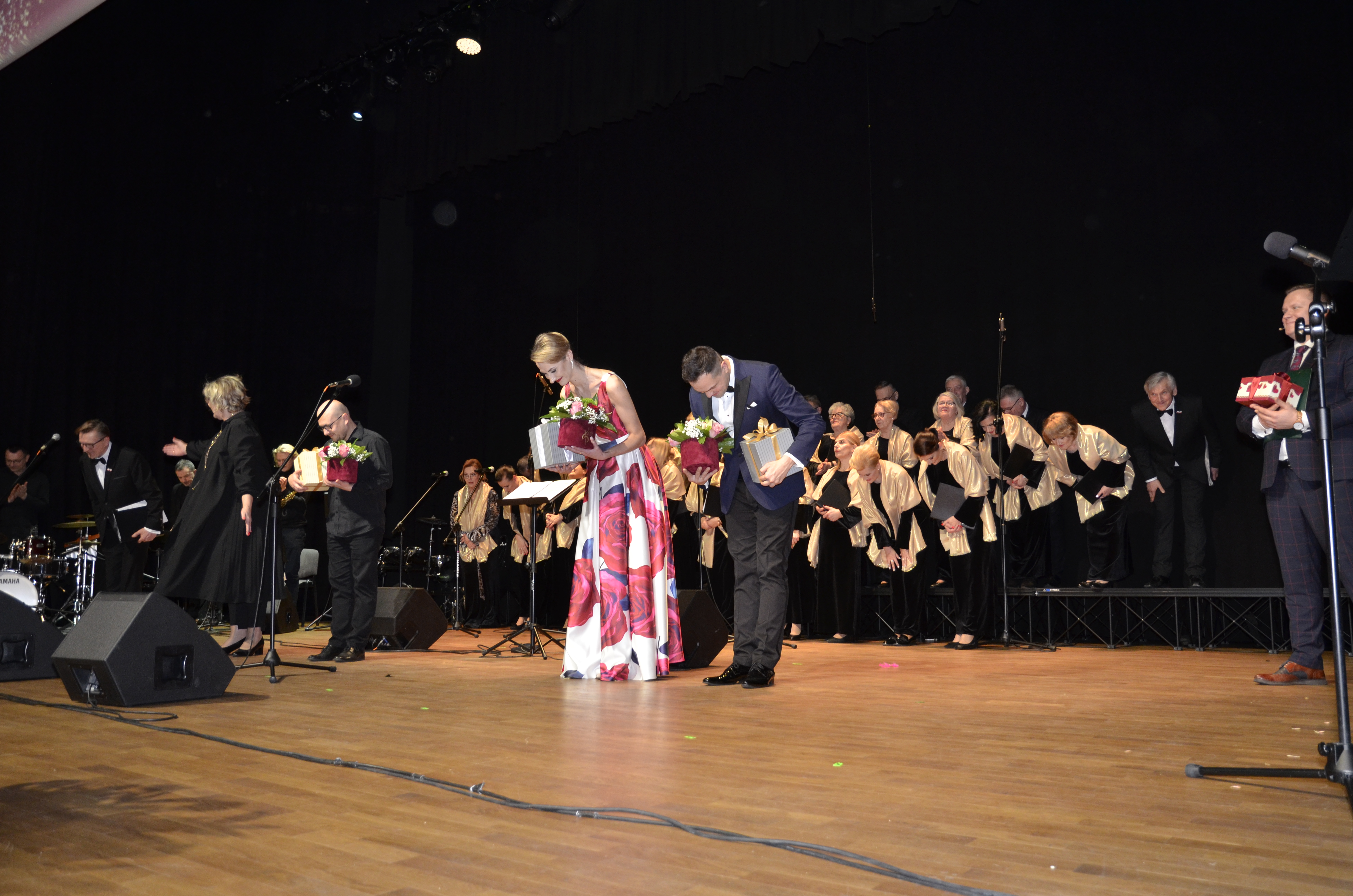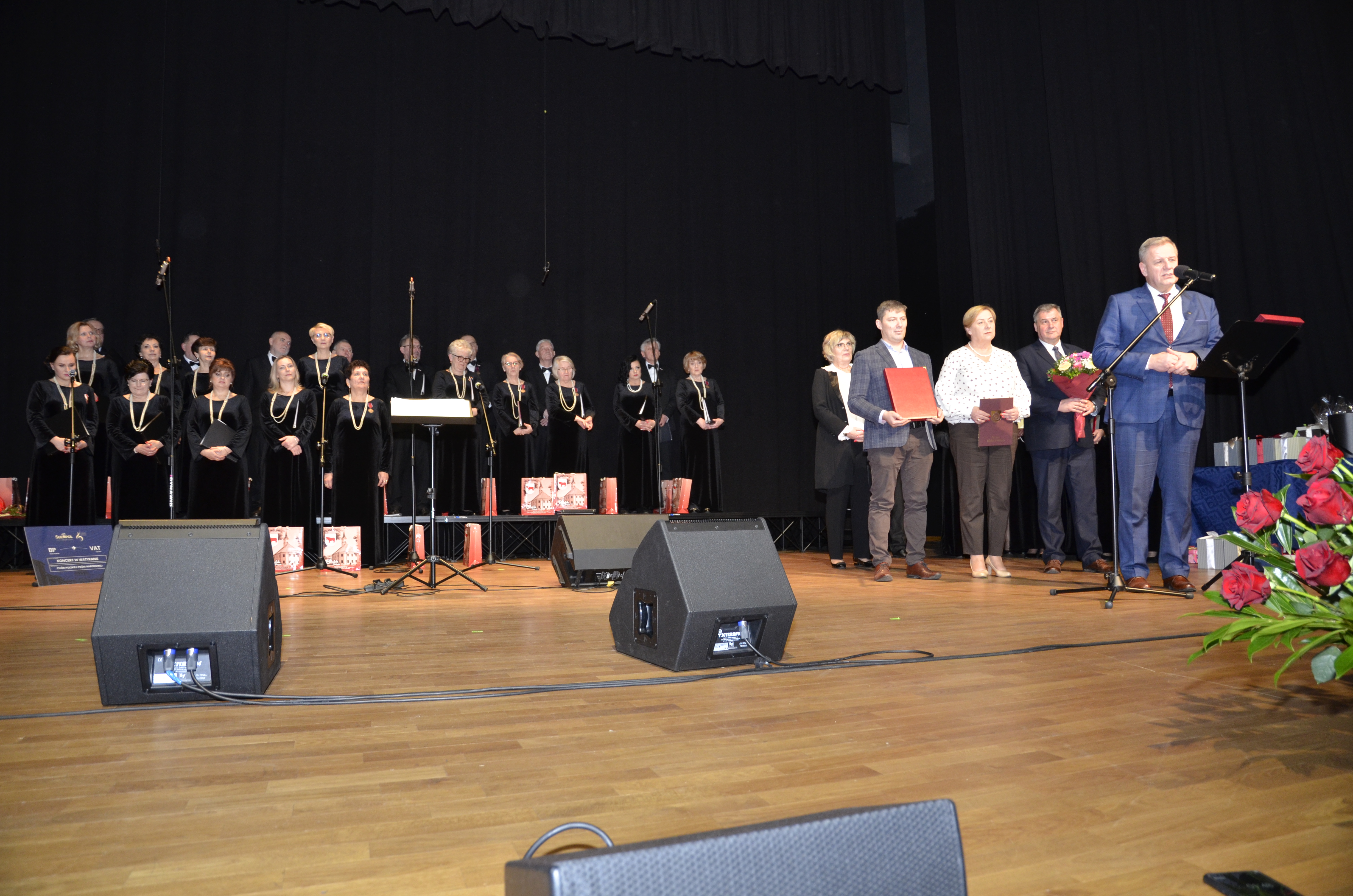 Starosta wręczył pamiątkowy grawerton dyrygentowi i kierownikowi artystycznemu chóru Elżbiecie Bilmin. Artyści odwdzięczyli się staroście wręczając mu upominki, dziękując w ten sposób za udzielane im wsparcie.