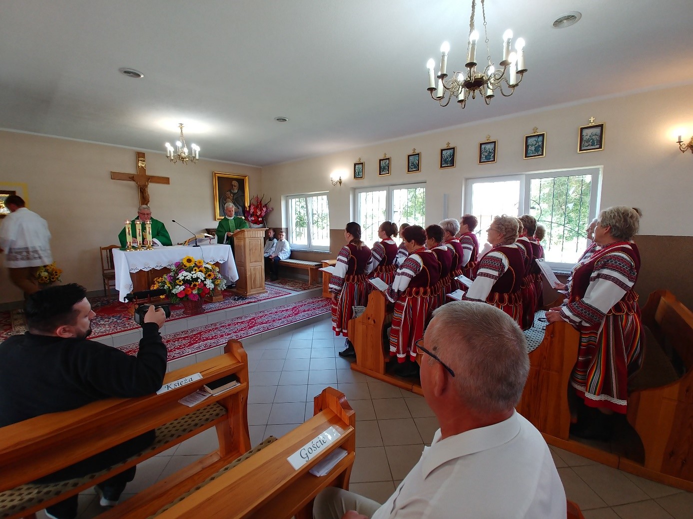 W homilii ks. Wojtkowski przypomniał skomplikowane dzieje zespołu, który powstał w Mniu w 1981 roku. Jego założycielkami były panie z miejscowego koła gospodyń wiejskich. W początkowym okresie działalności łączono repertuar wokalny z tańcami ludowymi, jednak wraz z upływem czasu ubywało członków, co zagroziło dalszemu istnieniu grupy. Po przezwyciężeniu tych trudności nie powrócono już do prezentacji tańców skupiając się na występach wokalnych. Jak humorystycznie zauważył ks. Wojtkowski, obecny skład zespołu zaprzecza panującym trendom demograficznym, skupiając licznie panie w różnym wieku. Mszę św. Mianka zakończyła głęboko poruszającym wykonaniem pieśni ku czci Matki Boskiej Domanowskiej. Zarówno we mszy, jak i w dalszej części obchodów jubileuszu uczestniczył Piotr Daniło – przedstawiciel starosty bielskiego Sławomira Jerzego Snarskiego, wójt gminy Brańsk Andrzej Jankowski oraz dyrektor Gminnego Ośrodka Upowszechniania Kultury w Kalnicy, radny powiatowy Maciej Bobel.