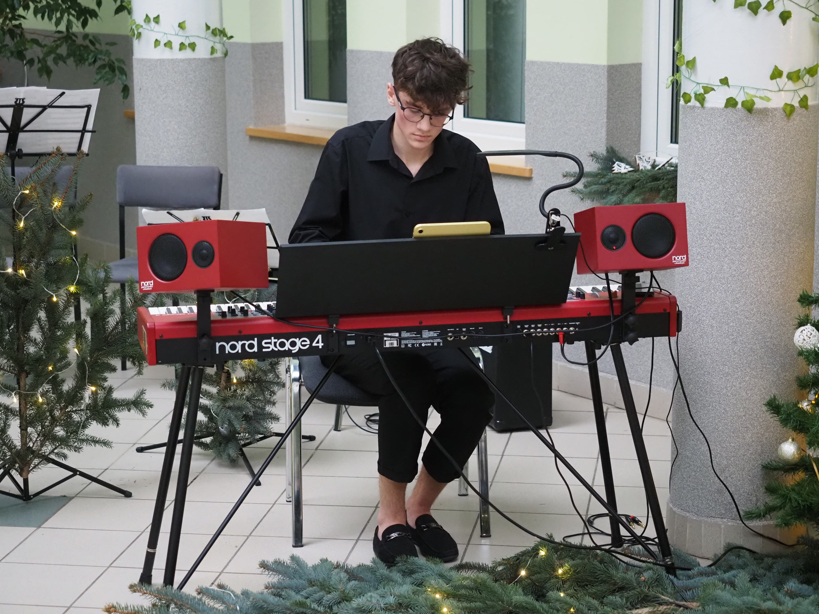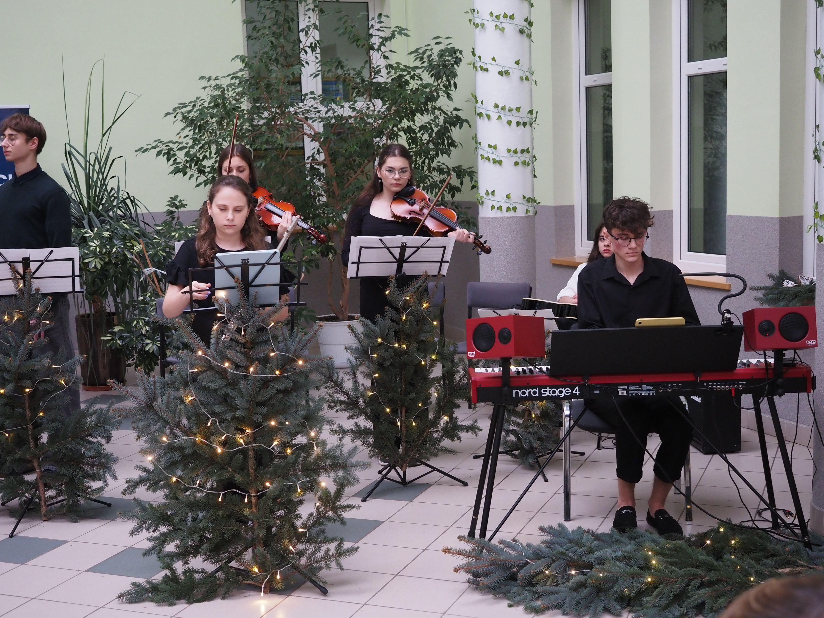 Ponad godzinny koncert, którego wysłuchali przedstawiciele Powiatu Bielskiego, obfitował w wiele niespodzianek. Młodzi artyści zaprezentowali dynamiczne, żywe widowisko, w którym przeplatały się energicznie wykonane kolędy, na przemian z wolnymi, wręcz łzawymi. Nawet jednak w tych ostatnich dało się odczuć ogromny ładunek emocji, które wyrażali młodzi wykonawcy, śpiewając z prawdziwą pasją. Przed liczną publicznością, w której dominowali uczniowie i nauczyciele, co chwila zmieniał się skład zespołu. Raz był to cały chór, do którego dołączali instrumentaliści, to znów występowali soliści, tria, duety i kwartety. Również akompaniujący zespół stale zmieniał swój skład. Głównym jego członkiem był gający na elektrycznym pianinie Patryk Huczko, który był też pomysłodawcą koncertu i aranżerem wszystkich utworów. Obok niego wystąpili Julia Daniło (flet poprzeczny), Natalia Prokopiuk i Zuzanna Warpechowska (skrzypce), Iga Grygoruk (gitara) oraz Maciej Klinicki (trąbka). Soliści to: Laura Kamińska, Dominika Żukowska, Emilia Korolko, Krzysztof Olszewski, Aleksandra Sakowicz, Julia Horodecka, Karolina Dziemian i Julia Kasjaniuk.