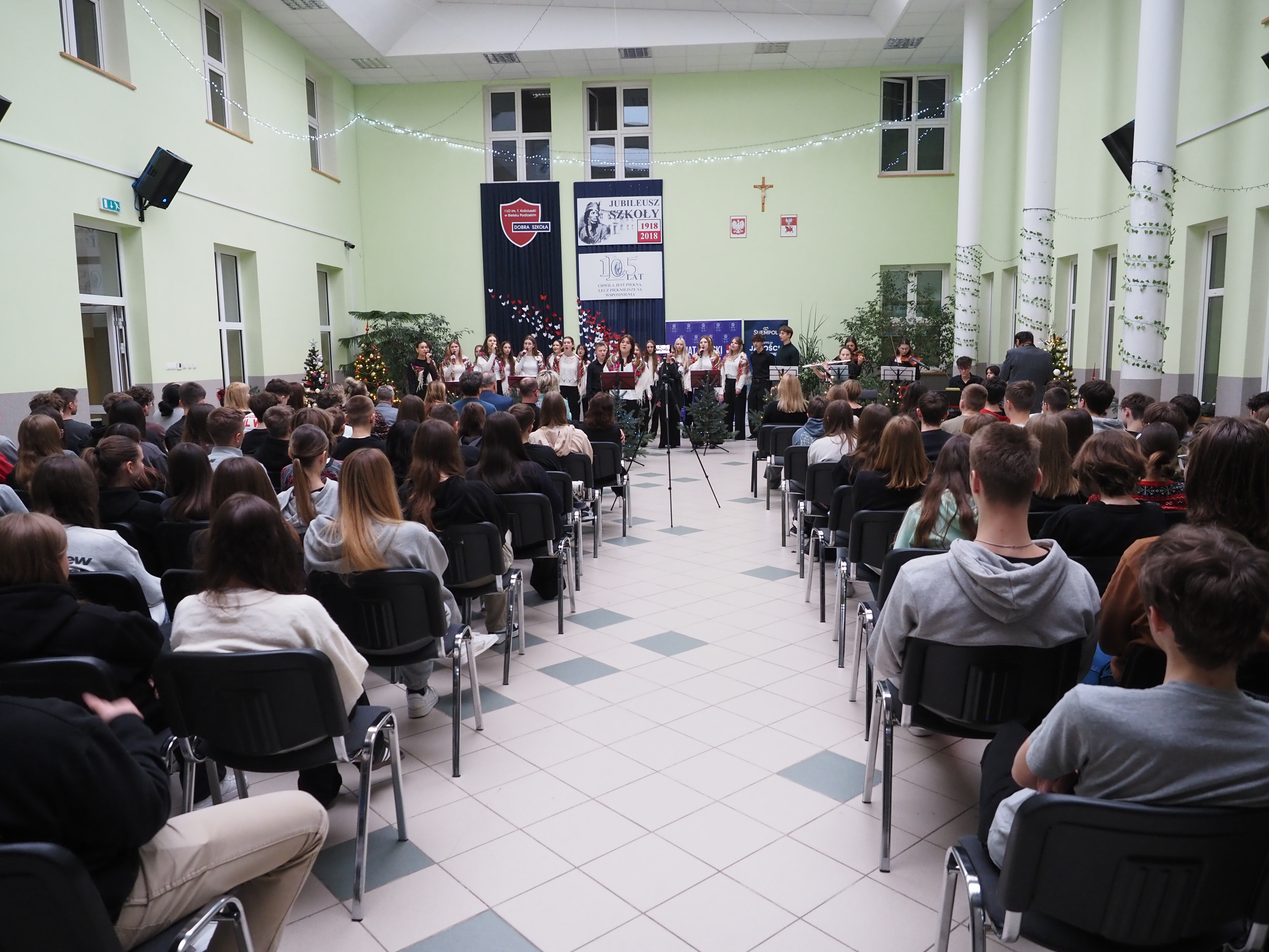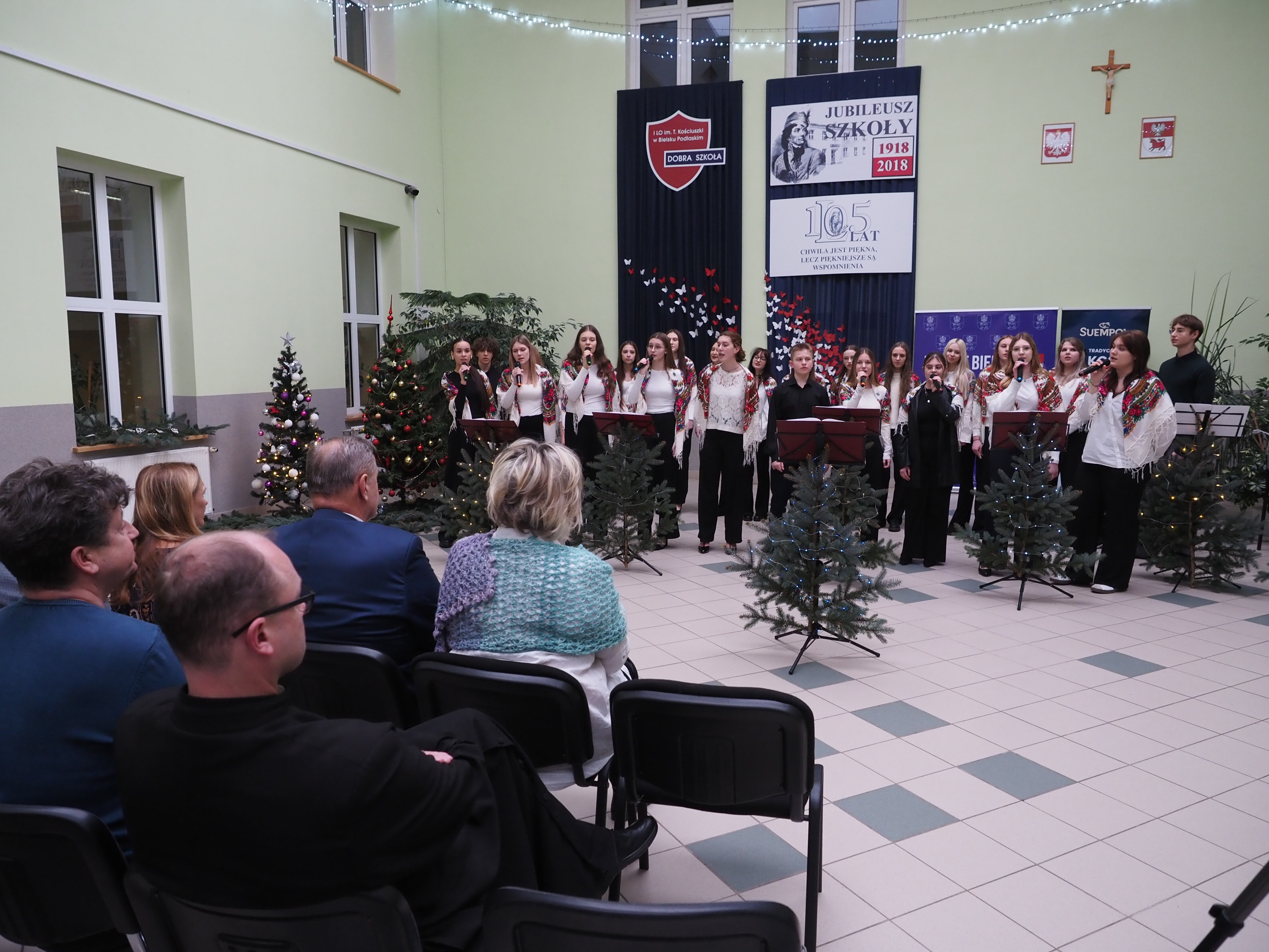 Uczniowie I Liceum Ogólnokształcącego im. T. Kościuszki w Bielsku Podlaskim w znakomity sposób zakończyli okres bożonarodzeniowy. 22 stycznia br. w auli szkolnej podczas dwóch koncertów przedstawili zupełnie nowe i zaskakujące aranżacyjnie wykonanie kolęd i pastorałek. Podczas pierwszego występu przysłuchiwał się im m.in. starosta bielski Sławomir Jerzy Snarski i naczelnik wydziału oświaty, kultury i ochrony zdrowia Anatol Grzegorz Tymiński. Drugi, wieczorny koncert przeznaczony był dla rodziców uczniów.