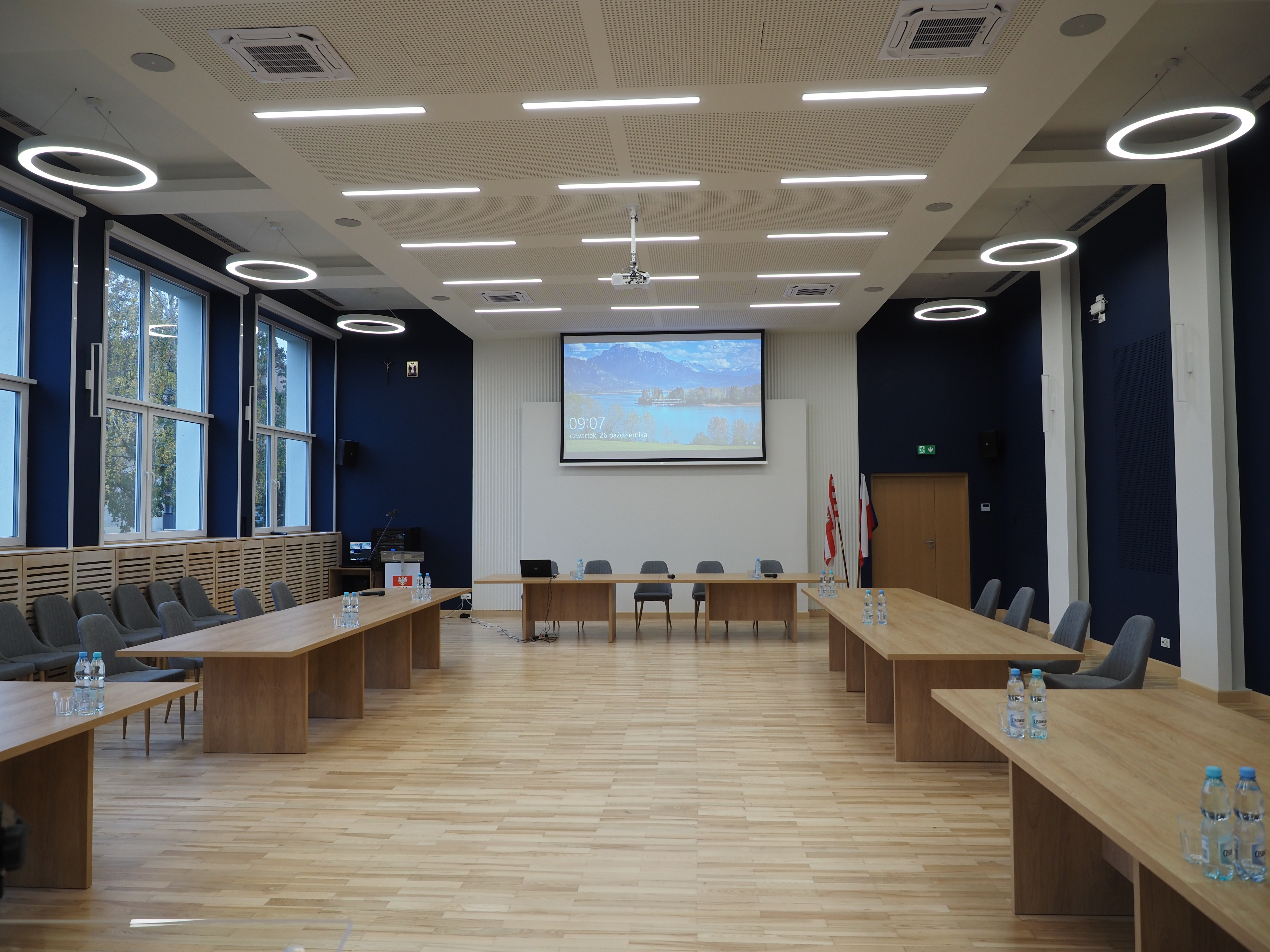 W budynku powiatu przy ul. Widowskiej 1 (dawny Zespół Szkół nr 3 im W. St. Reymonta) funkcjonuje już nowa sala konferencyjna. Nowoczesny wygląd i wyposażenie, doskonale oświetlona przestrzeń i wygodne zaplecze zapewnią komfort uczestnikom organizowanych tu posiedzeń.
