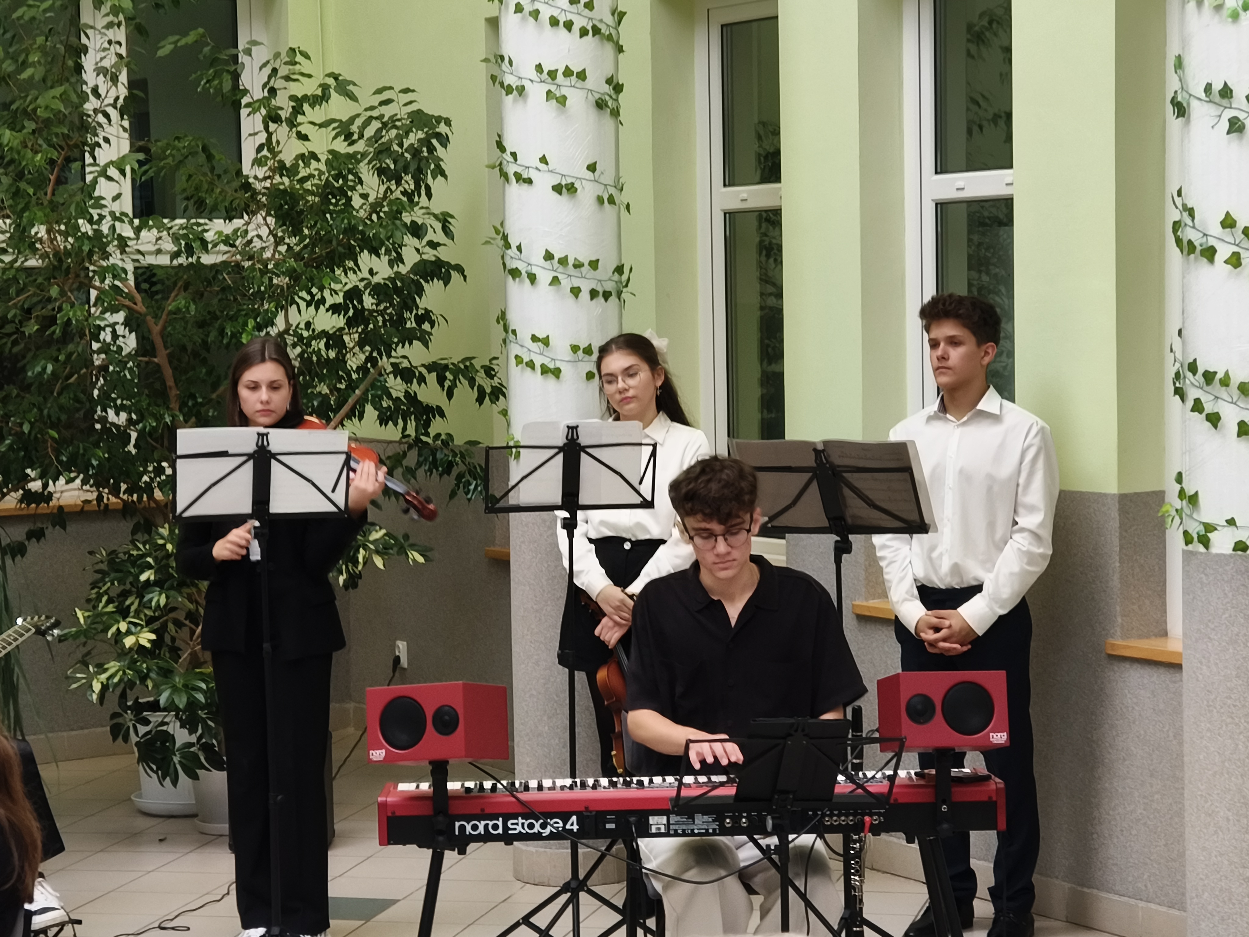 Po wręczeniu nagród i wyróżnień odprowadzono sztandar szkoły, a miejsce przed publicznością zajęła młodzież szkolna. W zaprezentowanym programie artystycznym przeplatano sceny z życia studentów, wspominających swoich nauczycieli ze szkoły średniej, z wykonywanymi przez solistów, chór i akompaniujący im zespół utworami muzycznymi. Usłyszeć można było m.in. muzykę do filmów „Lalka” i „Polskie drogi” oraz utwory wokalne „Dni, których nie znamy” i „Szukaj mnie”. Występ zespołu zakończył uroczystość powiatowych obchodów Dnia Edukacji Narodowej.