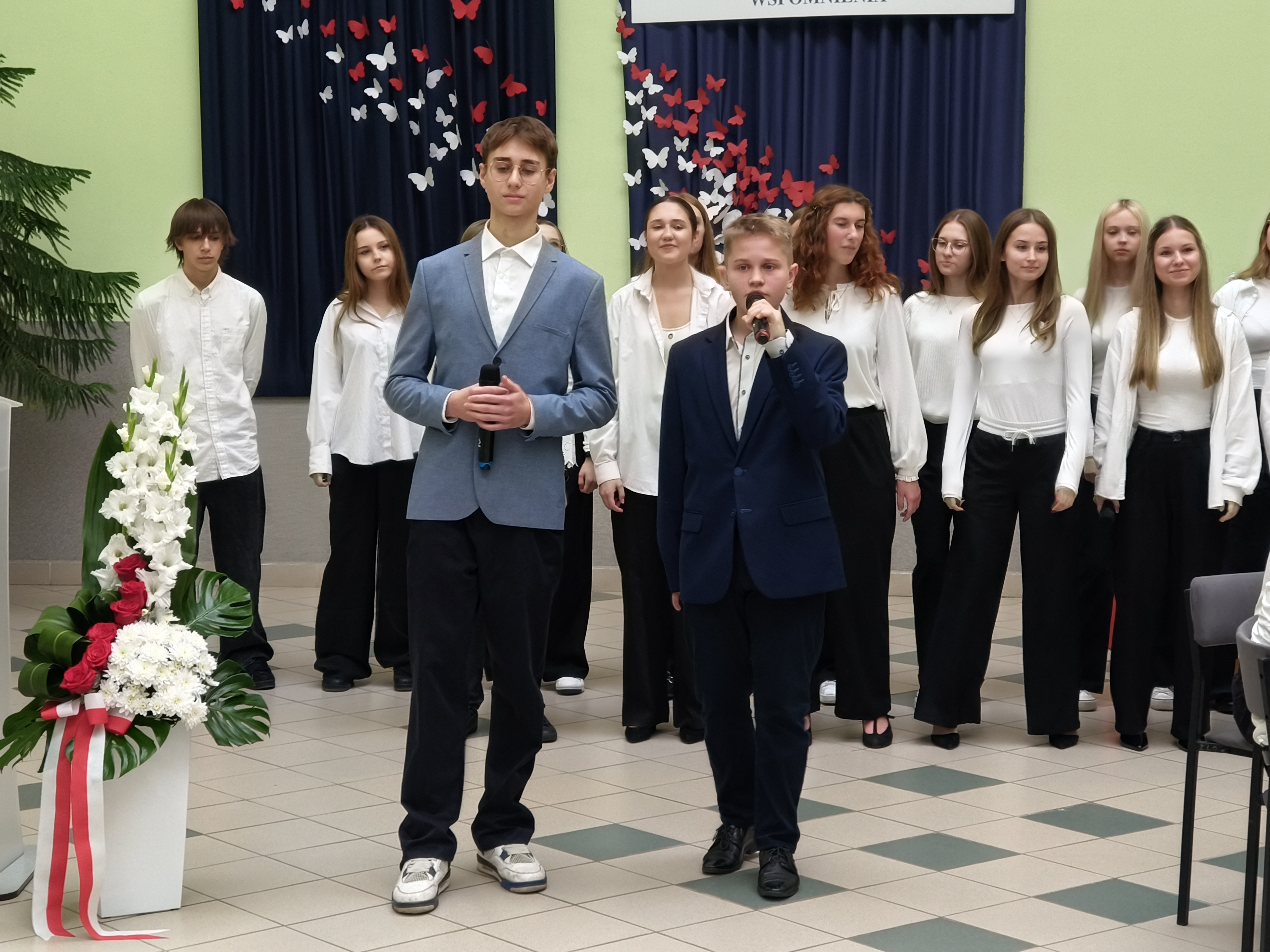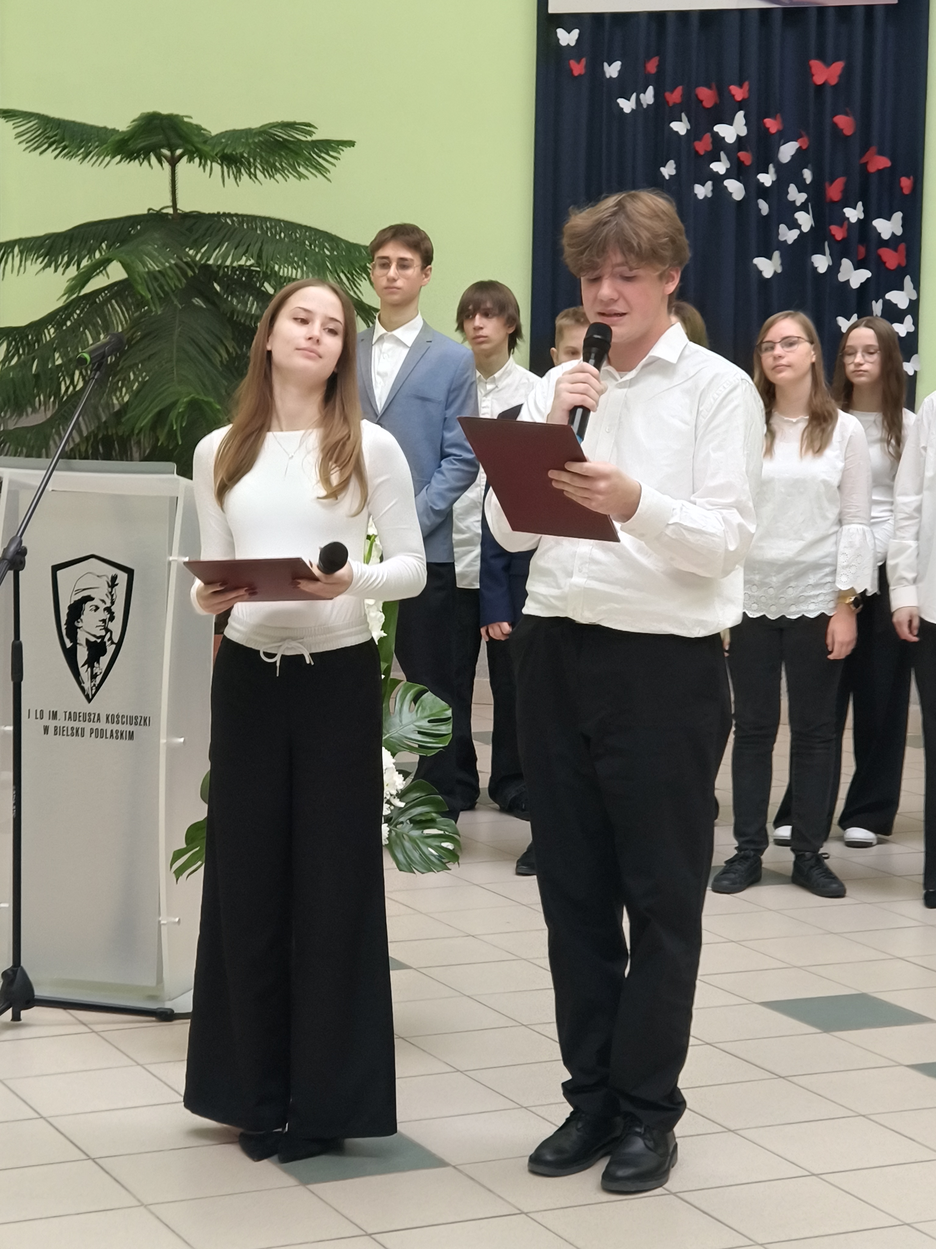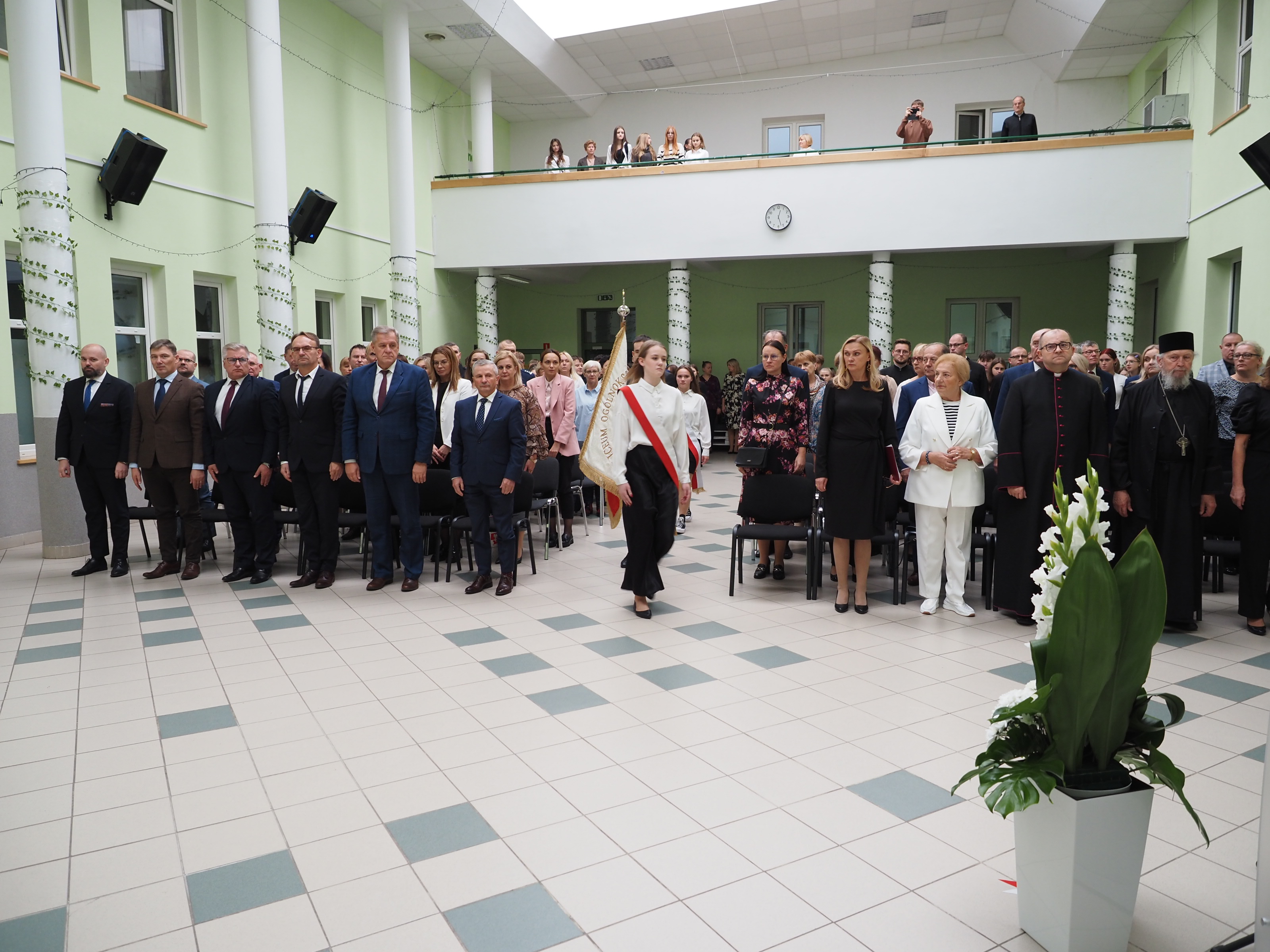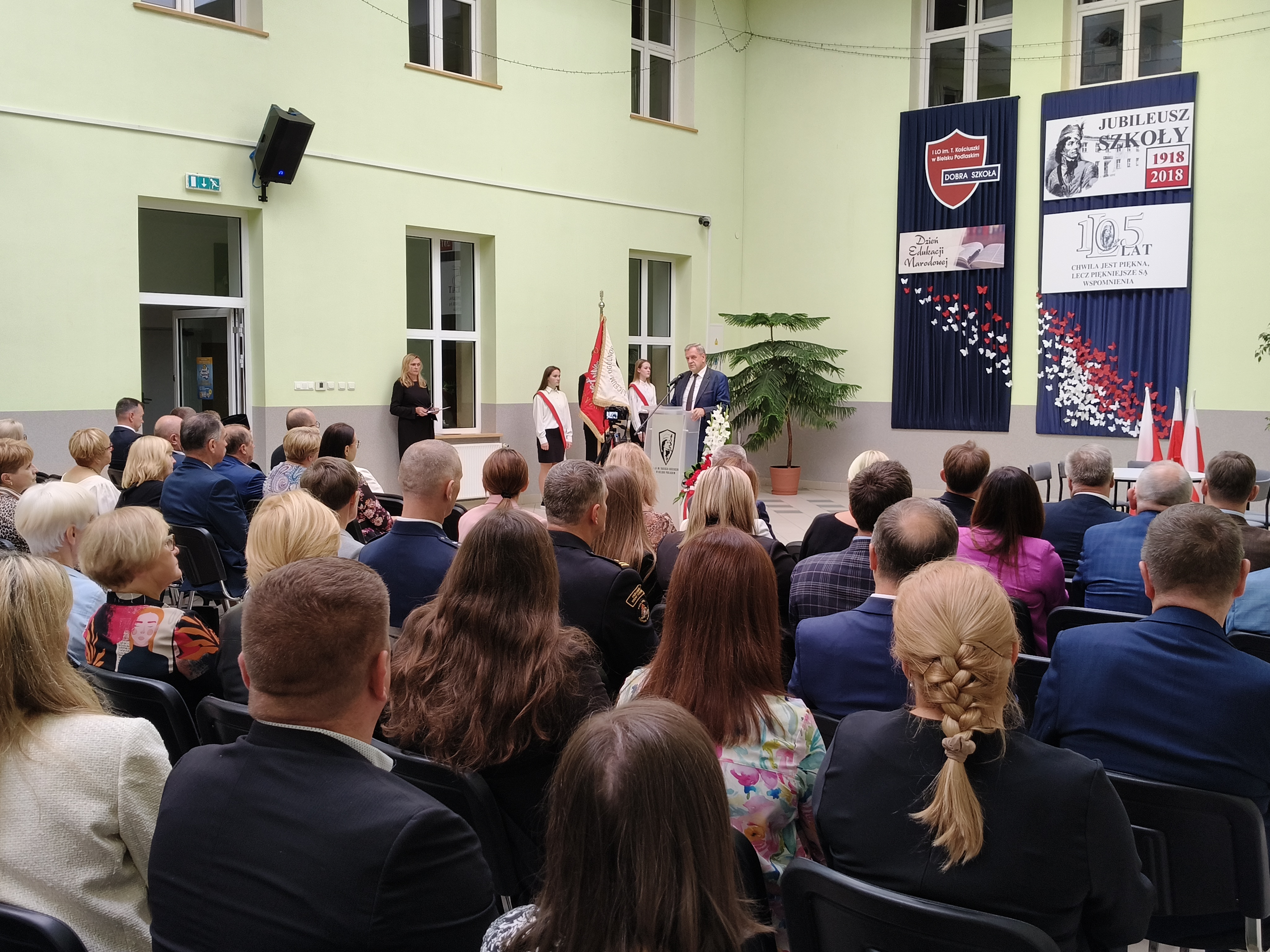 Zgromadzonych uczestników uroczystości powitała dyrektor I Liceum Ogólnokształcącego Marzena Pogorzelska-Ciołek. Wśród licznych gości wymieniła m.in. przedstawicieli władz Powiatu Bielskiego: starostę Sławomira Jerzego Snarskiego, przewodniczącego rady powiatu Andrzeja Leszczyńskiego, wicestarostę Piotra Bożko, członka zarządu powiatu Macieja Bobla, sekretarza powiatu Marka Martyniuka, skarbnika powiatu Ninę Tymińską. Powitanie poprzedziło uroczyste wprowadzenie sztandaru szkoły oraz odśpiewanie hymnu narodowego pod prowadzącym głosem jednej z uczennic I LO.