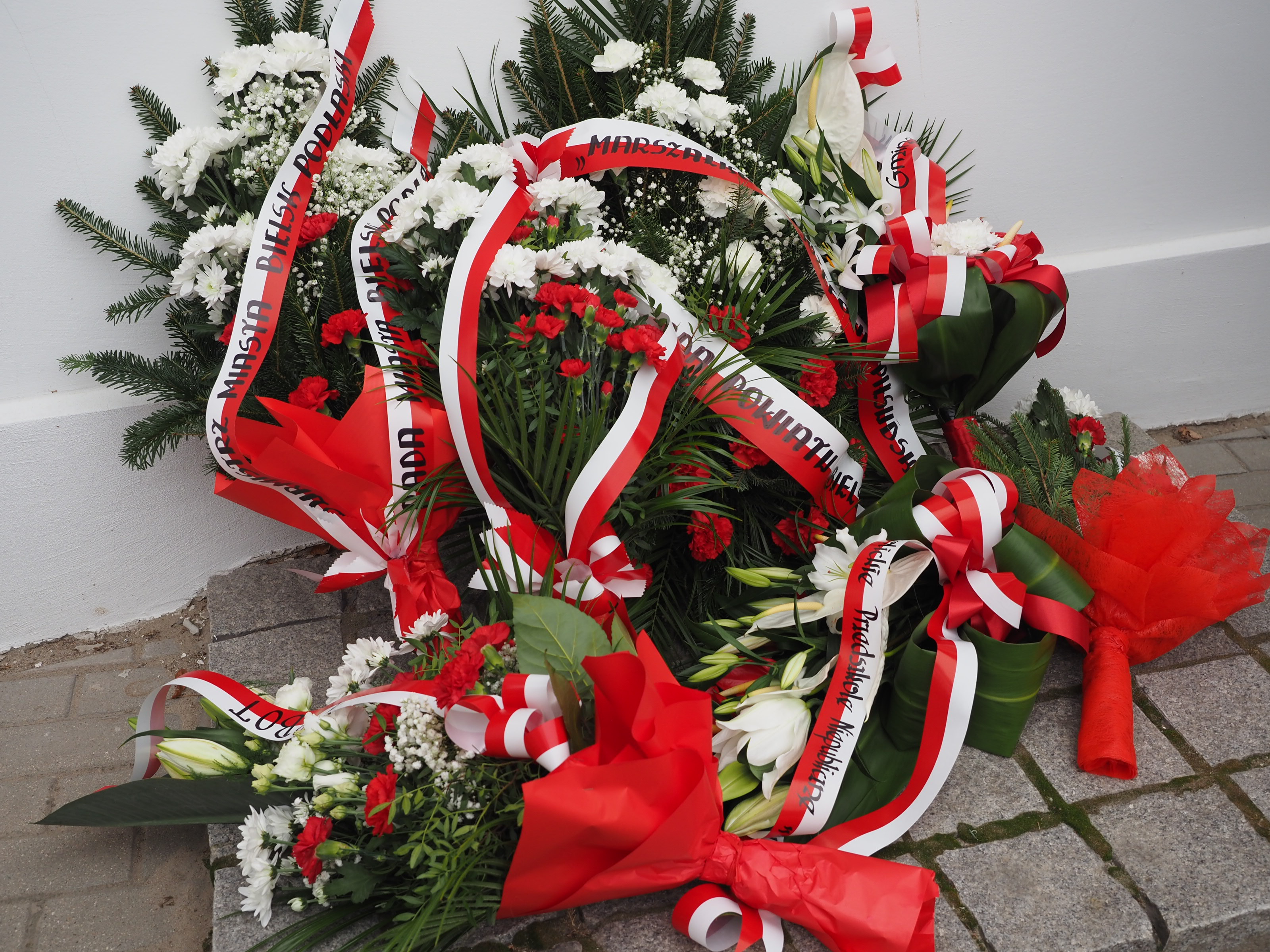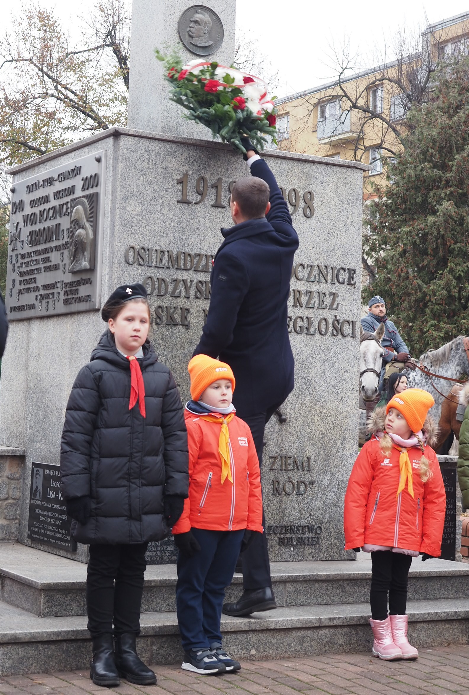 Podniosłym elementem uroczystości było złożenie wieńców pod pomnikiem, w hołdzie i pamięci twórców niepodległości naszej Ojczyzny. Delegacjom towarzyszyły werble młodzieżowej orkiestry dętej. Hołd twórcom i obrońcom niepodległości Polski oddali w ten sposób również przedstawiciele władz Powiatu Bielskiego: starosta Sławomir Jerzy Snarski, przewodniczący rady powiatu Andrzej Leszczyński, wicestarosta Piotr Bożko, członek zarządu powiatu Maciej Bobel oraz sekretarz powiatu Marek Martyniuk.