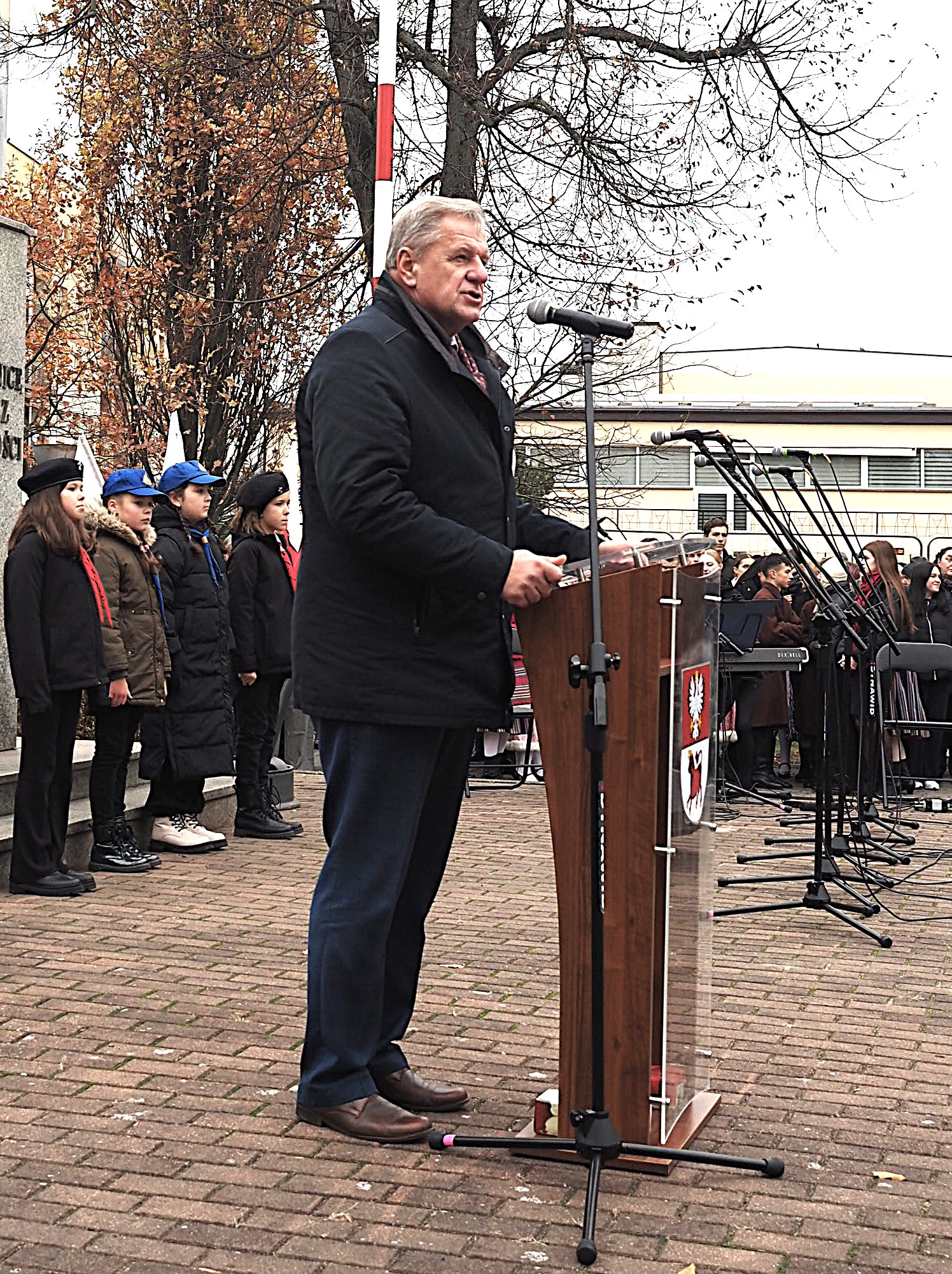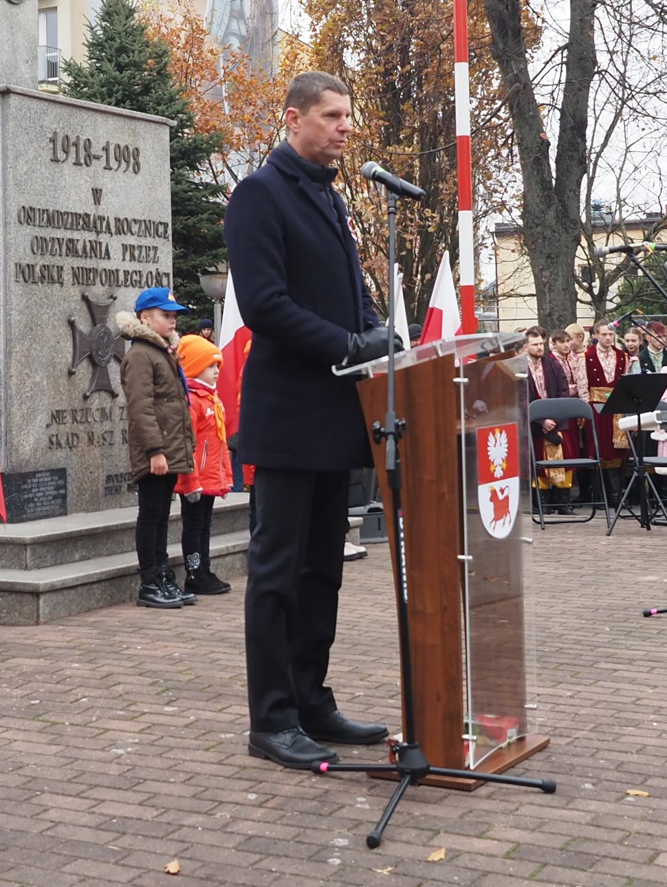 Niepodległość nie zaczyna się ani tu, ani teraz – zwracał się do zgromadzonych uczestników uroczystości starosta Snarski. – To jest proces ciągły. My dzisiaj możemy upamiętnić tylko niektóre postacie z wydarzeń historycznych, ponieważ niepodległość jest drogą, nieustannie kontynuowaną przez społeczności i narody. Kiedy dzisiaj świętujemy 106. rocznicę odzyskania niepodległości, to zapewne w pierwszym momencie myślimy o Józefie Piłsudskim, który jako wódz naczelny znacząco przyczynił się do jej odzyskania w 1918 roku. Który też jak najszybciej powołał do istnienia samorządy, aby mogły funkcjonować lokalne wspólnoty, aby Państwo Polskie mogło odtwarzać się po 123 latach zniewolenia i niebytu na mapach Europy. Wielki wysiłek, który został zrealizowany przez wiele osób, my dzisiaj podziwiamy i doceniamy.