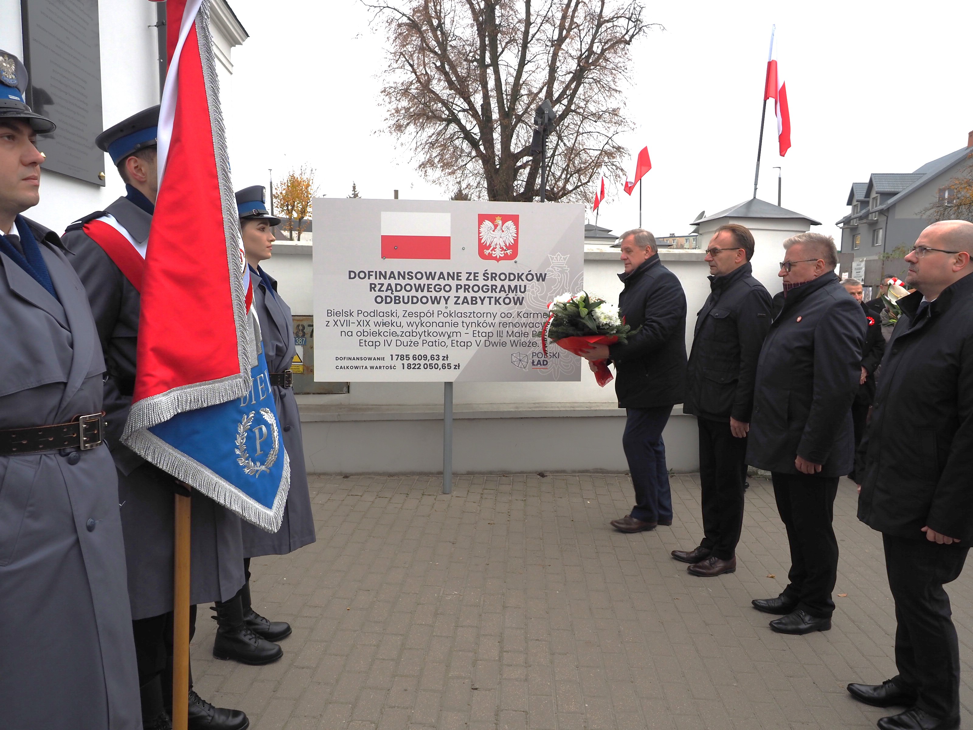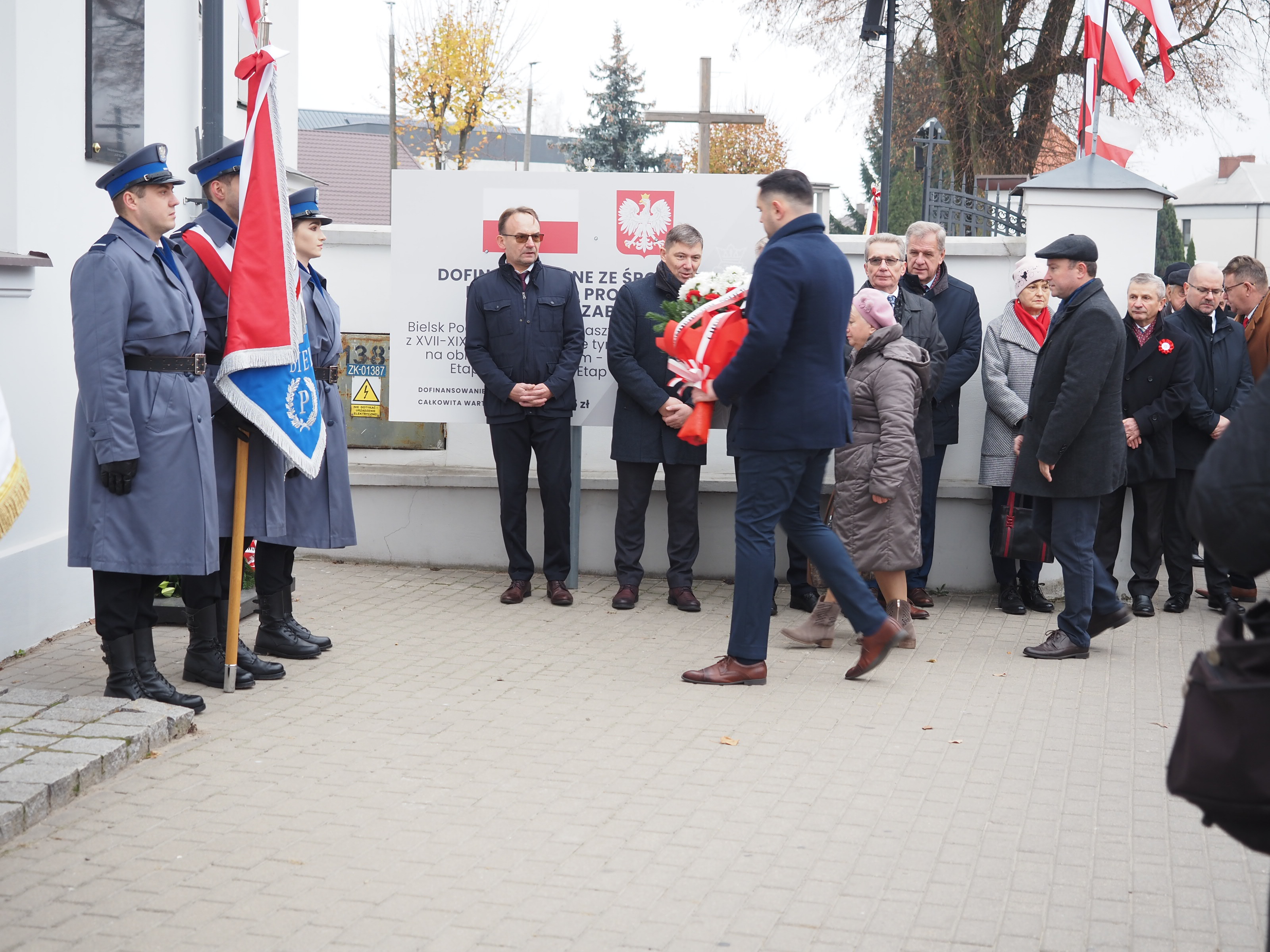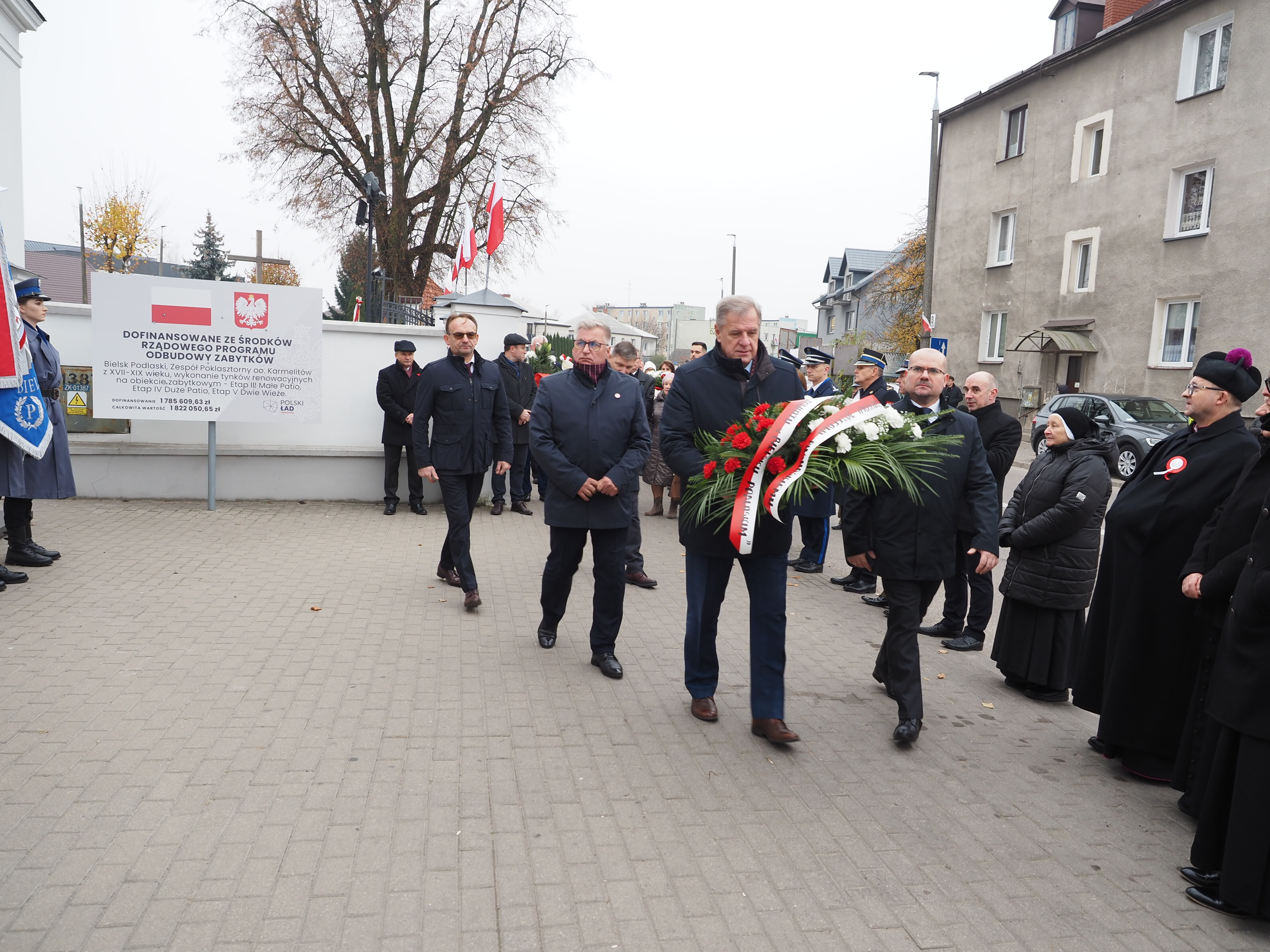 Mieszkańcy powiatu bielskiego uczcili 106. rocznicę odzyskania wolności po 123 latach zaborów. Powiatowe obchody Narodowego Święta Niepodległości odbyły się w Bielsku Podlaskim, gromadząc setki świętujących bielszczan i gości. Twórcom naszej wolności oddano hołd składając wieńce i wiązanki pod tablicą na ścianie klasztoru pokarmelickiego poświęconą Marszałkowi Józefowi Piłsudskiemu oraz pod pomnikiem Niepodległości Polski. Uczczono również pamięć podlaskich policjantów, poległych i zmarłych na służbie w latach międzywojennych. Pod poświęconą im tablicą położono wiązanki. - Od wielu lat spotykamy się w tym miejscu, by wyrazić wdzięczność tym, którzy walczyli o wolną Polskę, by czcić ich pamięć przypominał okoliczności kolejnej rocznicy starosta bielski Sławomir Jerzy Snarski wygłaszając przemówienie podczas uroczystości przy pomniku.