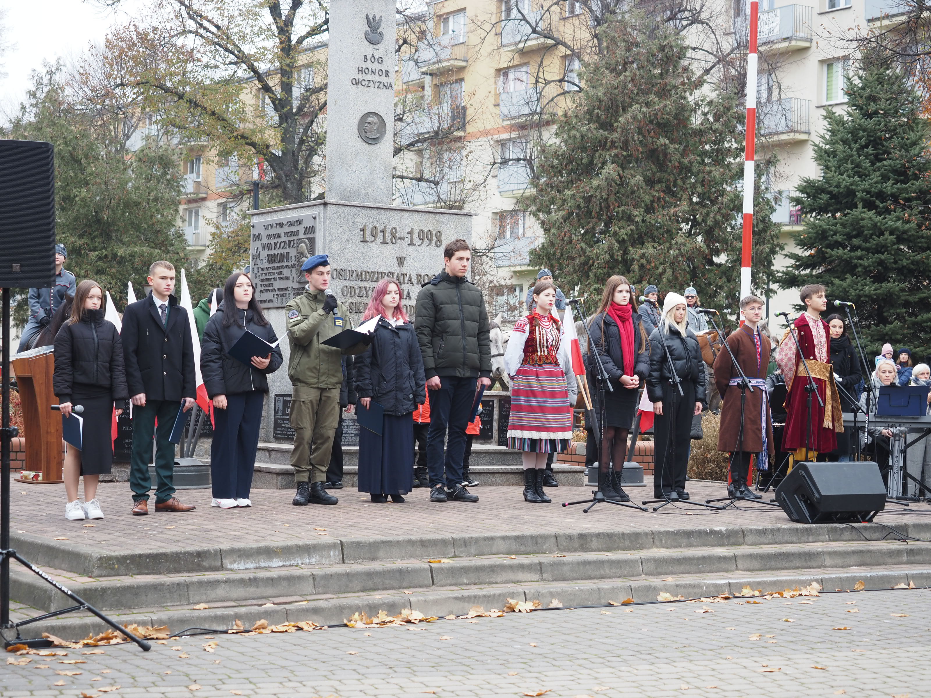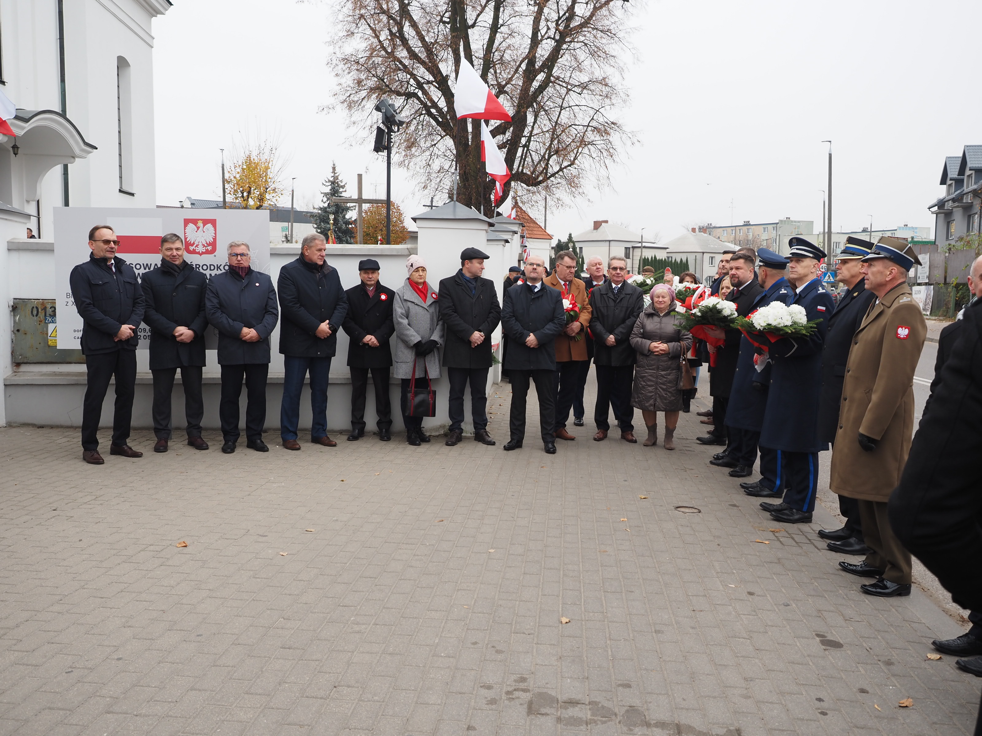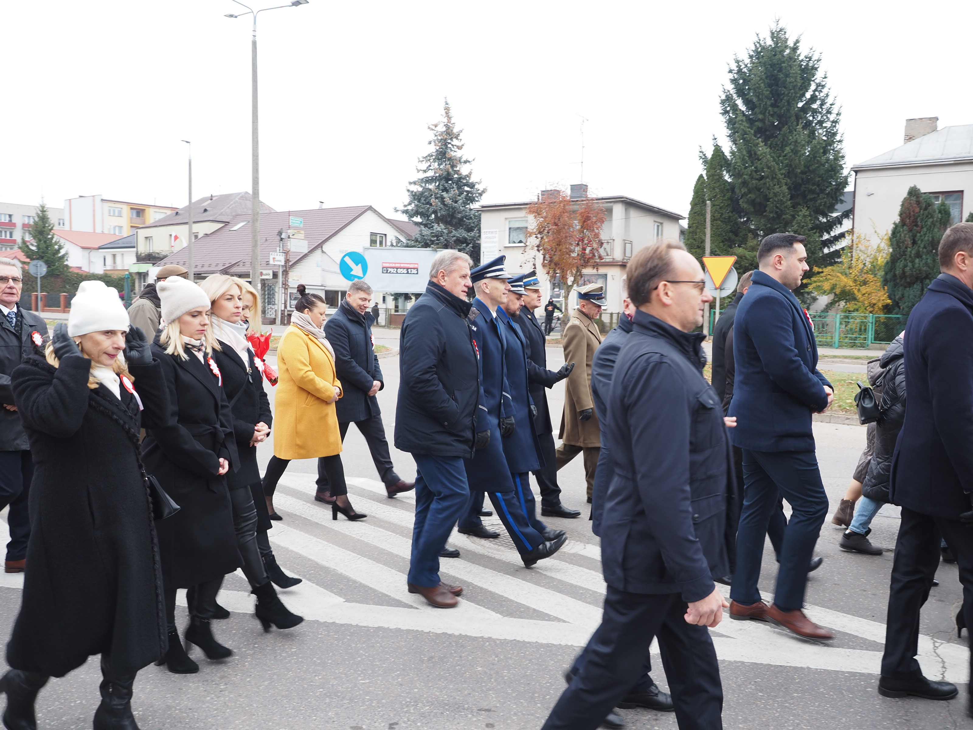 Zasadnicza część uroczystości odbyła się na skwerze Izabeli Branickiej przy pomniku Niepodległości Polski. Zgromadzili się tu przedstawiciele duchowieństwa, samorządów wszystkich szczebli, służb mundurowych, zakładów pracy i instytucji, organizacji pozarządowych, poczty sztandarowe, zuchy i harcerze oraz licznie przybyli mieszkańcy powiatu. Do zgromadzonych przemówili starosta Sławomir Jerzy Snarski oraz poseł na Sejm RP Dariusz Piontkowski.