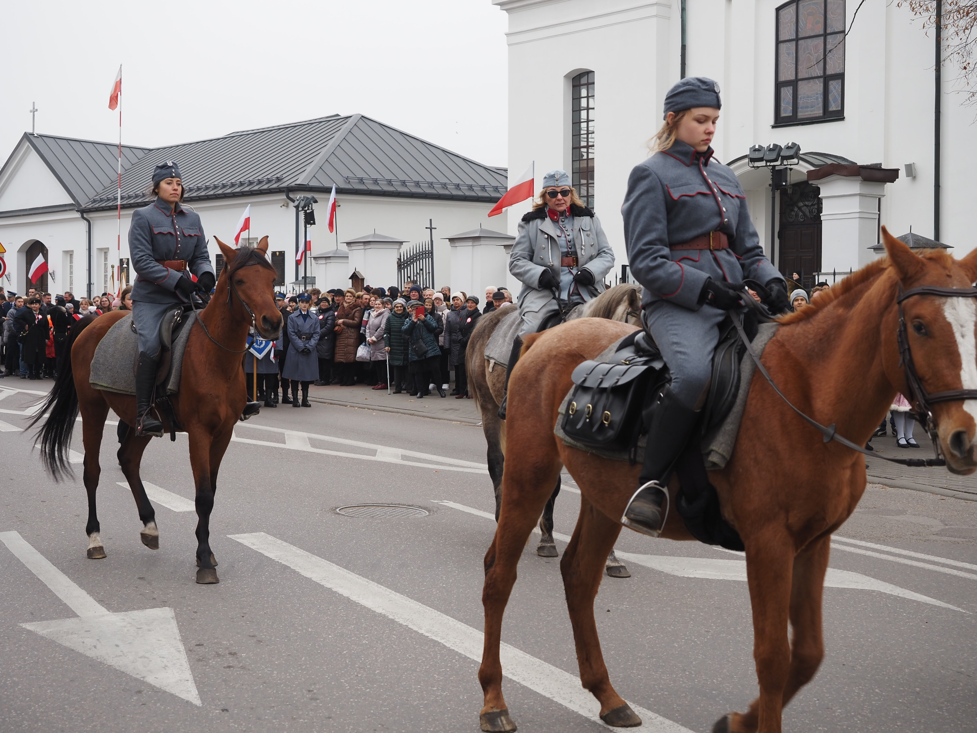 Po zakończonych modlitwach główną ulicą Bielska Podlaskiego przy marszowej muzyce młodzieżowej orkiestry dętej przeszedł barwny pochód. Jego uczestnicy przemaszerowali w ślad za pocztami konnymi „Grupy ReKoństrukcyjnej” przy Konnym Zakątku w Hryniewiczach Dużych i Stowarzyszenia Reditus. Jeźdźcy ubrani byli w mundury z epoki przypominające, iż podobnie odziani szwoleżerowie przywrócili niepodległość powiatowi bielskiemu w lutym 1919 r.