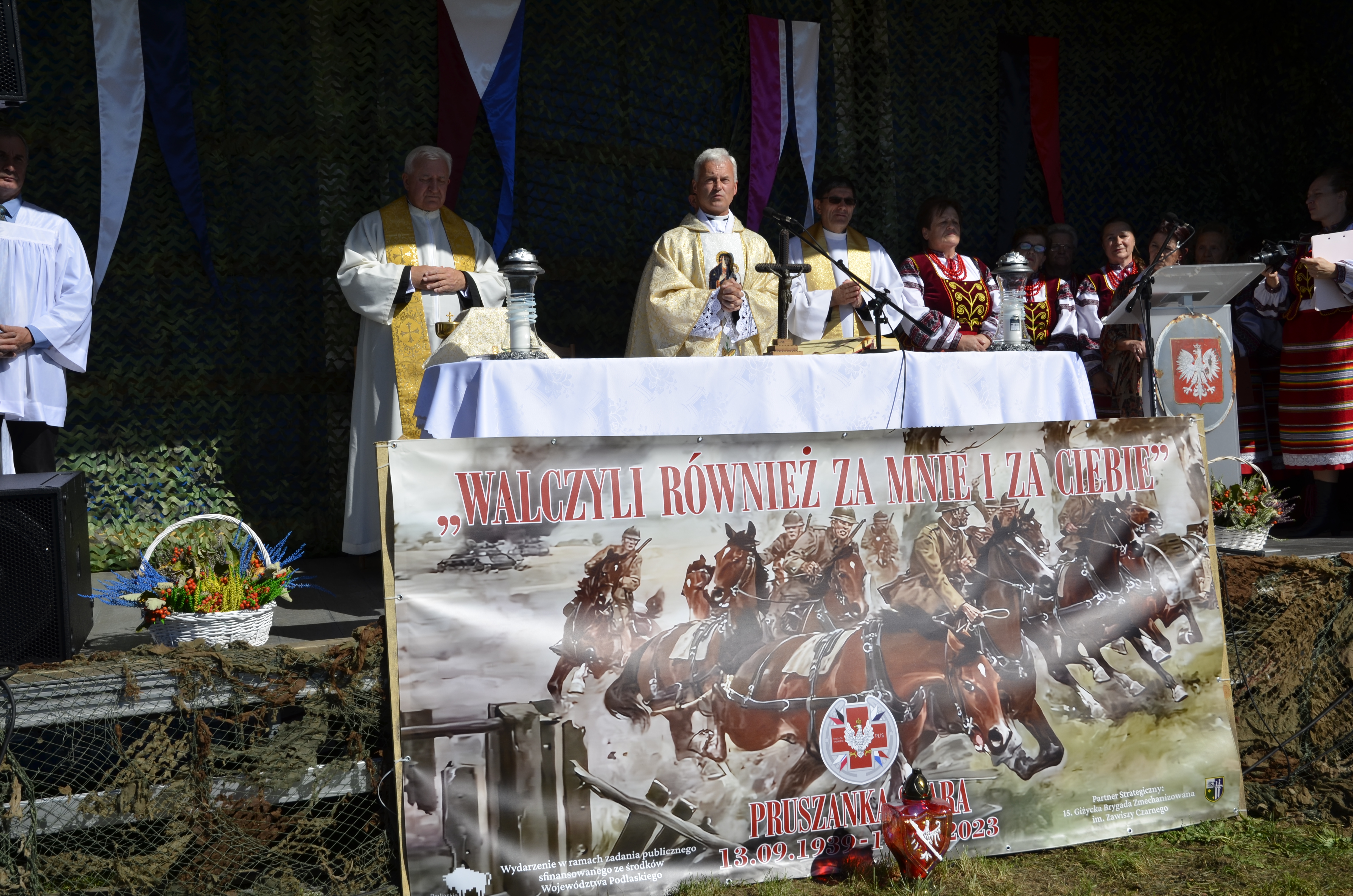 Starosta wziął też udział w poprzedzającej apel poległych mszy św. koncelebrowanej, której przewodniczył proboszcz parafii w Domanowie ks. Krzysztof Napiórkowski. Jeszcze przed jej rozpoczęciem, jedna z członkiń Stowarzyszenia Grupy Rekonstrukcji Historycznej „Plis” - współorganizatora wydarzenia, przedstawiła historyczne tło wrześniowej bitwy. Uroczystości zgromadziły licznie przybyłych mieszkańców wsi Pruszanka Stara i okolic, poczty sztandarowe, kombatantów, grupy rekonstrukcyjne i harcerzy. Obok starosty bielskiego Sławomira Jerzego Snarskiego stawił się również wojewoda podlaski Bohdan Paszkowski, samorządowcy z powiatu wysokomazowieckiego, służby mundurowe i wielu innych.