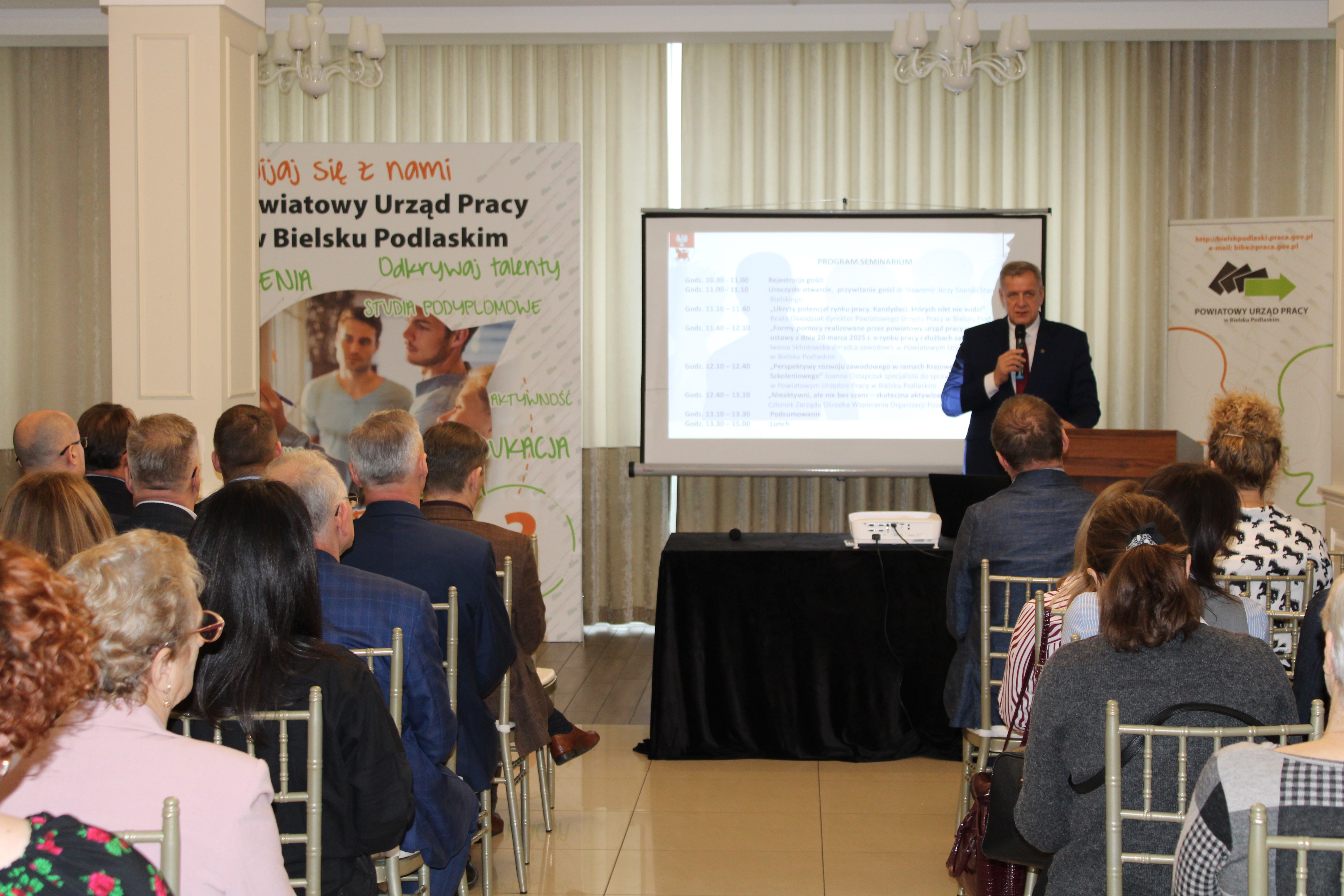W dniu 26 listopada br. odbyło się seminarium organizowane przez Powiatowy Urząd Pracy w Bielsku Podlaskim „Zmiana przepisów, zmiana perspektywy - jak skutecznie aktywizować osoby niezarejestrowane w powiatowym urzędzie pracy?”. Gospodarzem spotkania był starosta bielski Sławomir Jerzy Snarski.