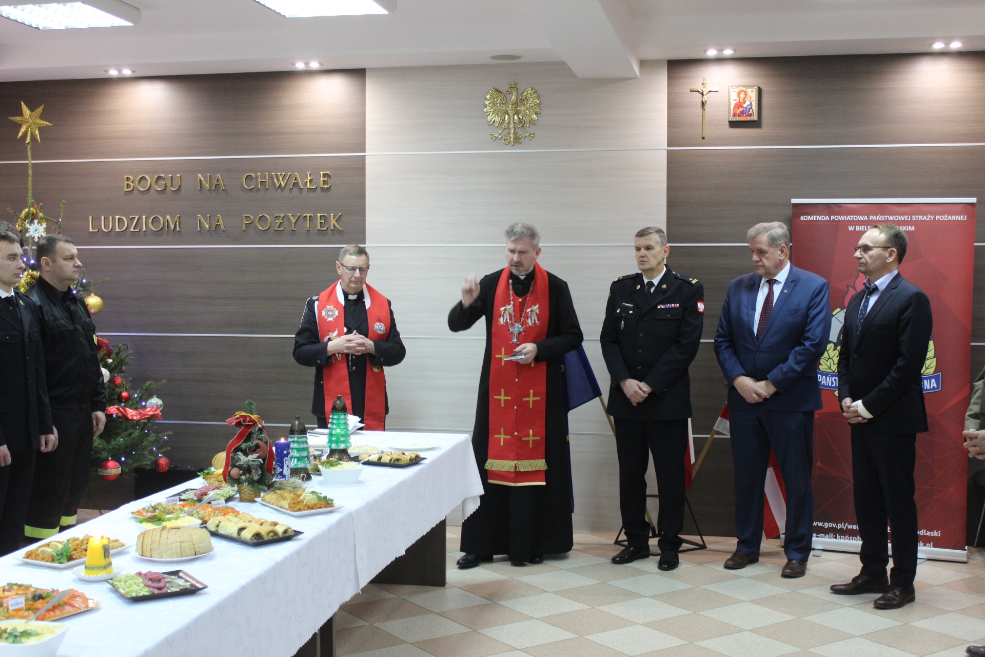Wkrótce przyszedł też czas na dzielenie się opłatkiem z funkcjonariuszami powiatowych komend Policji i Państwowej Straży Pożarnej. Spotkanie w komendzie Policji odbyło się 20 grudnia, natomiast u bielskich strażaków starostowie gościli w dniu 23 grudnia.