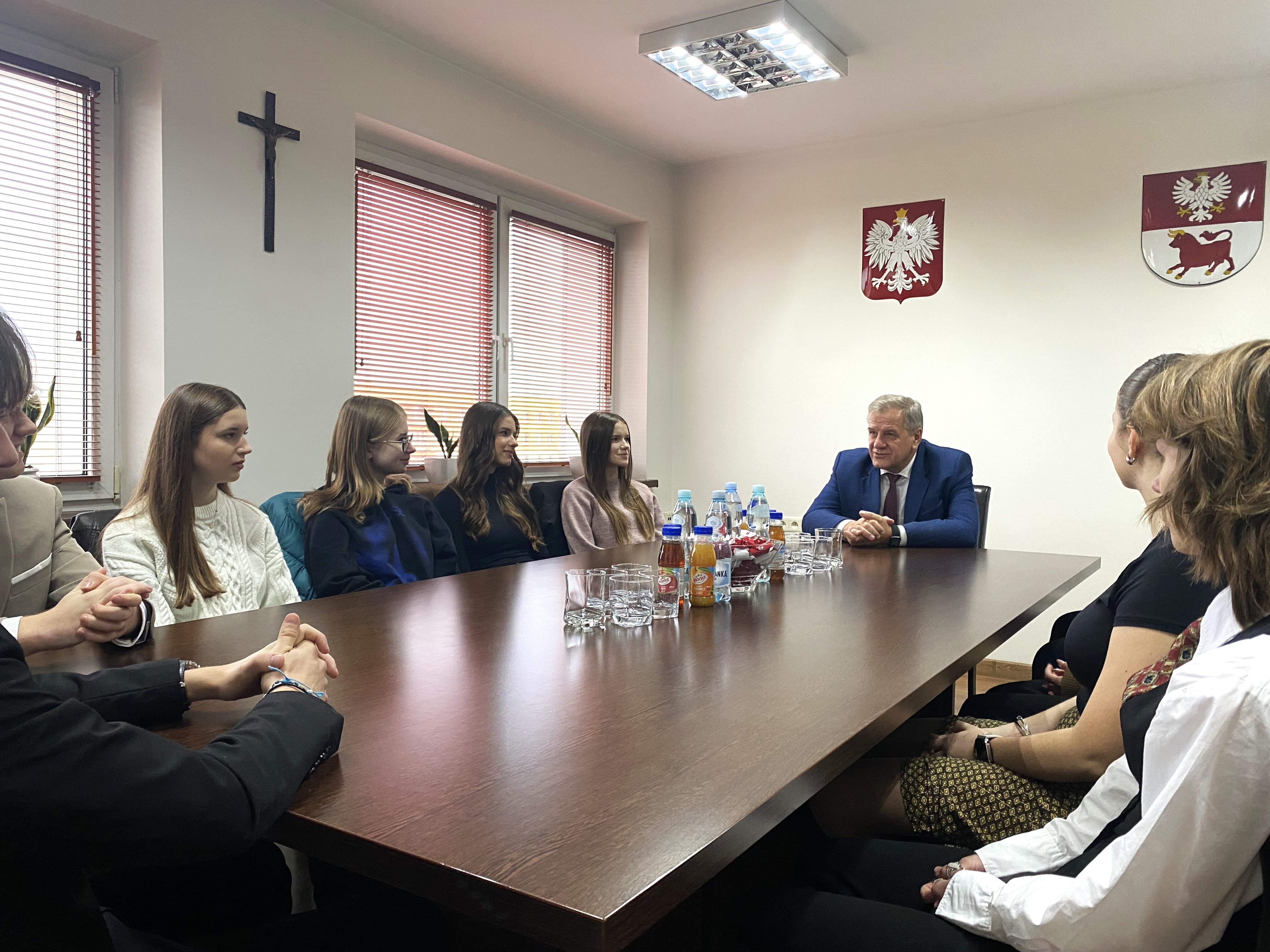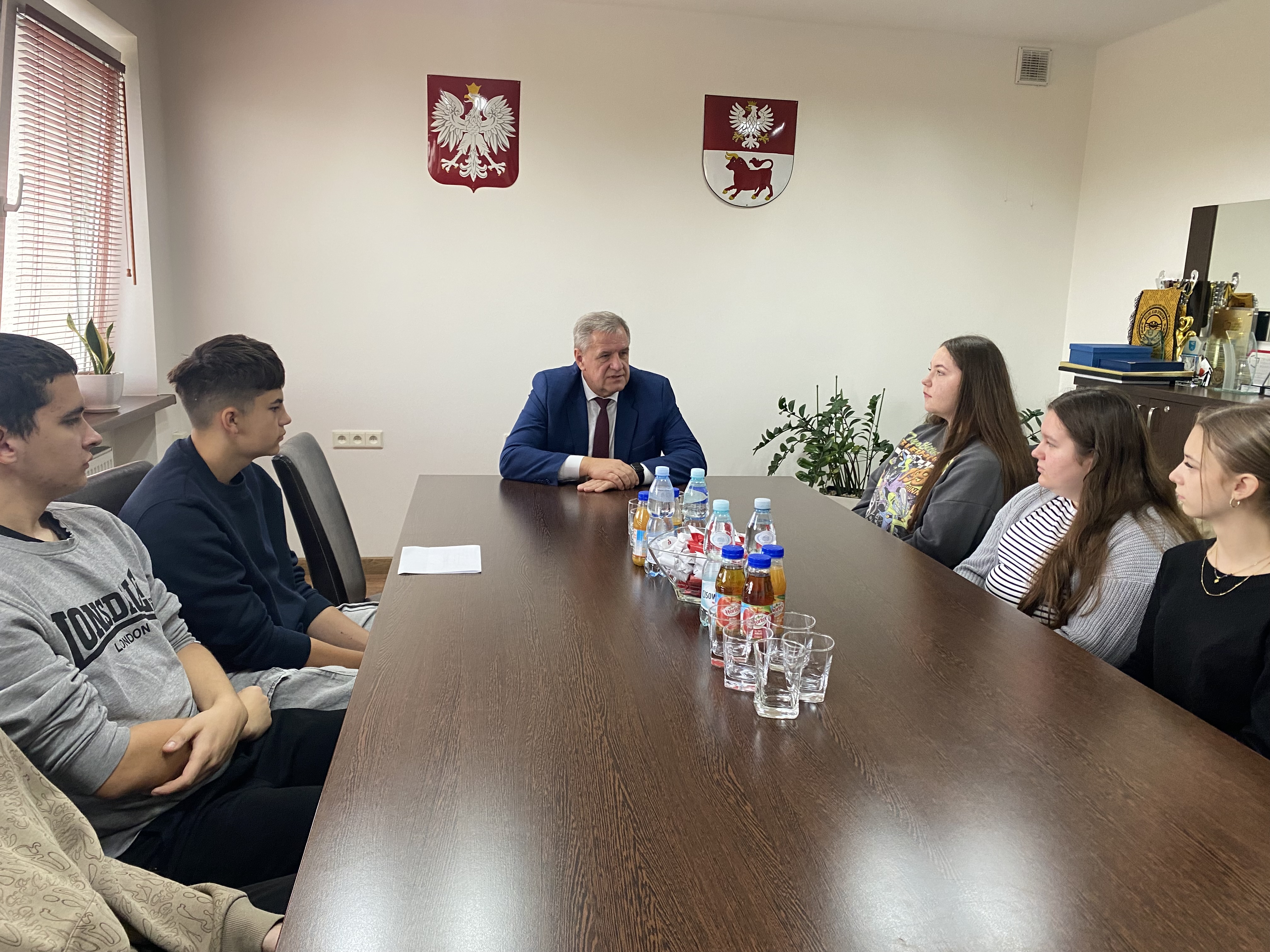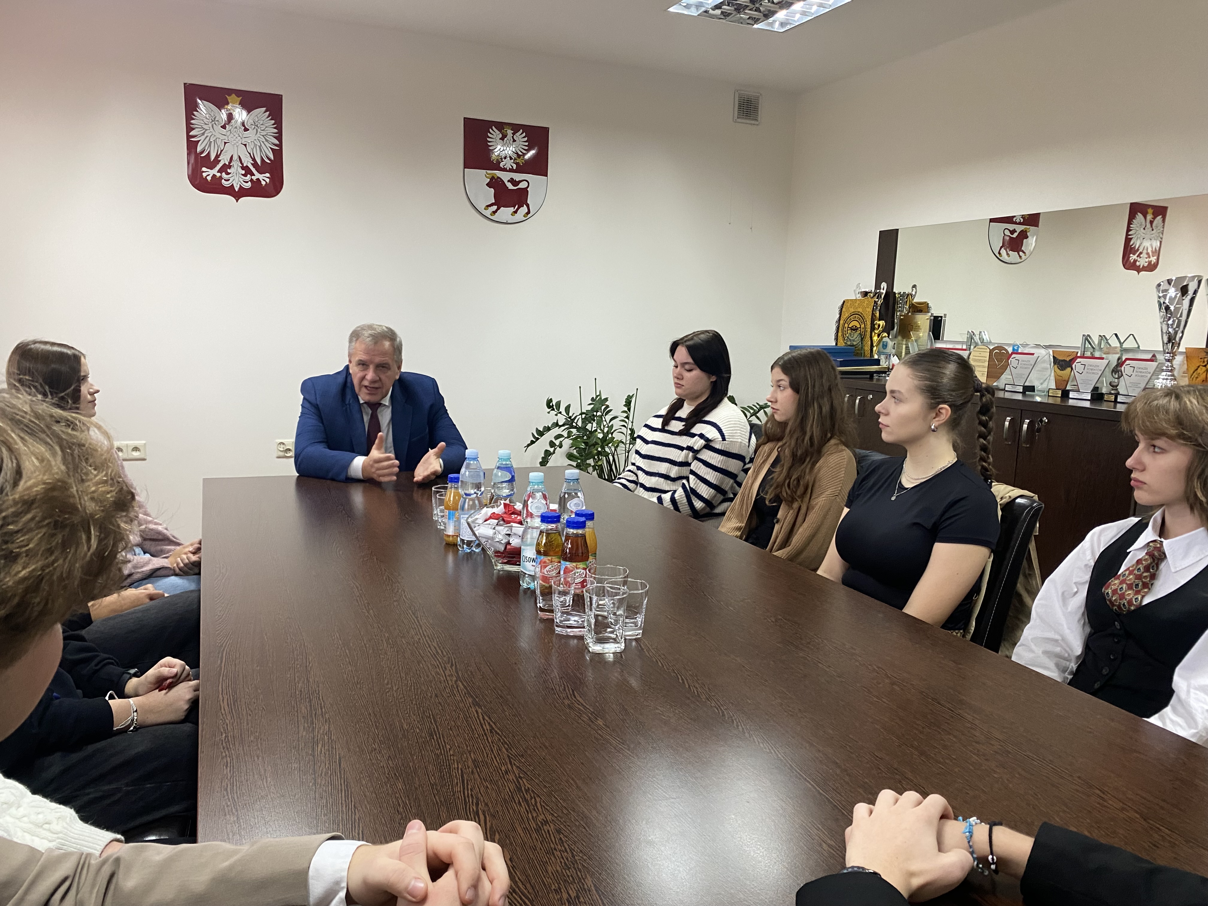 W dniach 22-23 października br. starosta bielski Sławomir Jerzy Snarski odbył spotkania z przedstawicielami samorządów uczniowskich bielskich szkół ponadpodstawowych. Starostę odwiedzili uczniowie I Liceum Ogólnokształcącego im. T. Kościuszki, II Liceum Ogólnokształcącego z BJN im. B. Taraszkiewicza, Zespołu Szkół nr 1 im. Marszałka J.K. Piłsudskiego oraz Zespołu Szkół nr 4 im. Ziemi Podlaskiej.