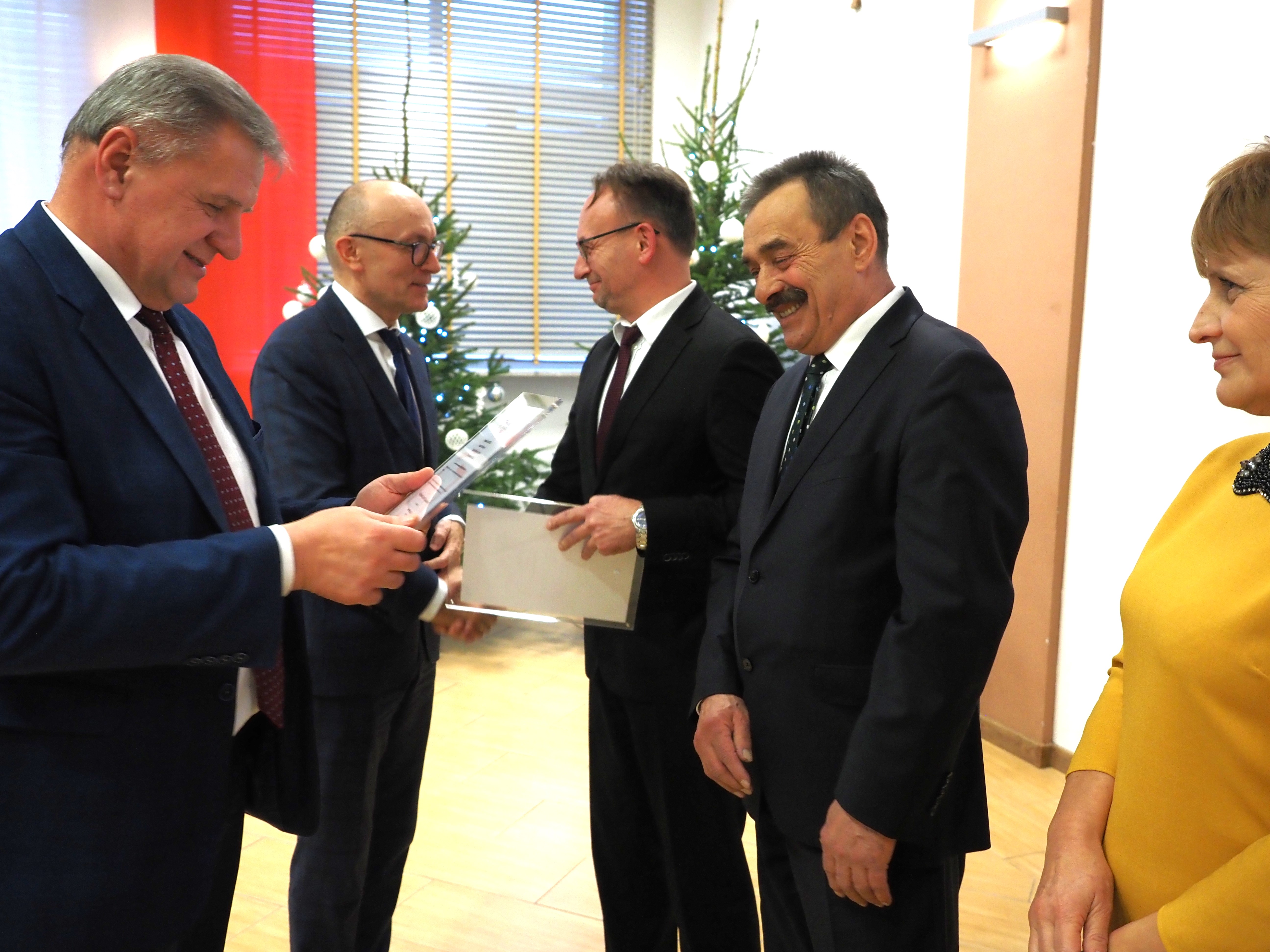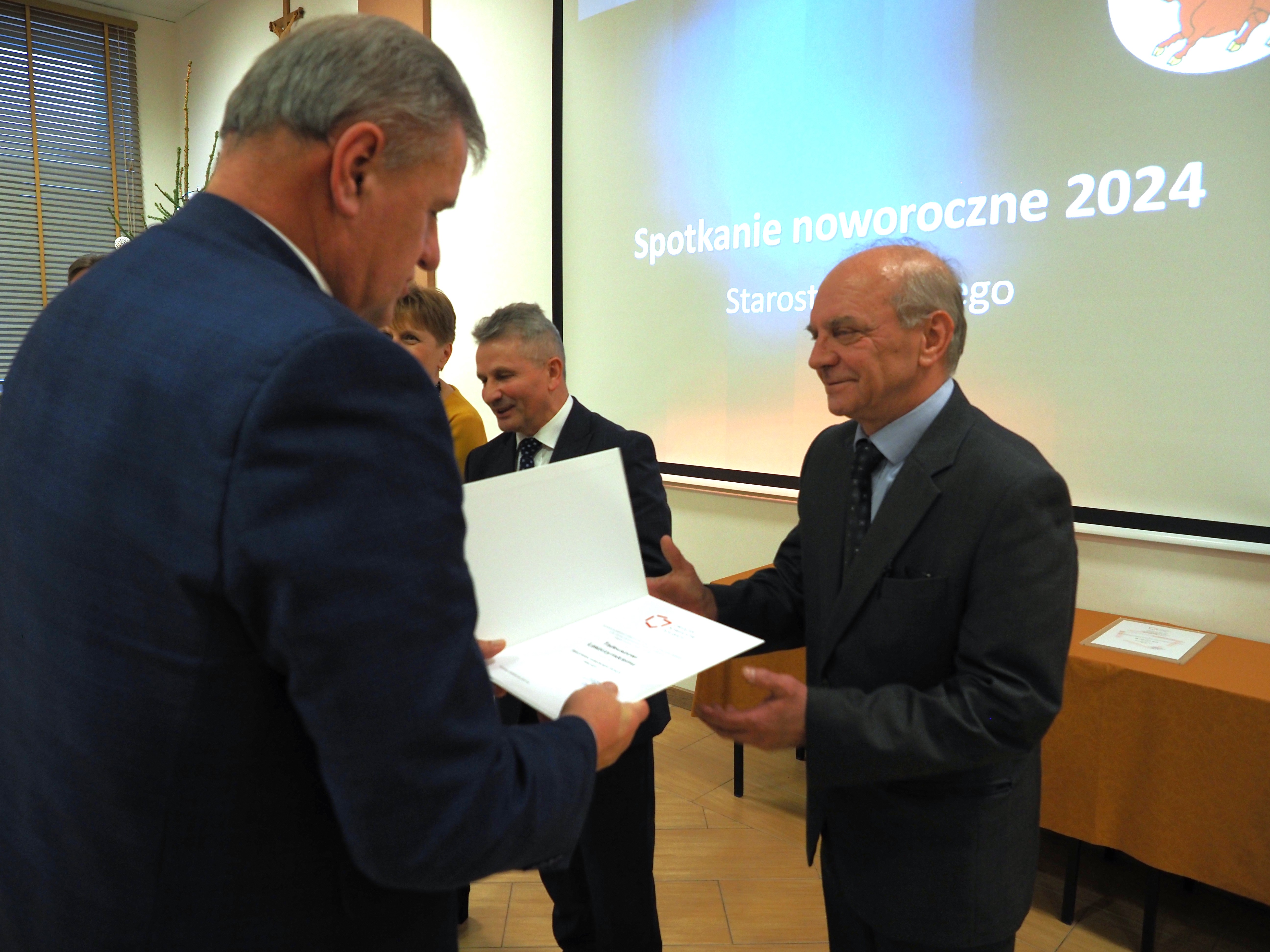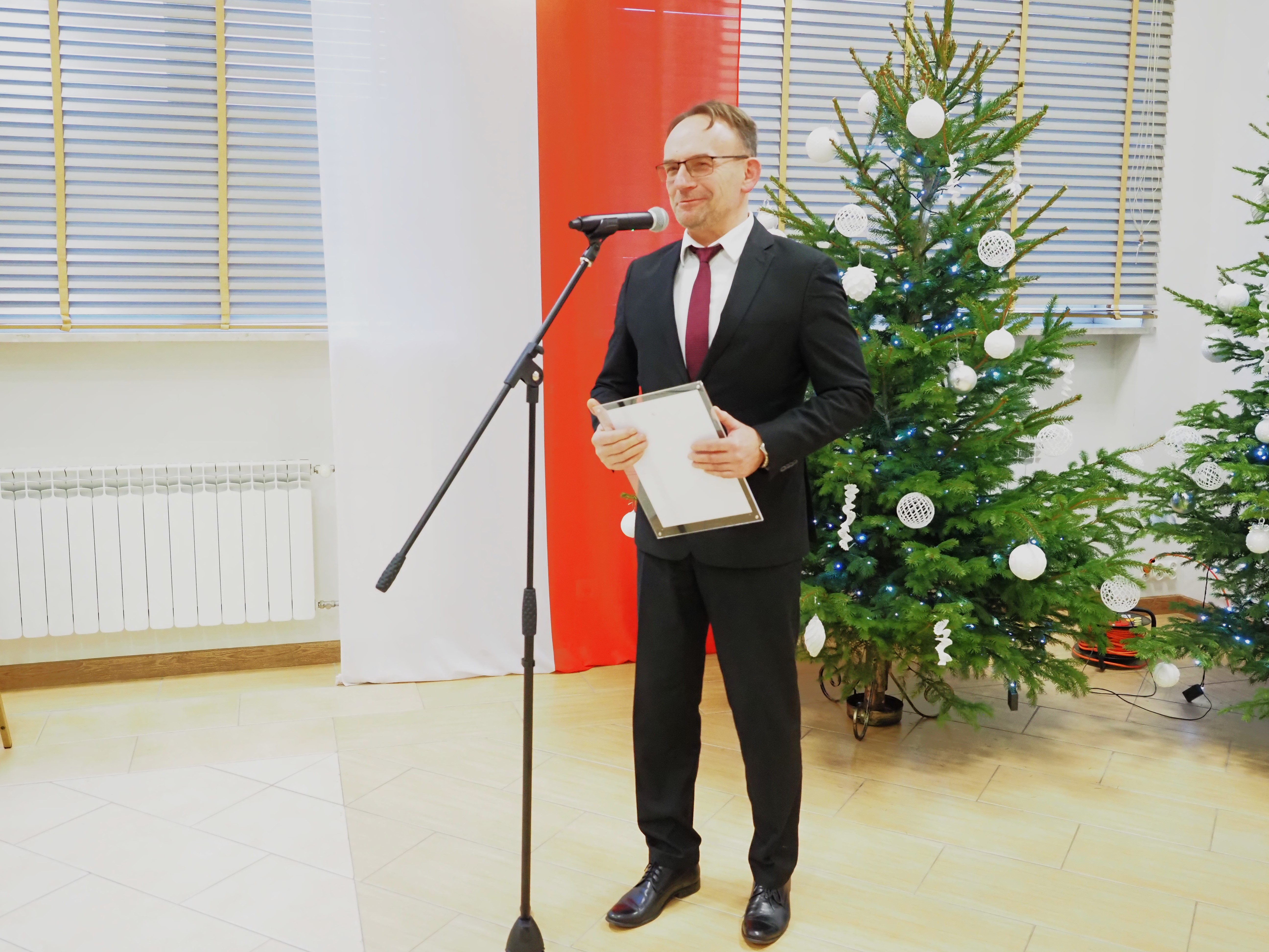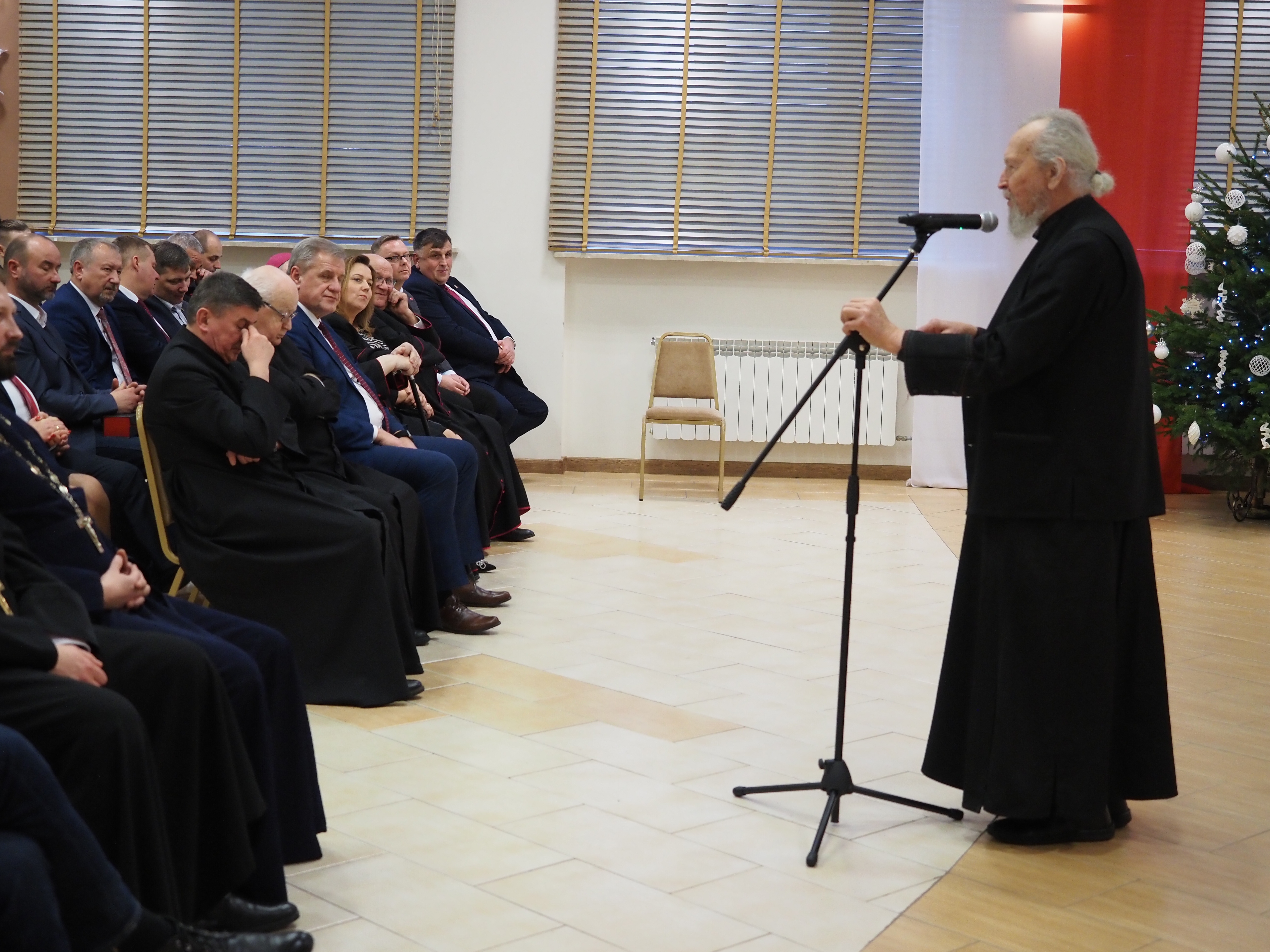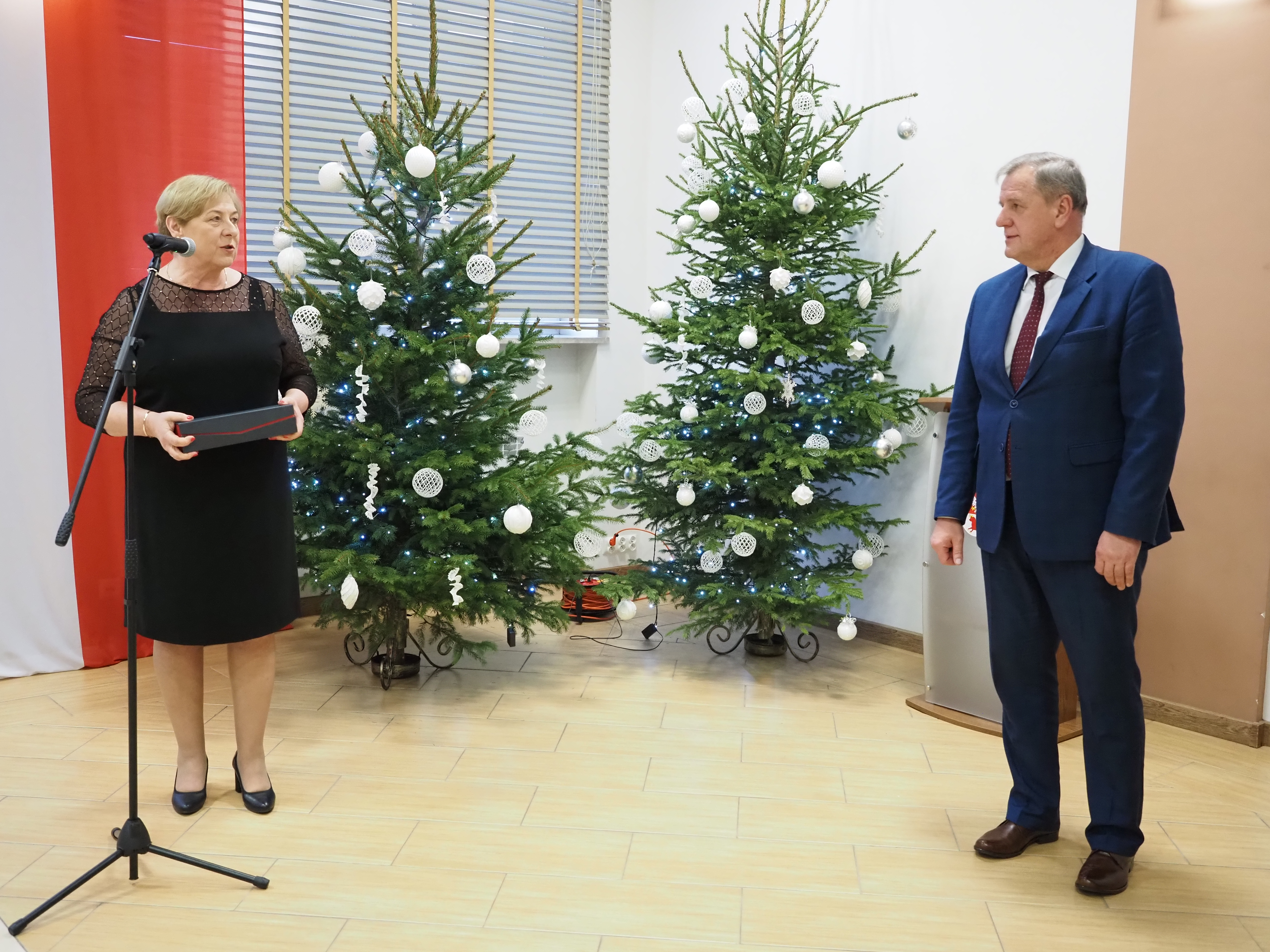 w zakresie edukacji, utrzymania i budowy dróg powiatowych, rynku pracy, ochrony zdrowia, pomocy społecznej, bezpieczeństwa publicznego oraz administracji powiatowej. Ważnym wątkiem przewijającym się w jego przemówieniu było znaczenie wspólnoty powiatowej oraz rola, jaką pełnią osoby i instytucje zewnętrzne, dzięki którym wspólnota ta może realizować zadania, zabezpieczać swoje potrzeby oraz stale się rozwijać. To właśnie do tych, którzy wspierają Powiat Bielski i pracowników samorządowych, starosta skierował podziękowania i wyrazy wdzięczności. Jak podczas każdego spotkania noworocznego, kilka wybranych spośród tego grona osób zostało przez niego uhonorowanych pamiątkowymi statuetkami. Otrzymali je burmistrz Bielska Podlaskiego Jarosław Borowski, burmistrz Brańska Eugeniusz Koczewski oraz wójtowie gmin: Raisa Rajecka (gmina Bielsk Podlaski), Mariusz Korzeniewski (gmina Wyszki), Andrzej Jankowski (gmina Brańsk). Ponadto wśród wyróżnionych znalazł się Jan Miniuk, właściciel Przedsiębiorstwa Drogowo-Mostowego „Maksbud”.