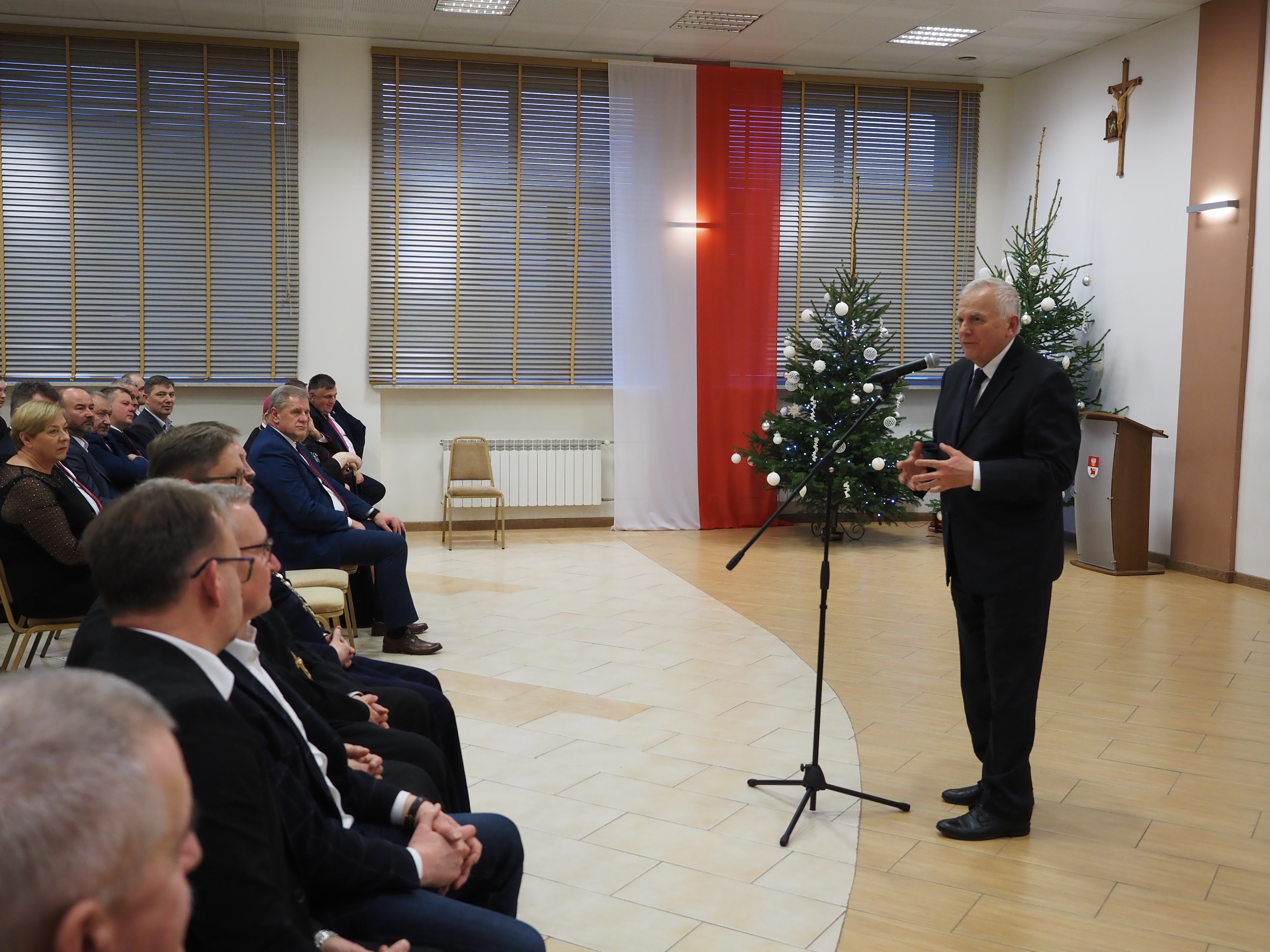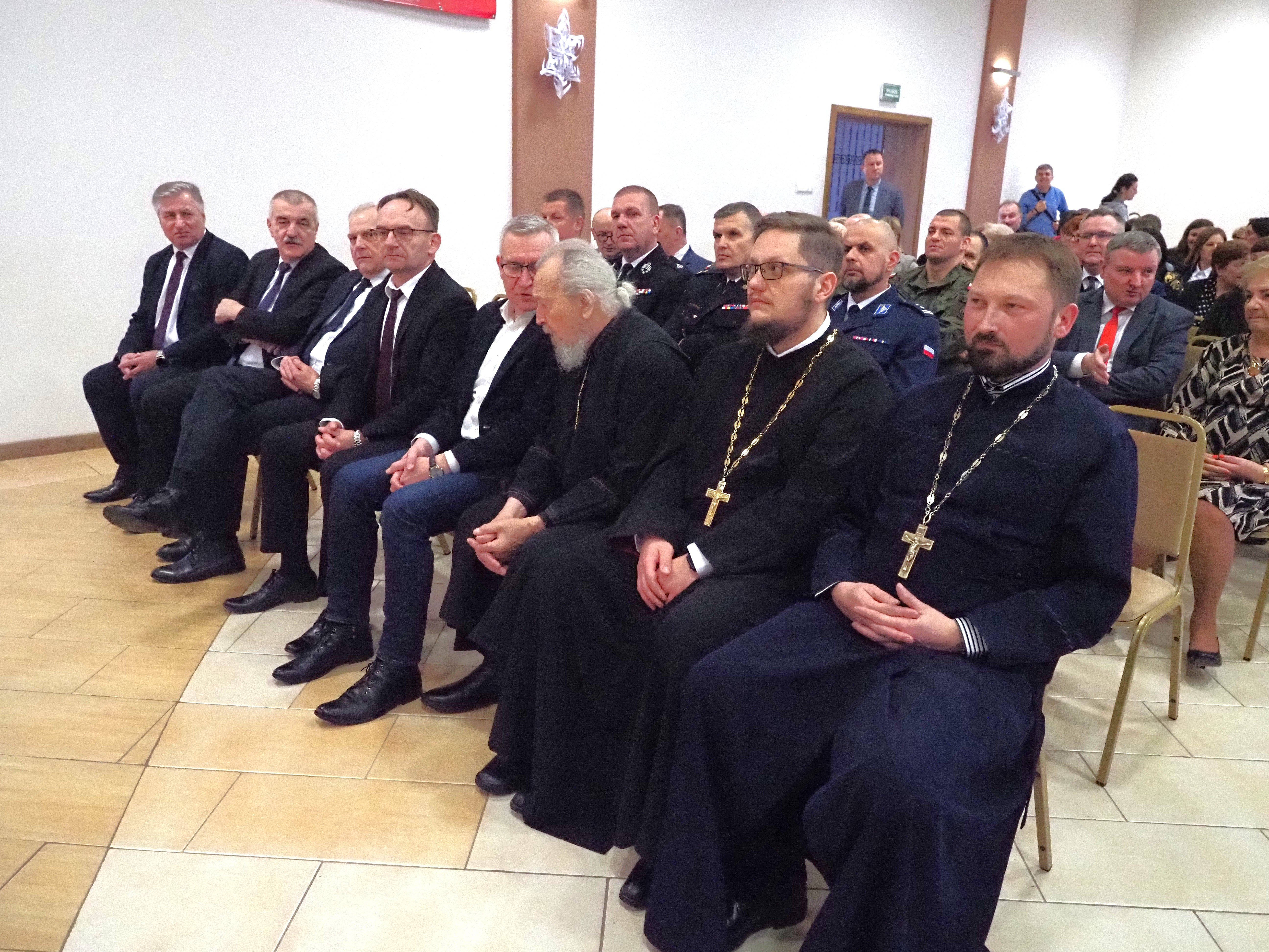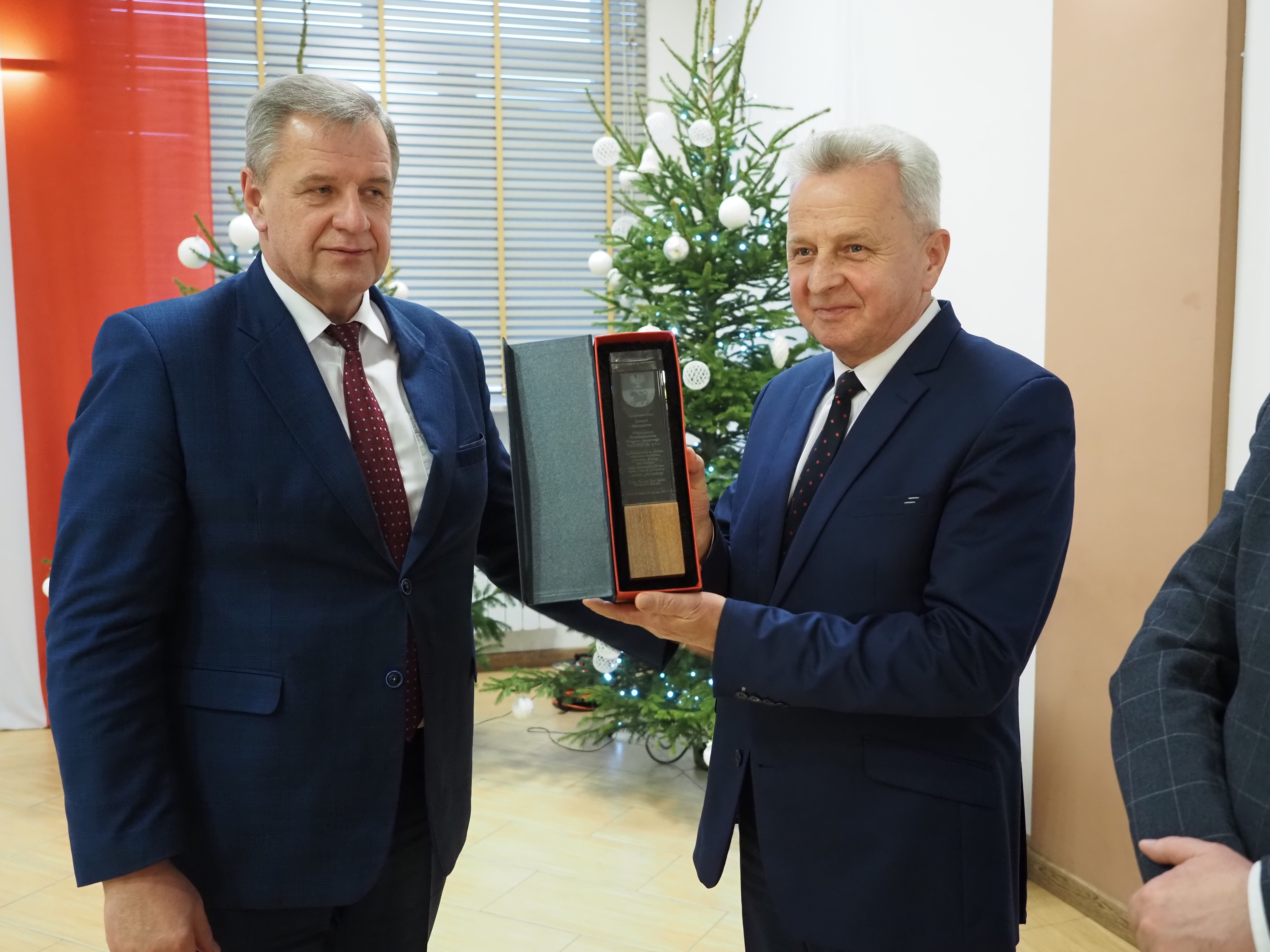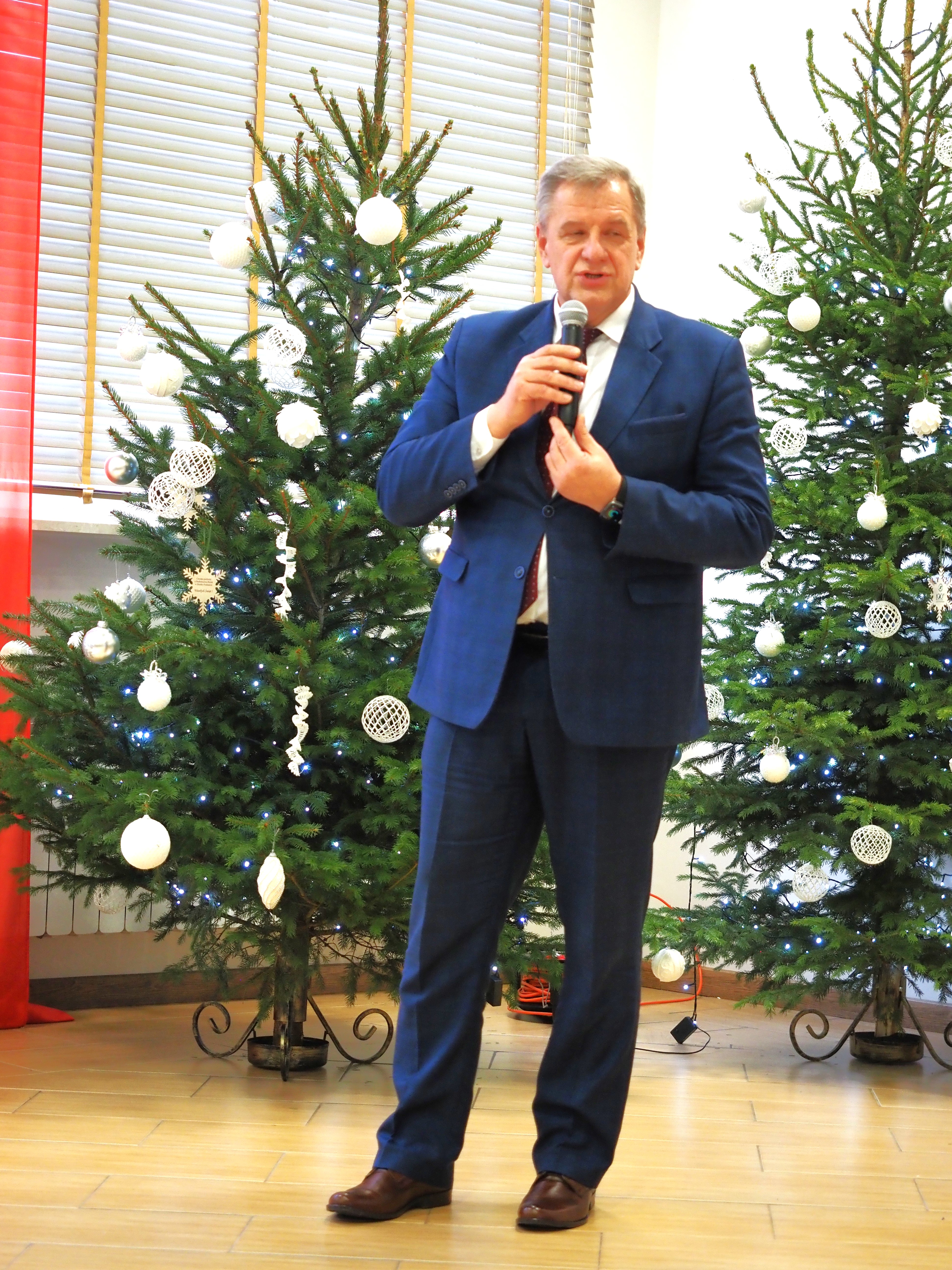 w zakresie edukacji, utrzymania i budowy dróg powiatowych, rynku pracy, ochrony zdrowia, pomocy społecznej, bezpieczeństwa publicznego oraz administracji powiatowej. Ważnym wątkiem przewijającym się w jego przemówieniu było znaczenie wspólnoty powiatowej oraz rola, jaką pełnią osoby i instytucje zewnętrzne, dzięki którym wspólnota ta może realizować zadania, zabezpieczać swoje potrzeby oraz stale się rozwijać. To właśnie do tych, którzy wspierają Powiat Bielski i pracowników samorządowych, starosta skierował podziękowania i wyrazy wdzięczności. Jak podczas każdego spotkania noworocznego, kilka wybranych spośród tego grona osób zostało przez niego uhonorowanych pamiątkowymi statuetkami. Otrzymali je burmistrz Bielska Podlaskiego Jarosław Borowski, burmistrz Brańska Eugeniusz Koczewski oraz wójtowie gmin: Raisa Rajecka (gmina Bielsk Podlaski), Mariusz Korzeniewski (gmina Wyszki), Andrzej Jankowski (gmina Brańsk). Ponadto wśród wyróżnionych znalazł się Jan Miniuk, właściciel Przedsiębiorstwa Drogowo-Mostowego „Maksbud”.