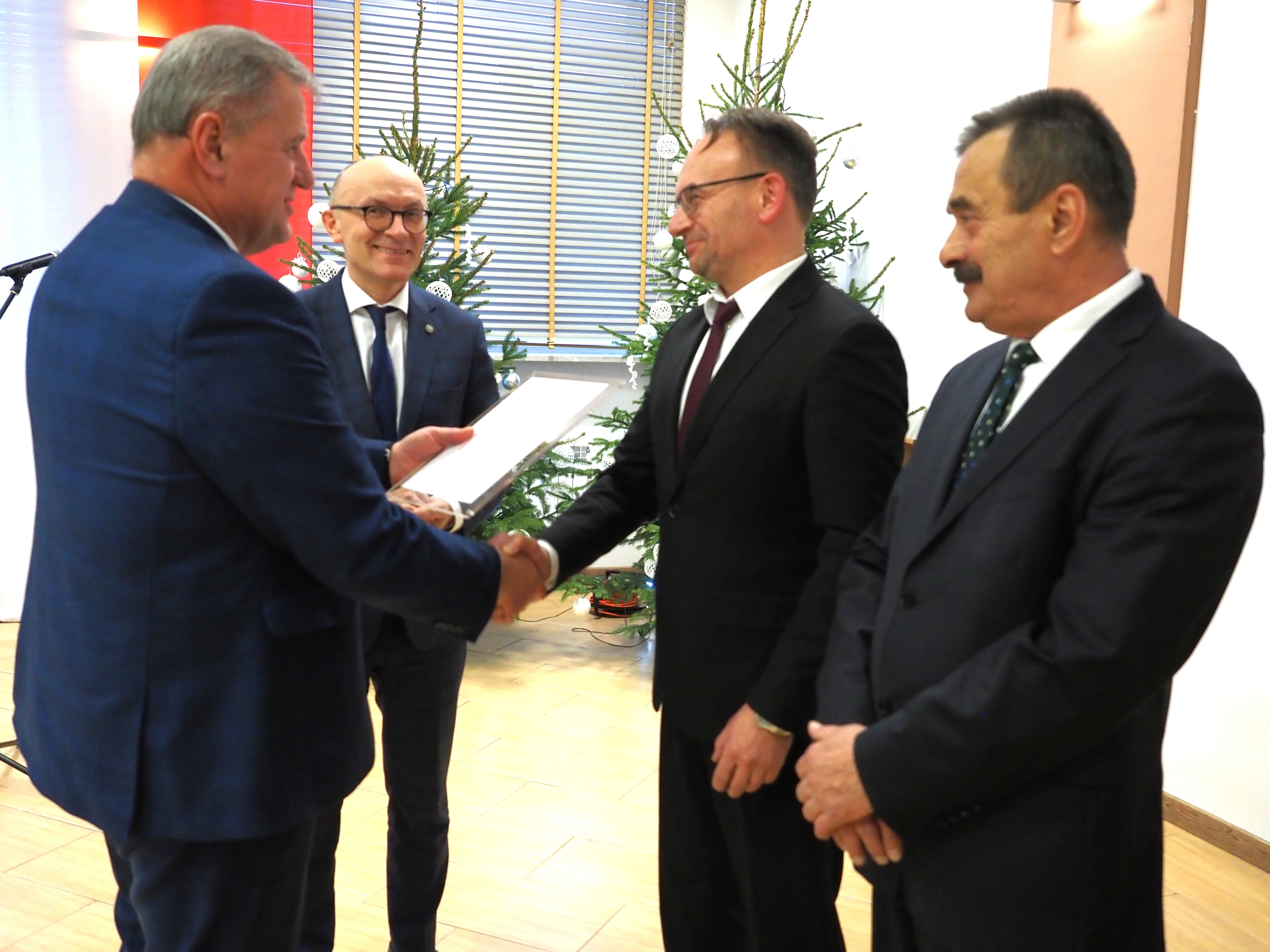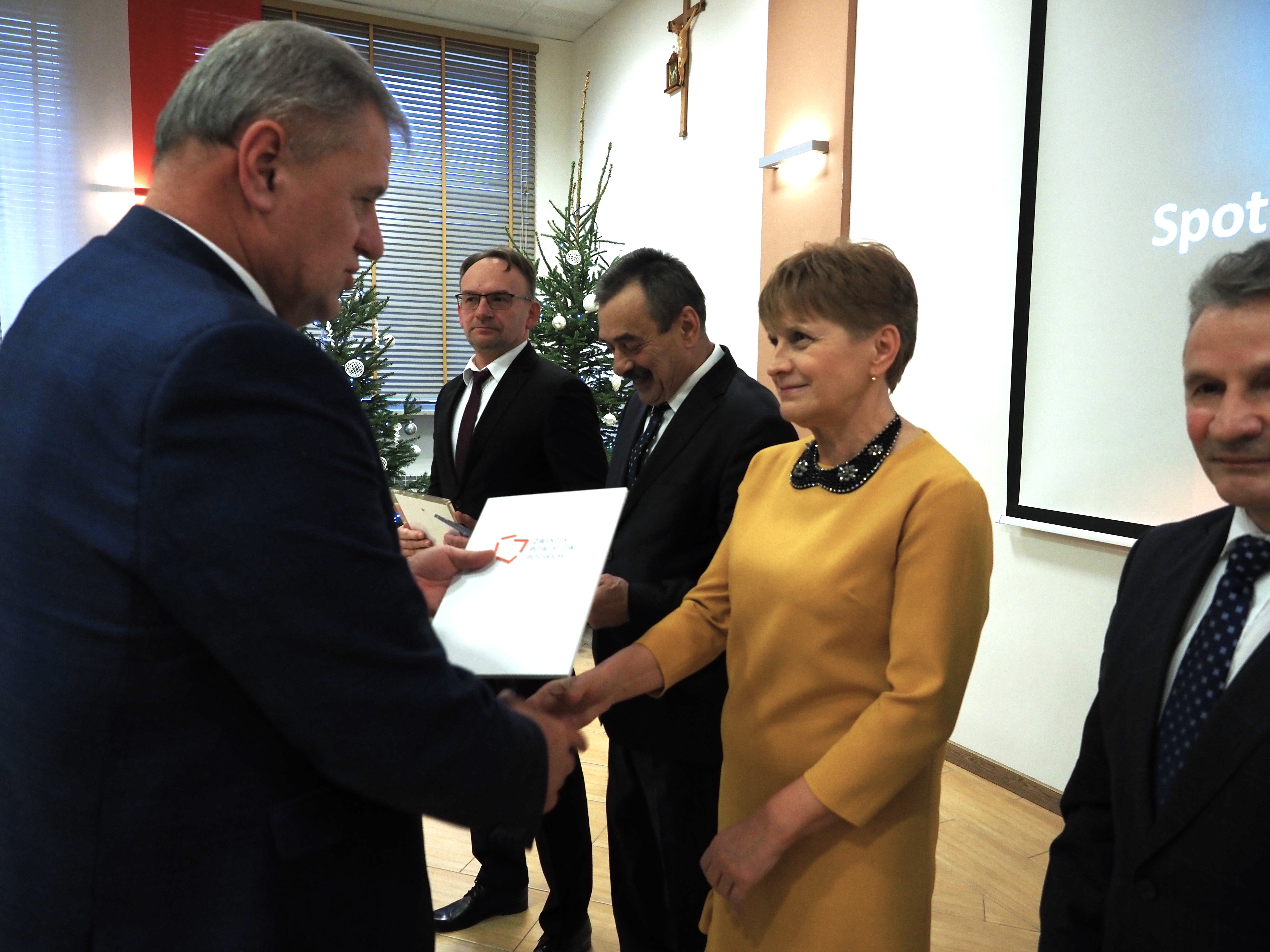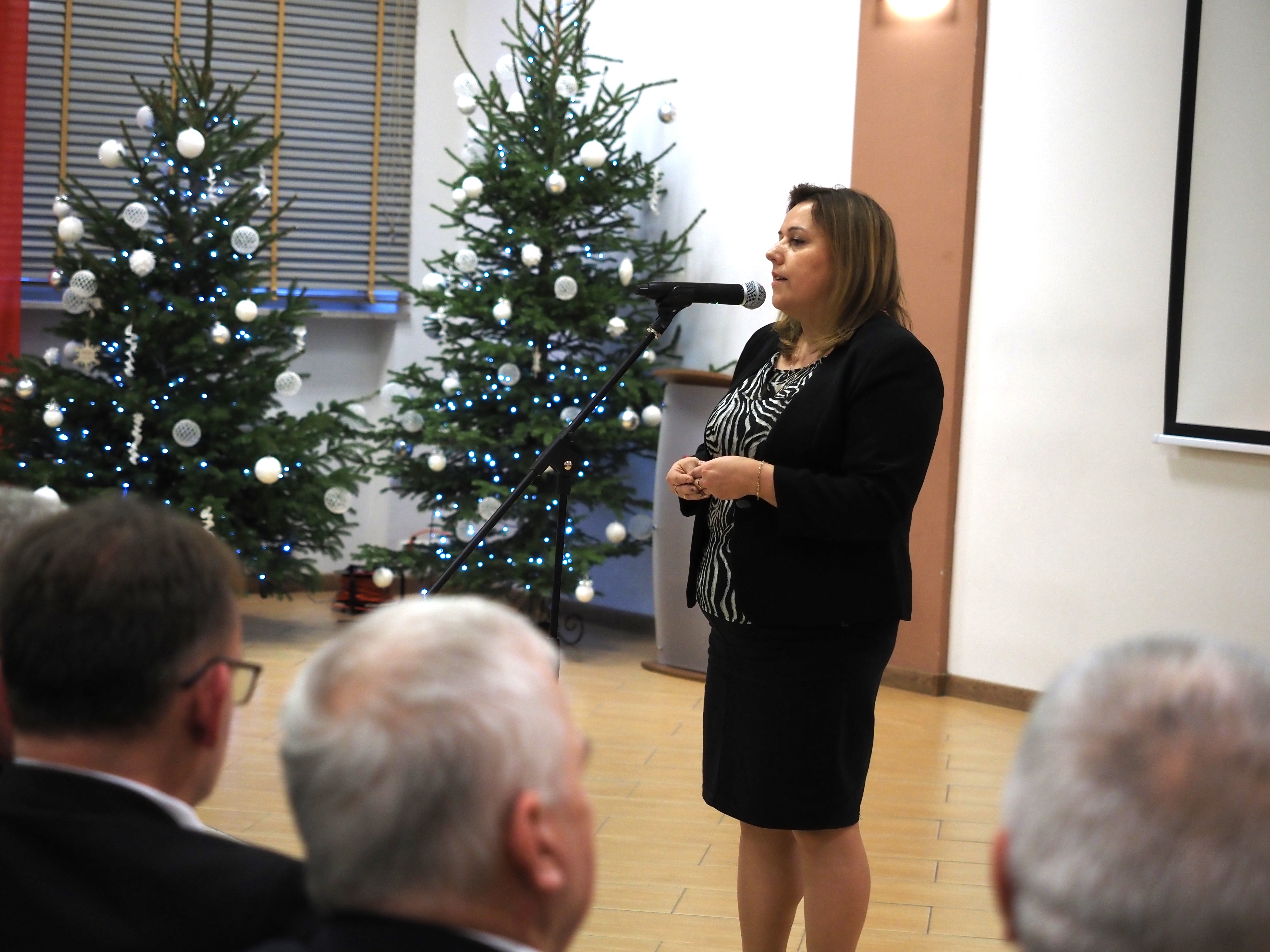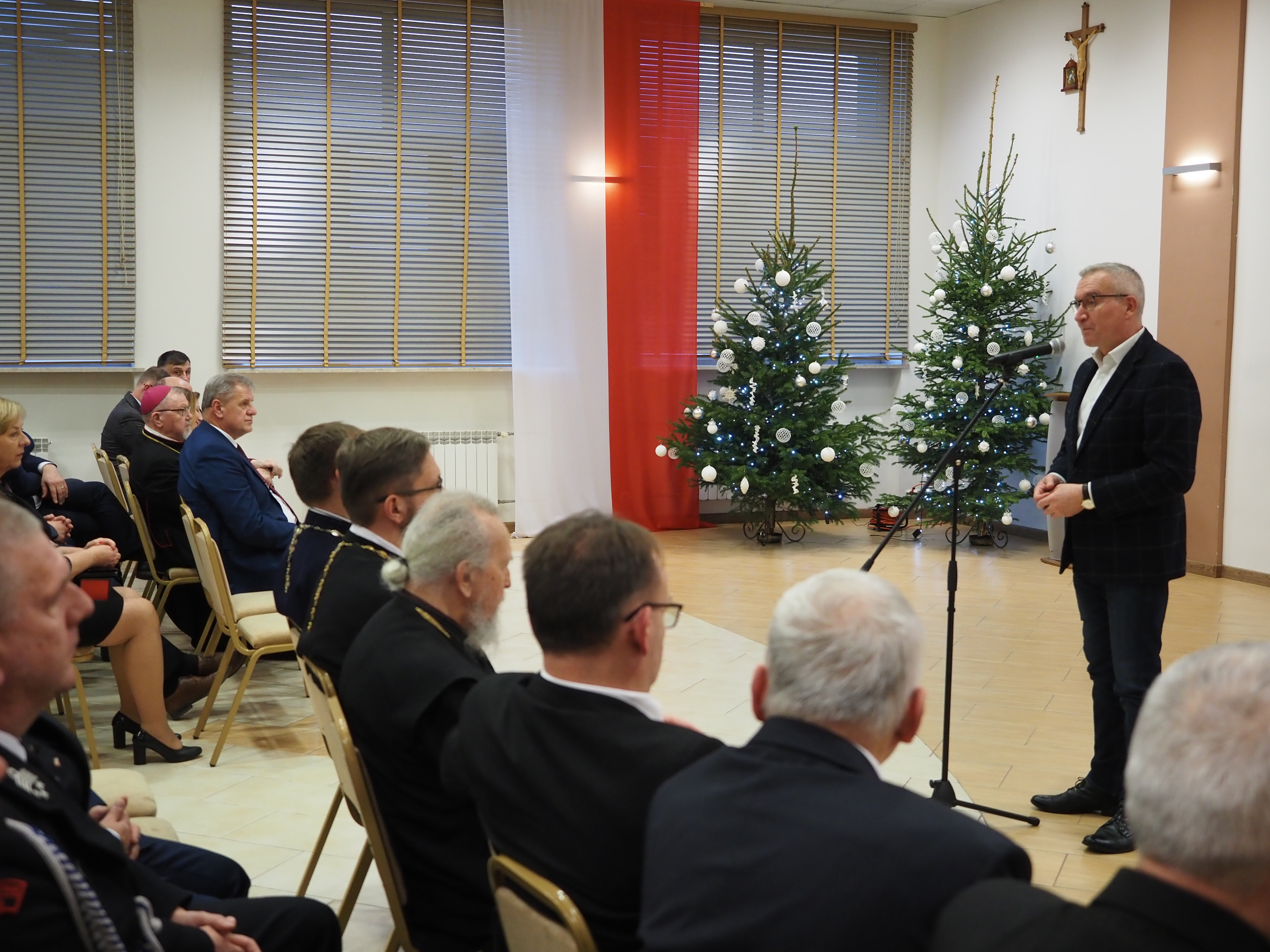 w zakresie edukacji, utrzymania i budowy dróg powiatowych, rynku pracy, ochrony zdrowia, pomocy społecznej, bezpieczeństwa publicznego oraz administracji powiatowej. Ważnym wątkiem przewijającym się w jego przemówieniu było znaczenie wspólnoty powiatowej oraz rola, jaką pełnią osoby i instytucje zewnętrzne, dzięki którym wspólnota ta może realizować zadania, zabezpieczać swoje potrzeby oraz stale się rozwijać. To właśnie do tych, którzy wspierają Powiat Bielski i pracowników samorządowych, starosta skierował podziękowania i wyrazy wdzięczności. Jak podczas każdego spotkania noworocznego, kilka wybranych spośród tego grona osób zostało przez niego uhonorowanych pamiątkowymi statuetkami. Otrzymali je burmistrz Bielska Podlaskiego Jarosław Borowski, burmistrz Brańska Eugeniusz Koczewski oraz wójtowie gmin: Raisa Rajecka (gmina Bielsk Podlaski), Mariusz Korzeniewski (gmina Wyszki), Andrzej Jankowski (gmina Brańsk). Ponadto wśród wyróżnionych znalazł się Jan Miniuk, właściciel Przedsiębiorstwa Drogowo-Mostowego „Maksbud”.