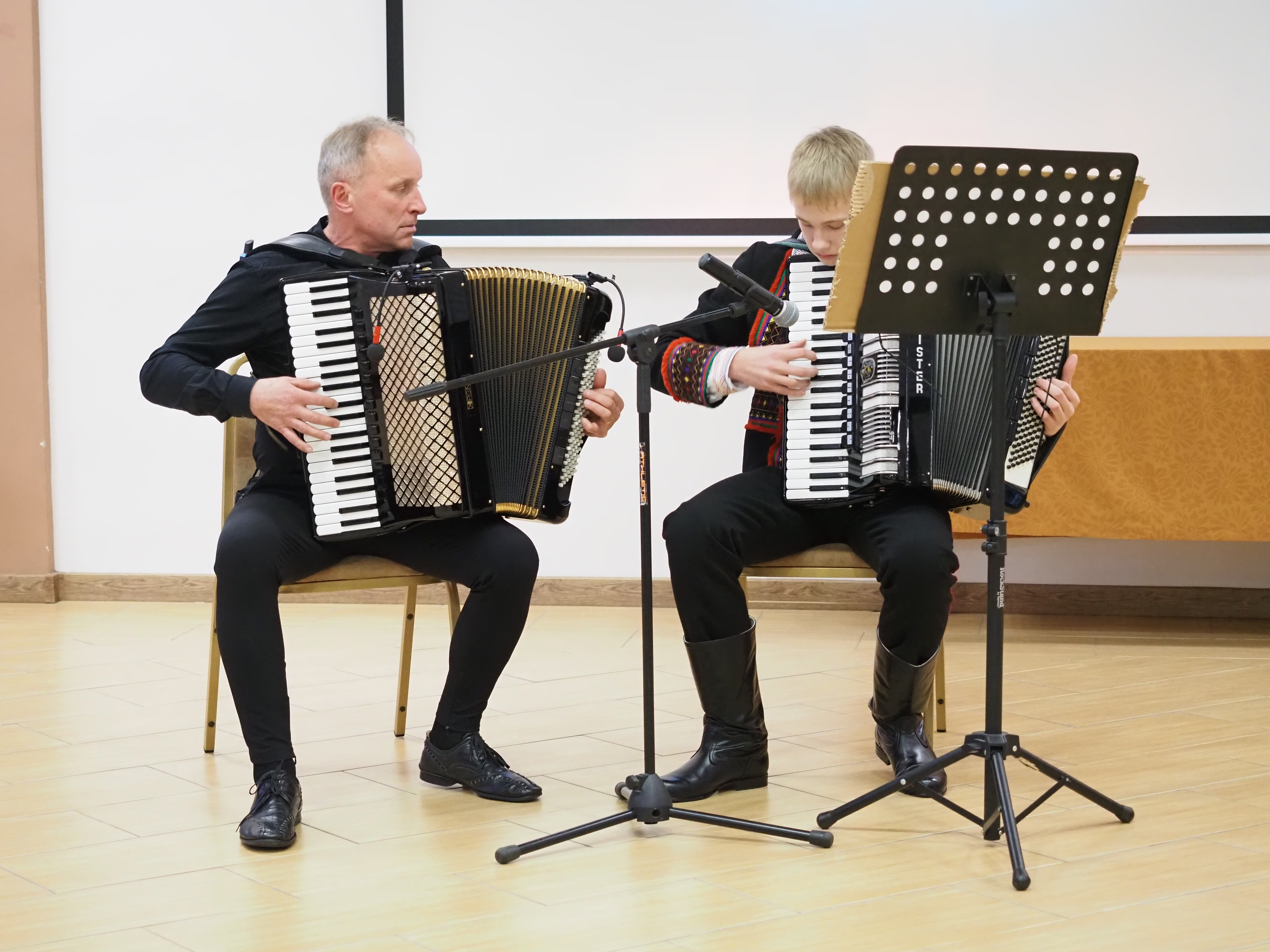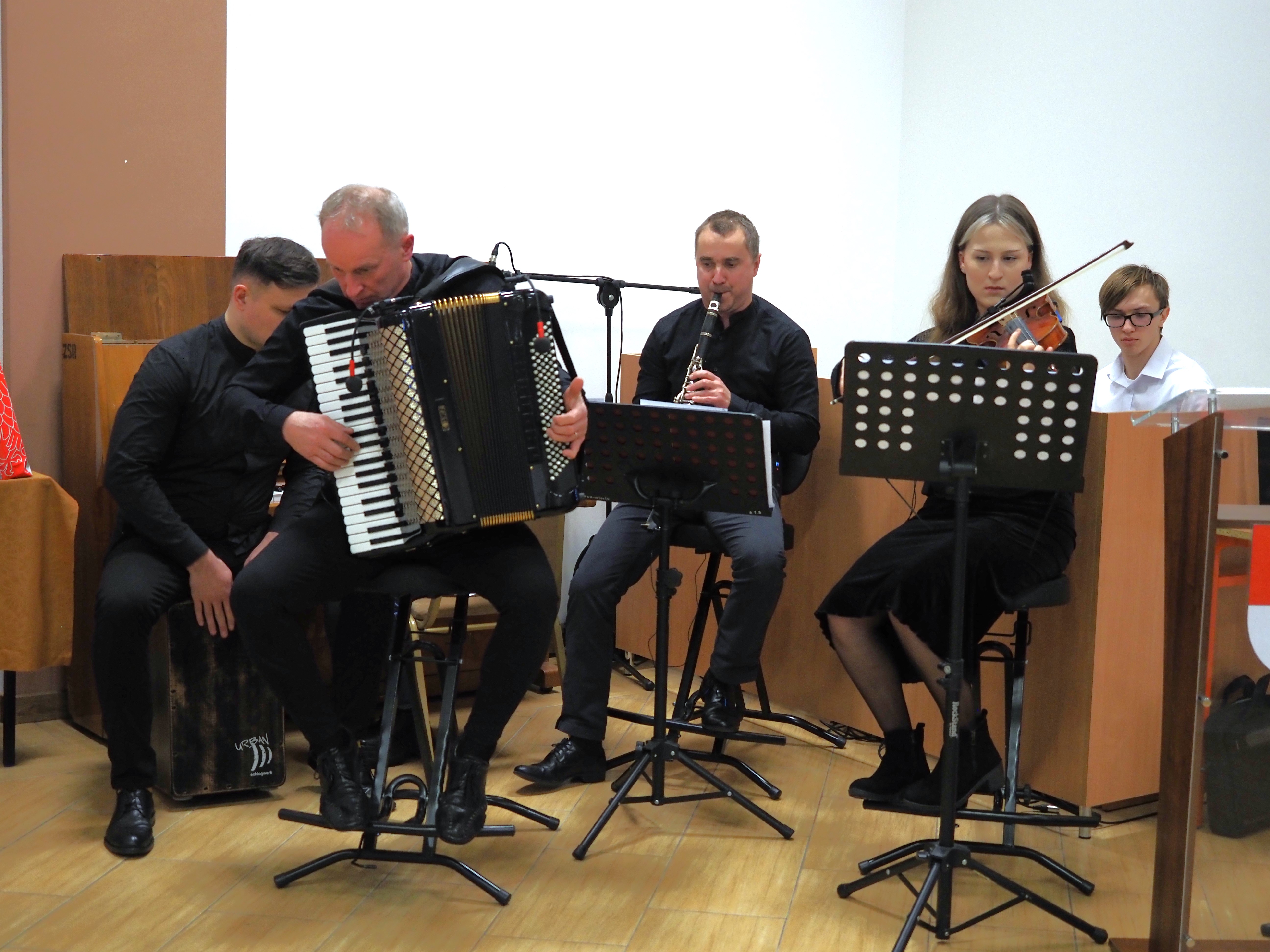 Spotkanie zostało artystycznie okraszone przez zespół pieśni i tańca „Podlaskie Kukułki”. Zaprezentowany bogaty i bardzo zróżnicowany program muzyczno-taneczny wzbudzał gorące brawa uczestników wydarzenia, co znalazło wyraz w komentarzach wymienionych wyżej, przemawiających gości. Na początku spotkania członkowie zespołu z towarzyszeniem muzyków zaśpiewali dwie kolędy „O gwiazdo betlejemska” i „Zoraczka”. Następnie w przerwach między kolejnymi częściami wydarzenia zaprezentowano tańce ludowe wchodzące w skład „Suity lubelskiej”. Z aplauzem widowni spotkał się występ duetu akordeonowego Wiesława Dolińskiego (nauczyciela) i Gabriela Gierasimiuka (ucznia) grających walca „Światło i cień”. Podziwiano również choreografa zespołu Magdalenę Sokólską tańczącą „Najpiękniejszego walczyka lubelskiego”. Warto dodać, iż był to ulubiony utwór muzyczny Mikołaja Turkowicza - jej ojca, założyciela i wieloletniego kierownika artystycznego „Podlaskich Kukułek”. Tancerze i muzycy zakończyli pokaz swoich możliwości artystycznych zatańczonym z wdziękiem i gracją „Tangiem na trzy osoby”, zaprezentowanym przez Zuzannę Derewońko, Kacpra Młodzianowskiego (oboje są stypendystami marszałka Województwa Podlaskiego w dziedzinie twórczości artystycznej) oraz Tomasza Tymoszewicza.