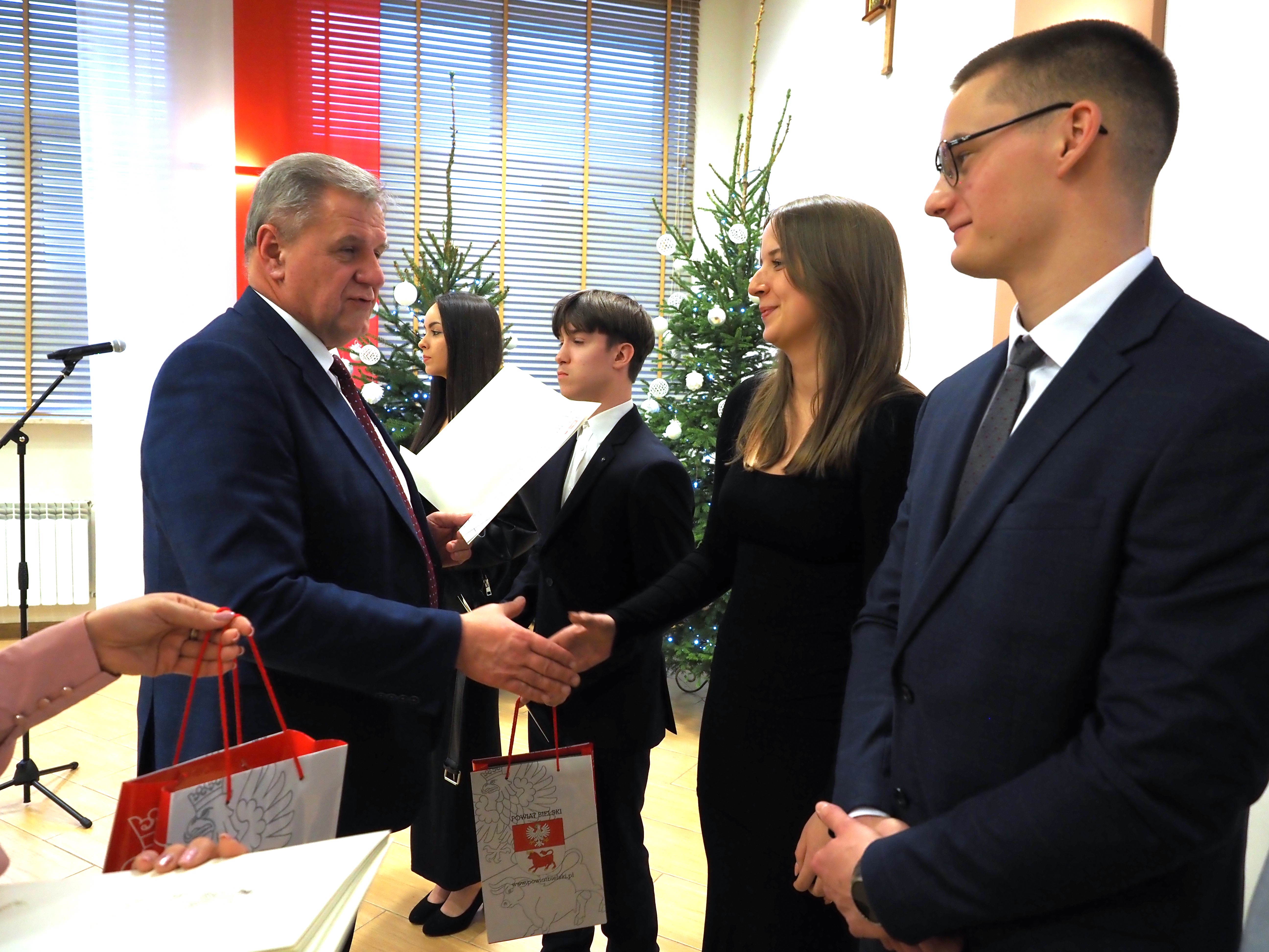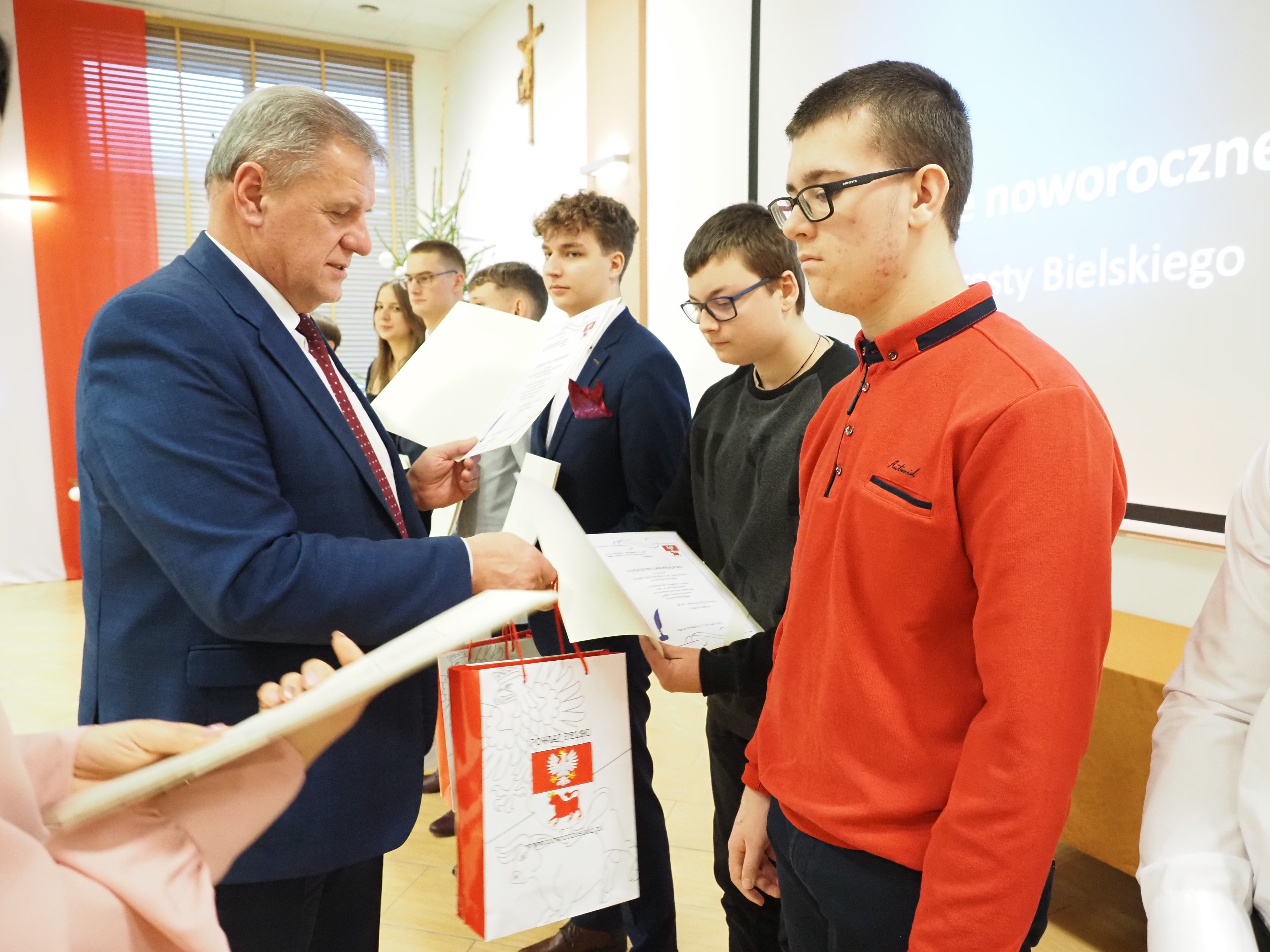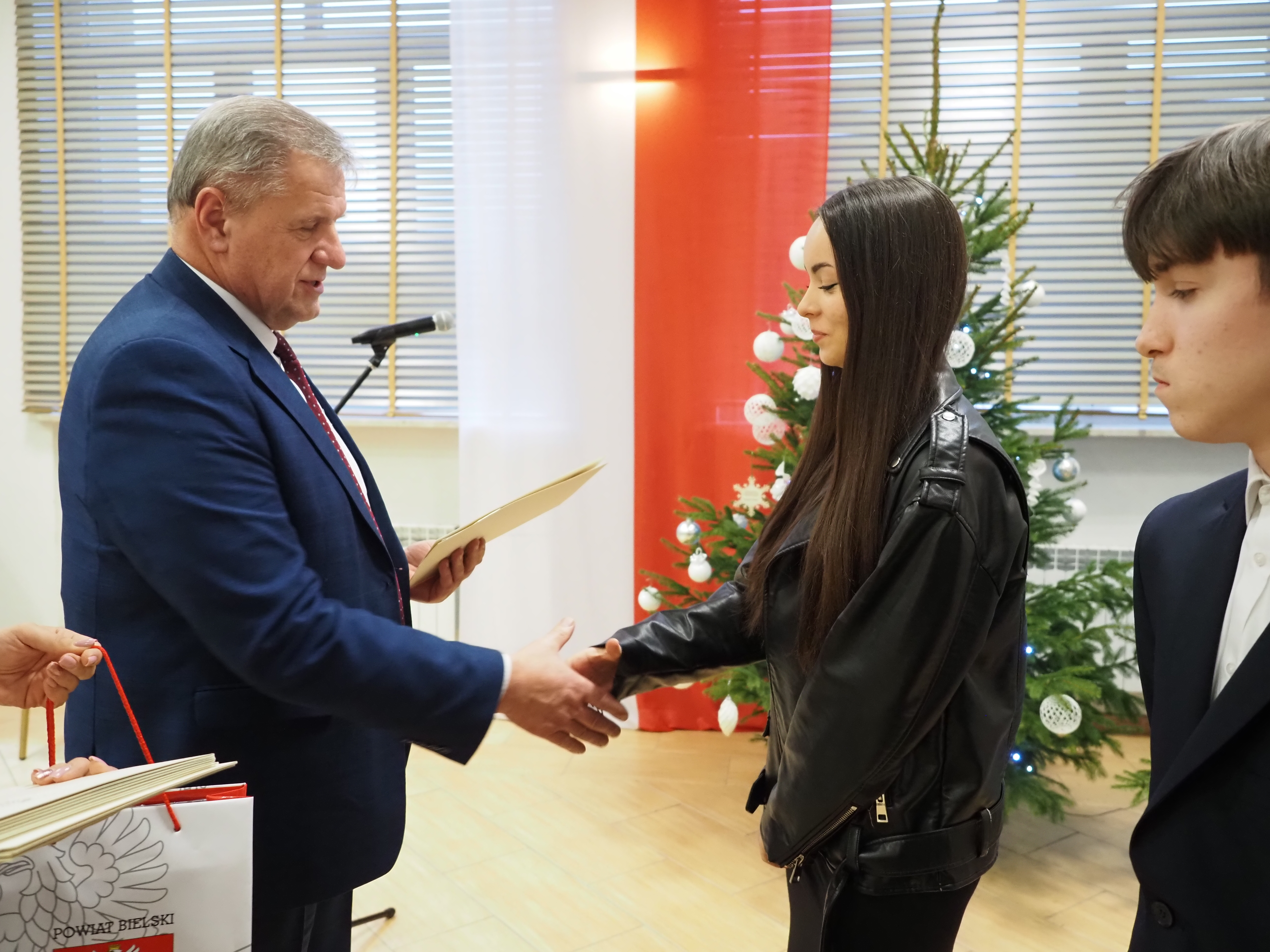 Podkreślając, jak ważną dziedziną funkcjonowania powiatu jest edukacja, starosta corocznie wyróżnia najlepszych uczniów bielskich szkół ponadpodstawowych prowadzonych przez Powiat Bielski. Podczas tegorocznego spotkania zostali nagrodzeni dyplomami i upominkami: Laura Kamińska i Karol Wierciński (I Liceum Ogólnokształcące im. Tadeusza Kościuszki), Aleksandra Nowicka i Piotr Burzyński (II Liceum Ogólnokształcące z Białoruskim Językiem Nauczania im. Bronisława Taraszkiewicza), Krystian Korzunowicz i Oskar Chmielewski (Zespół Szkół nr 1 im. Marszałka J.K. Piłsudskiego), Tomasz Maksimiuk i Mariusz Kraśko (Zespół Szkół nr 4 im. Ziemi Podlaskiej) oraz Bartosz Surdyn i Łukasz Sadowski (Zespół Szkół Specjalnych im. Jana Pawła II).