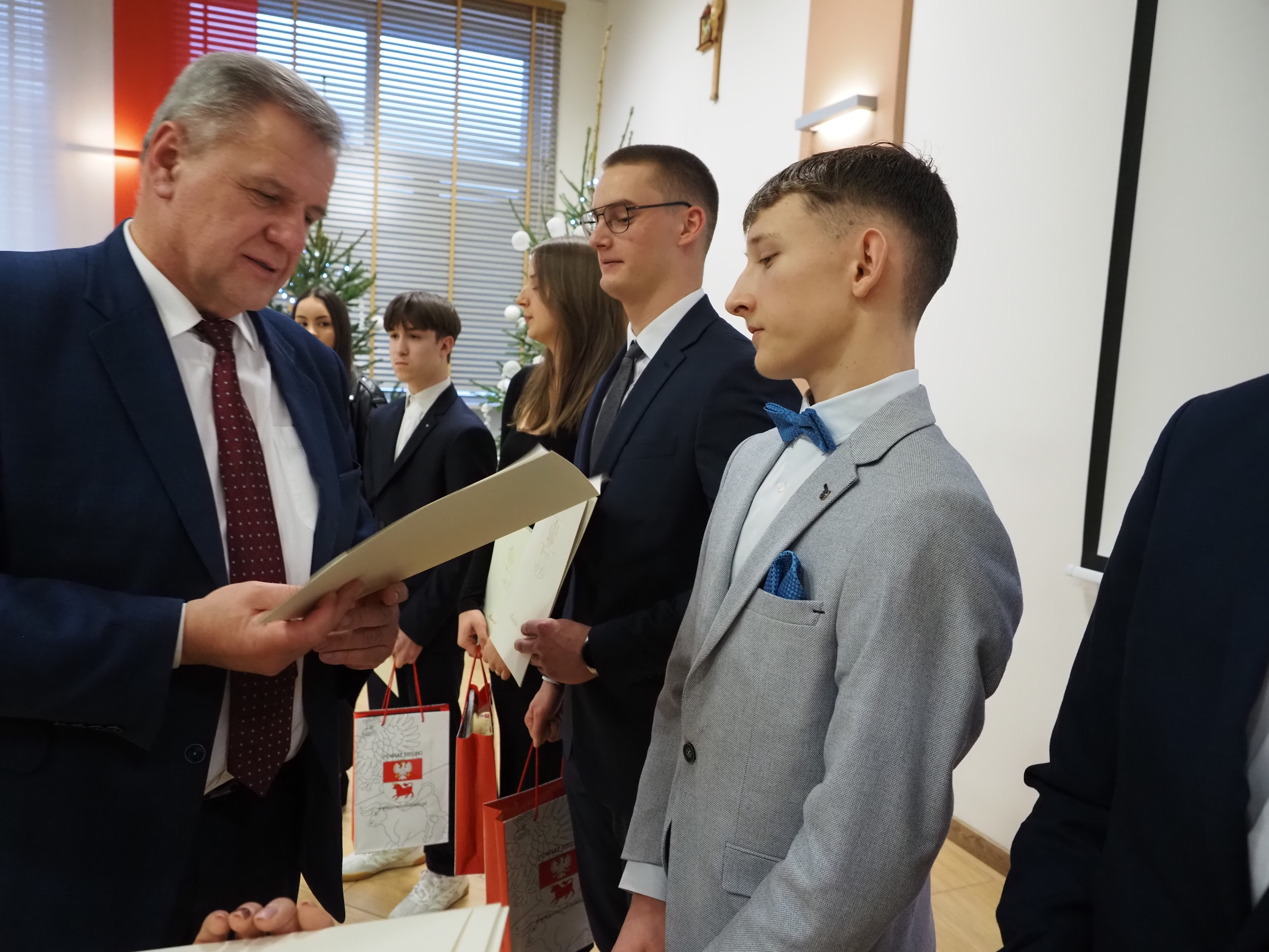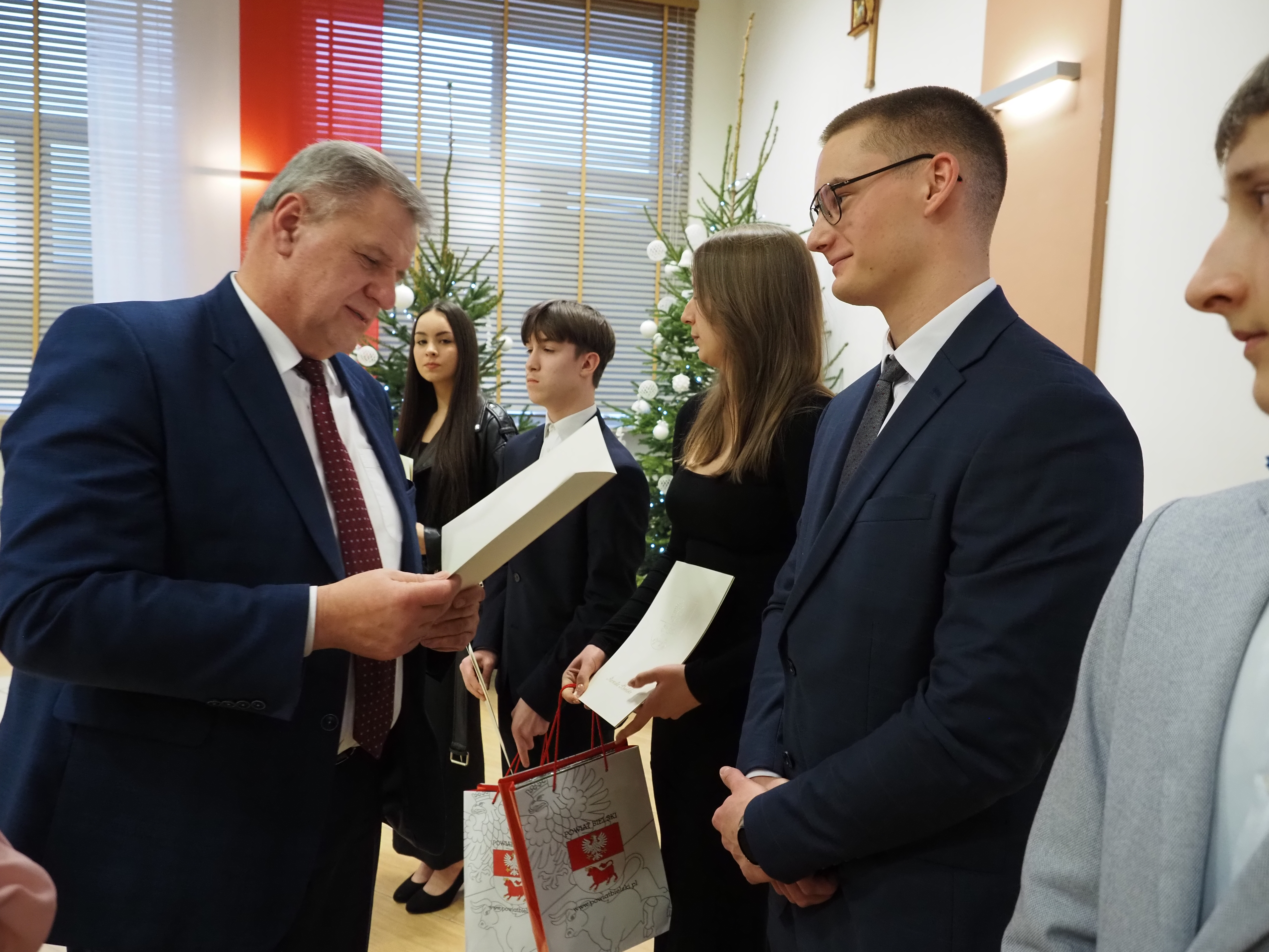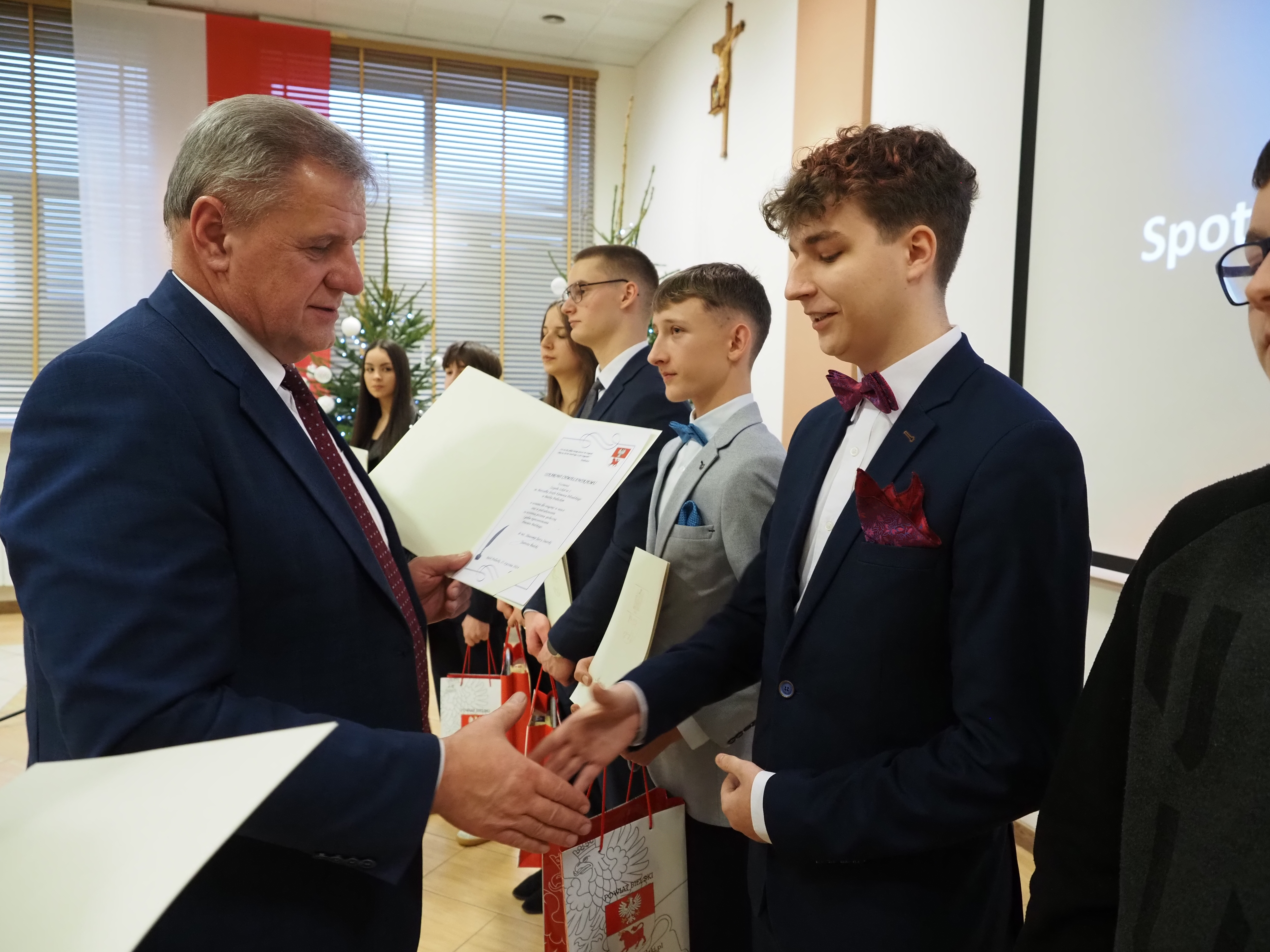 Podkreślając, jak ważną dziedziną funkcjonowania powiatu jest edukacja, starosta corocznie wyróżnia najlepszych uczniów bielskich szkół ponadpodstawowych prowadzonych przez Powiat Bielski. Podczas tegorocznego spotkania zostali nagrodzeni dyplomami i upominkami: Laura Kamińska i Karol Wierciński (I Liceum Ogólnokształcące im. Tadeusza Kościuszki), Aleksandra Nowicka i Piotr Burzyński (II Liceum Ogólnokształcące z Białoruskim Językiem Nauczania im. Bronisława Taraszkiewicza), Krystian Korzunowicz i Oskar Chmielewski (Zespół Szkół nr 1 im. Marszałka J.K. Piłsudskiego), Tomasz Maksimiuk i Mariusz Kraśko (Zespół Szkół nr 4 im. Ziemi Podlaskiej) oraz Bartosz Surdyn i Łukasz Sadowski (Zespół Szkół Specjalnych im. Jana Pawła II).