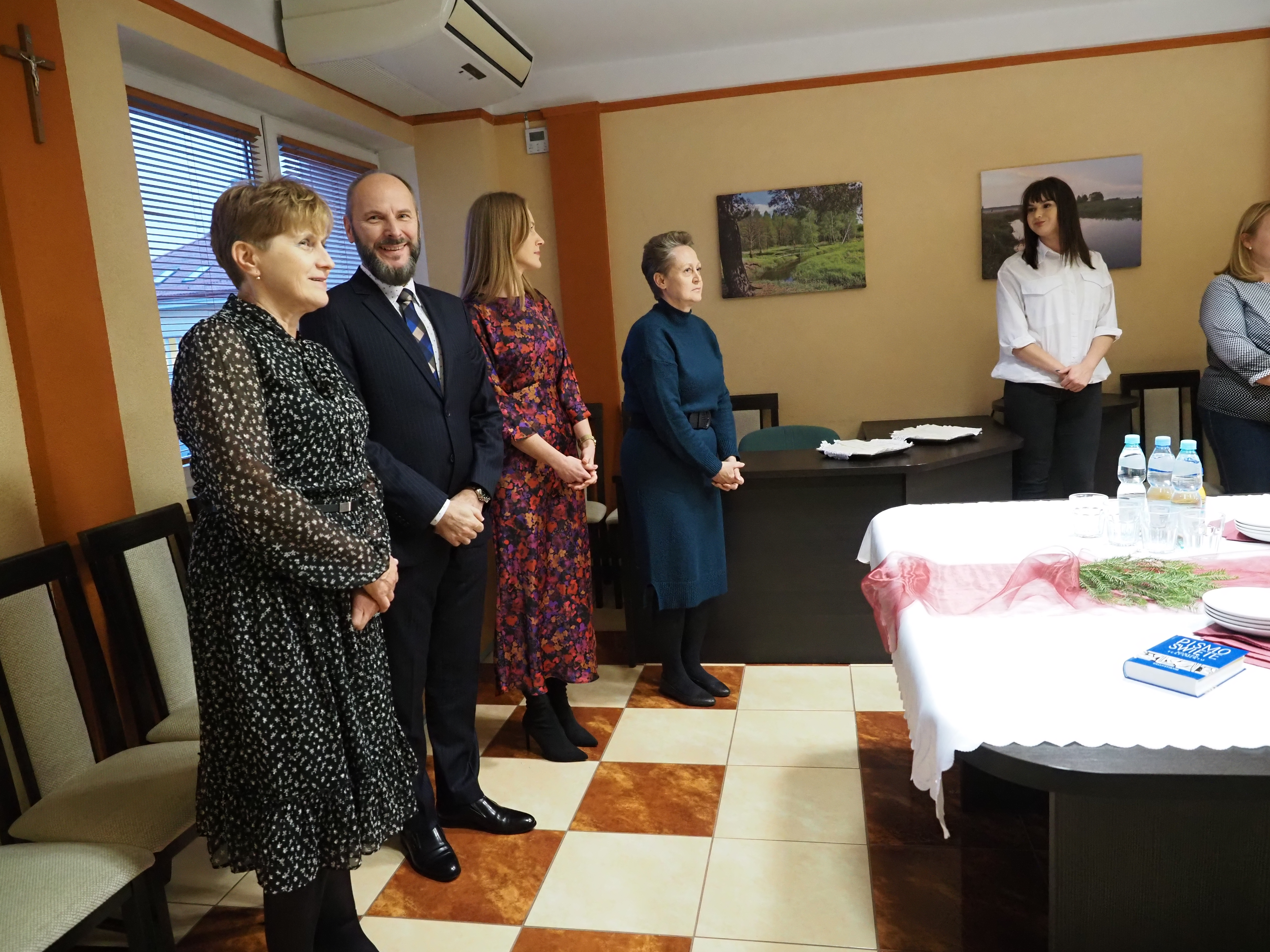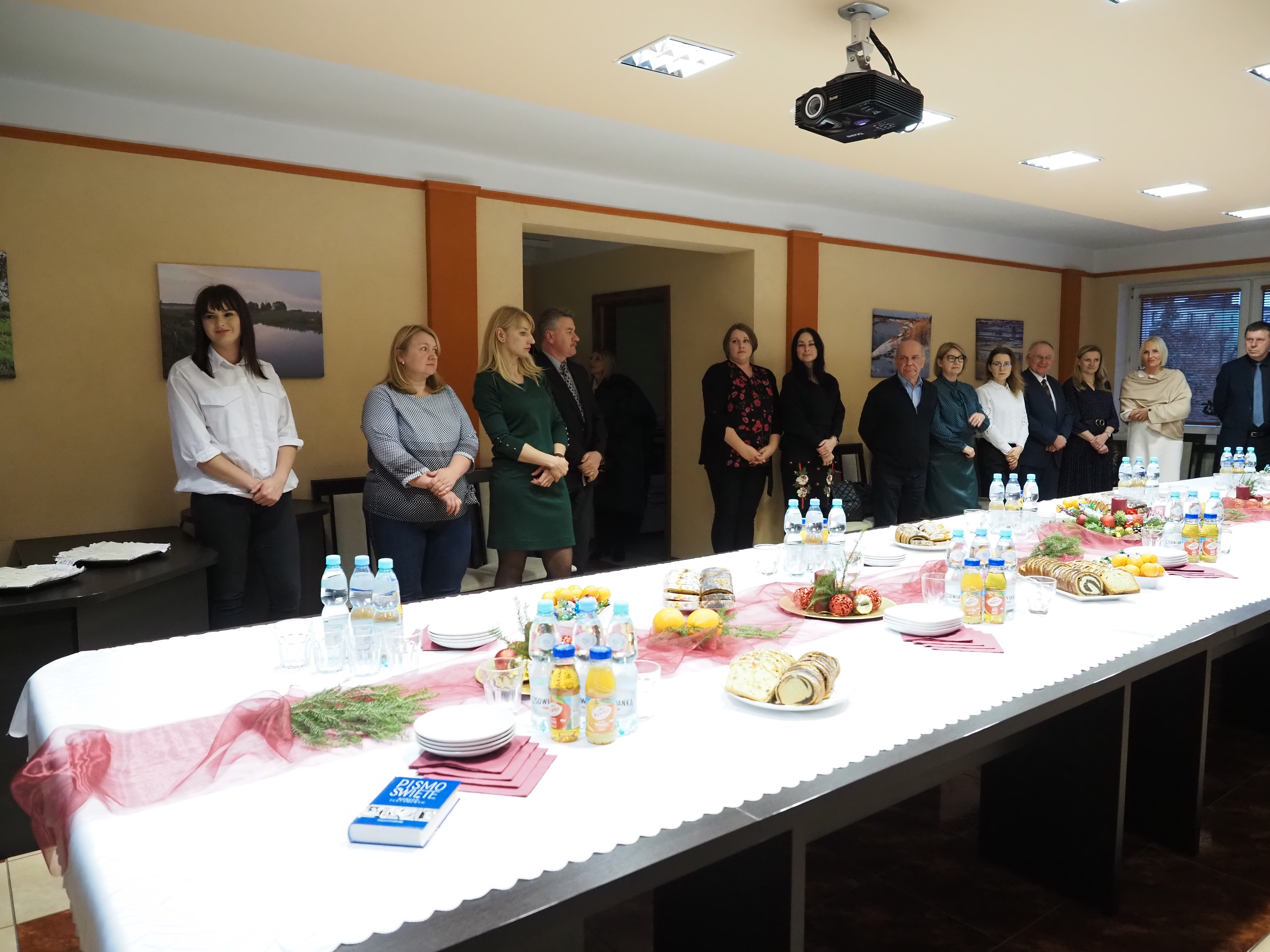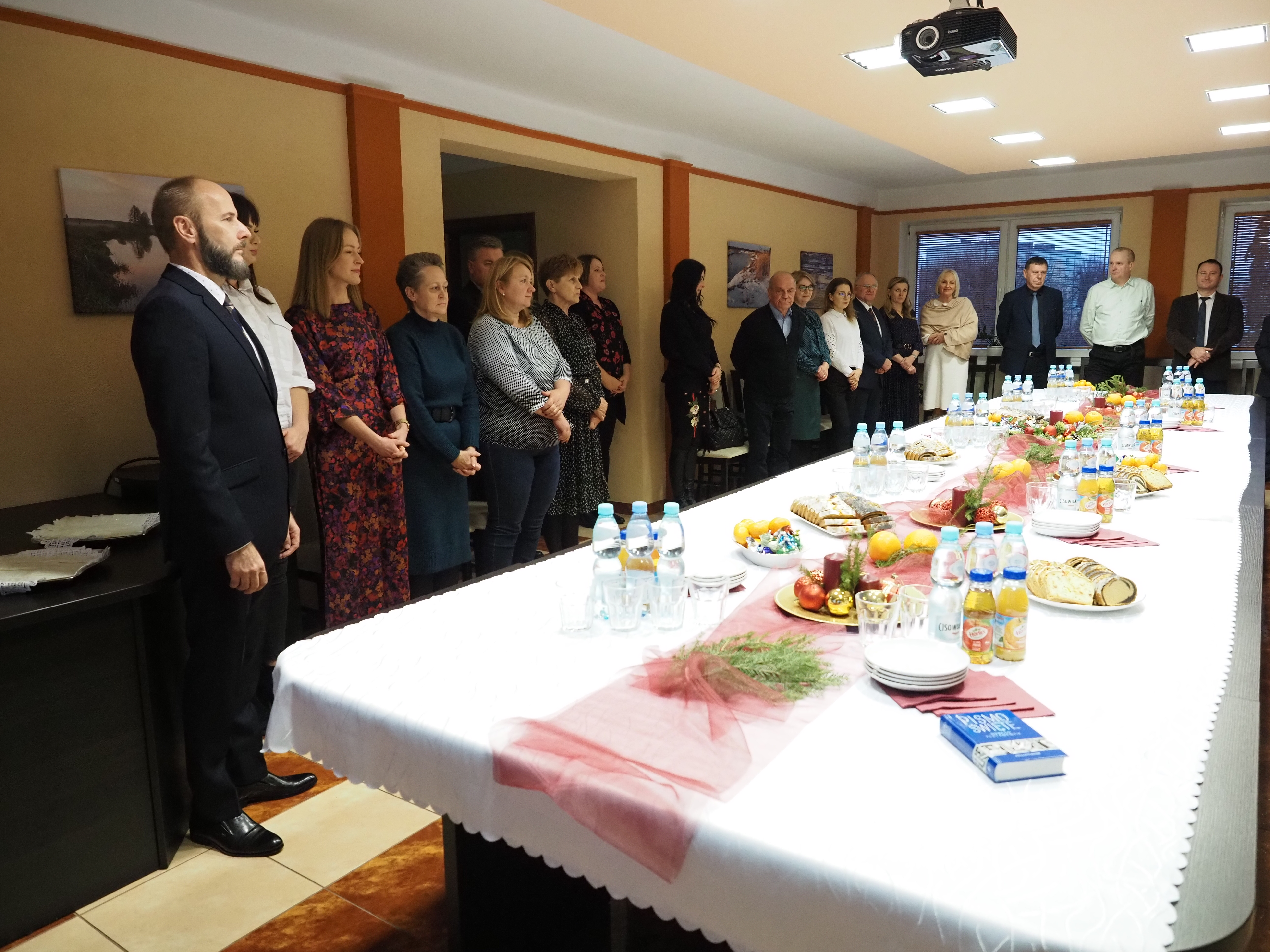 W sali konferencyjnej starostwa zgromadziło się kilkadziesiąt osób, w tym starostowie Snarski i Bożko, przewodniczący rady powiatu Andrzej Leszczyński, sekretarz powiatu Marek Martyniuk oraz skarbnik powiatu Nina Tymińska. W świąteczny, bożonarodzeniowy nastrój uczestników spotkania wprowadził pracownik starostwa inspektor Piotr Daniło, który odczytał fragment Ewangelii wg. św. Łukasza o narodzeniu Jezusa. Następnie przemówił do nich starosta Sławomir Snarski.