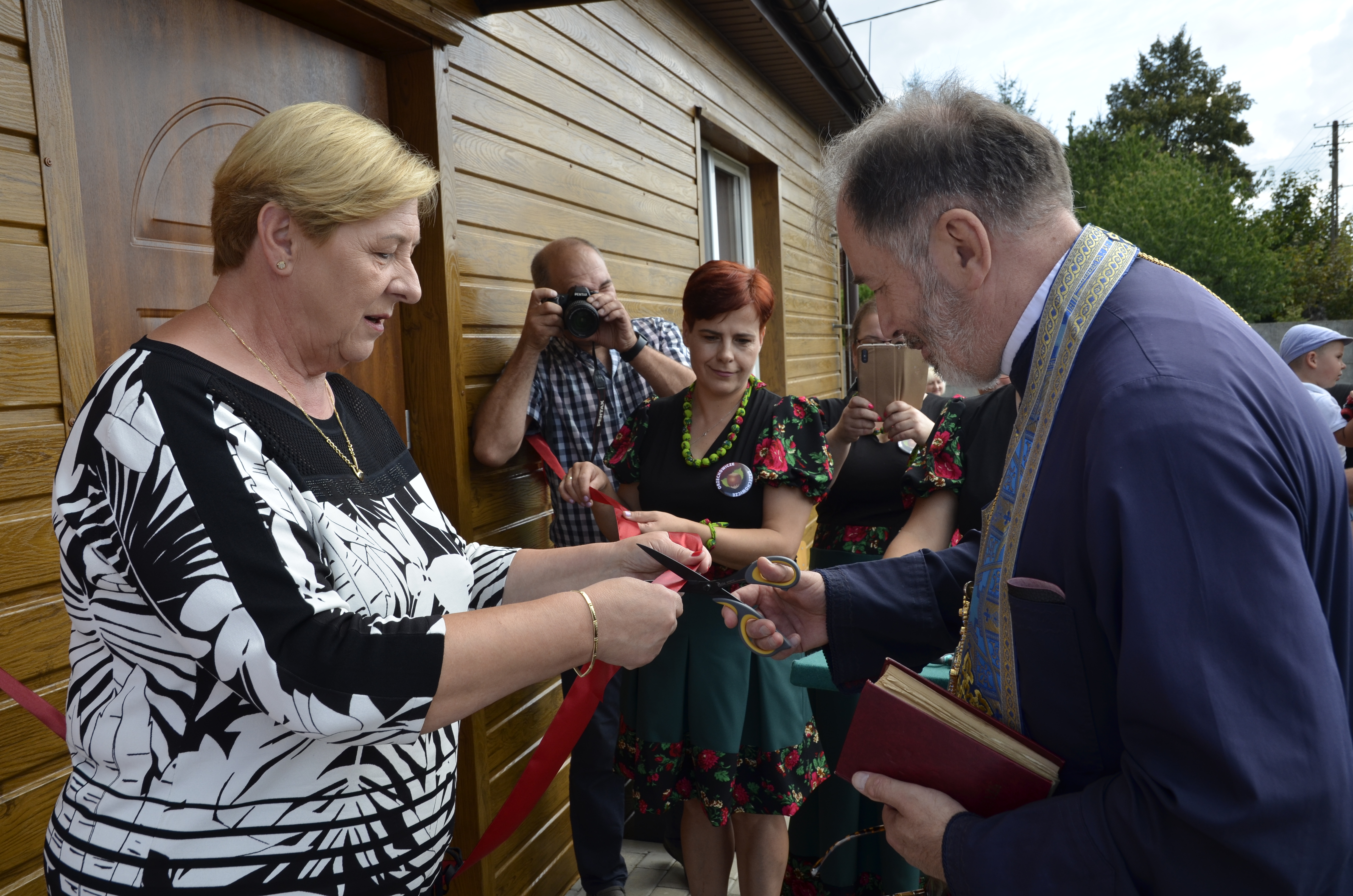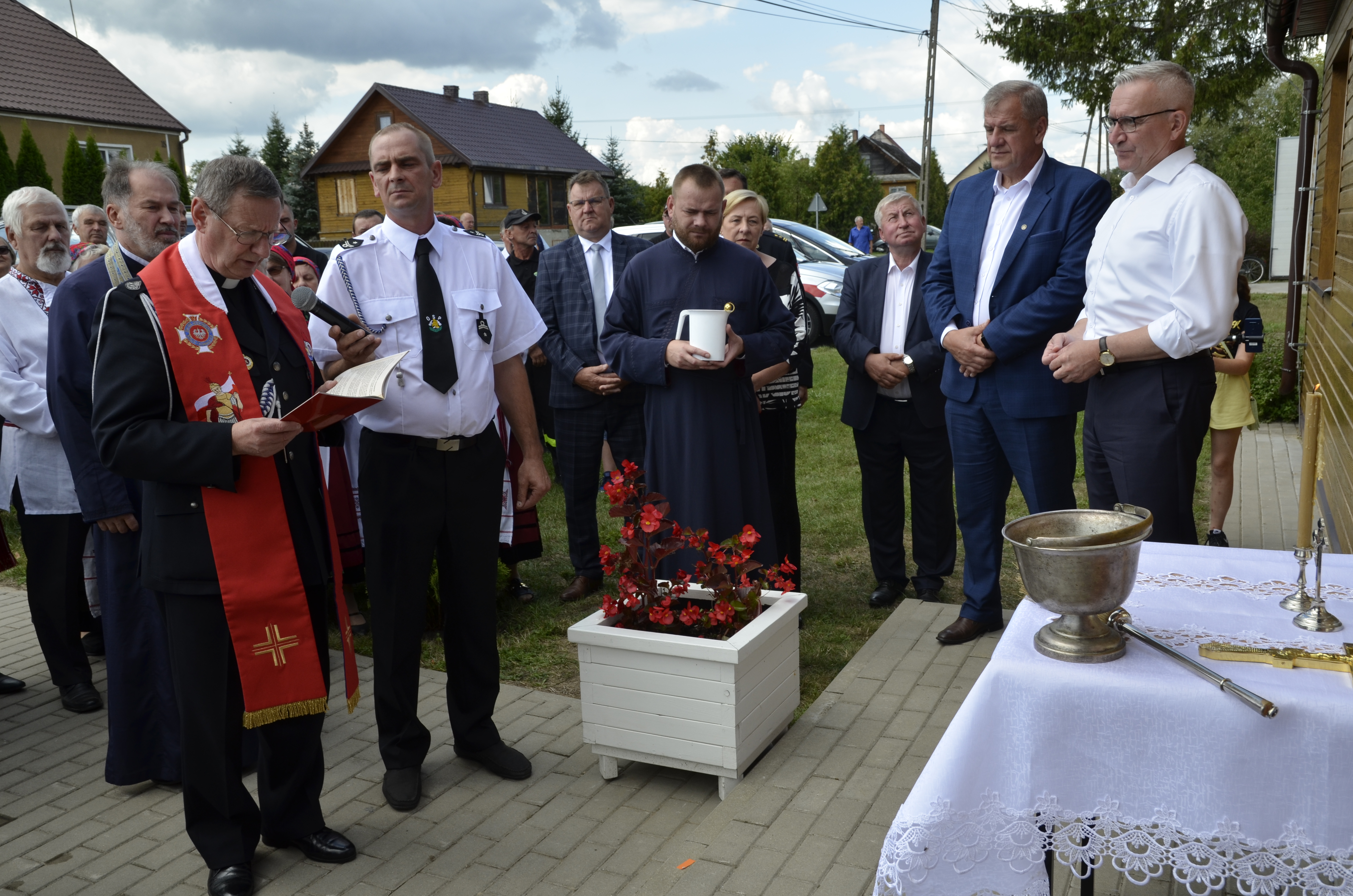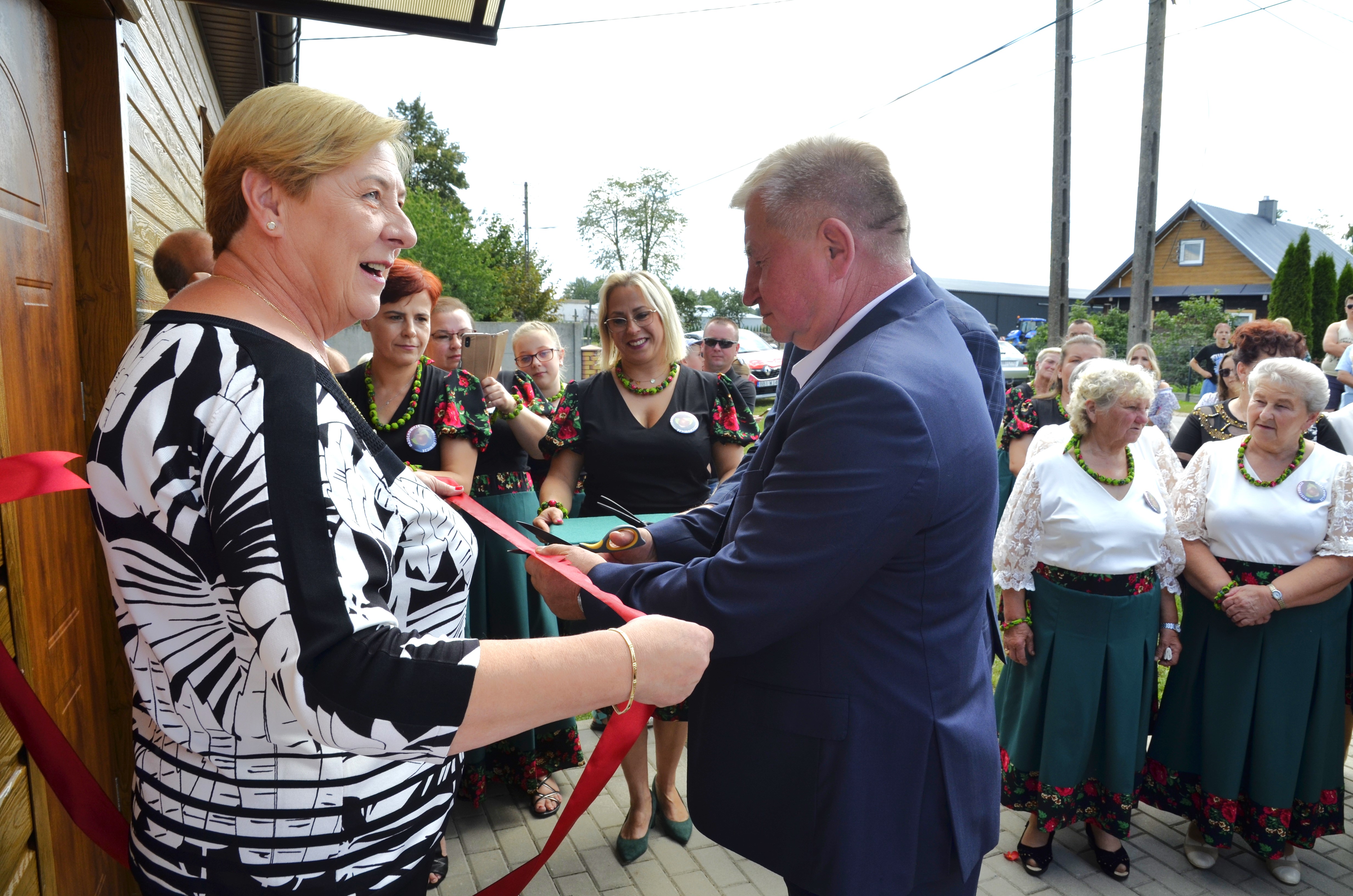 Akt przecięcia wstęgi dokonany został m.in. przez najstarszych i najmłodszych mieszkańców wsi, posła Tyszkiewicza i starostę Snarskiego, księży i pozostałych gości. Następnie kapłani odmówili modlitwy oraz dokonali aktu poświęcenia budynku świetlicy.