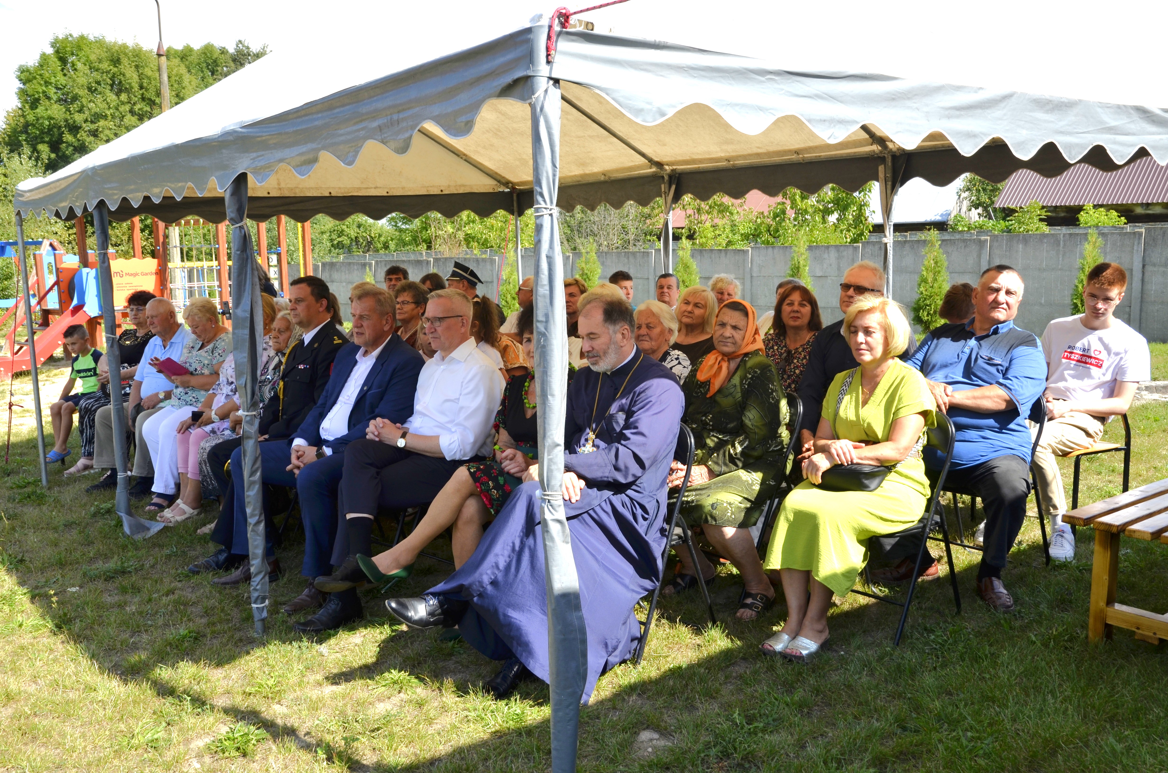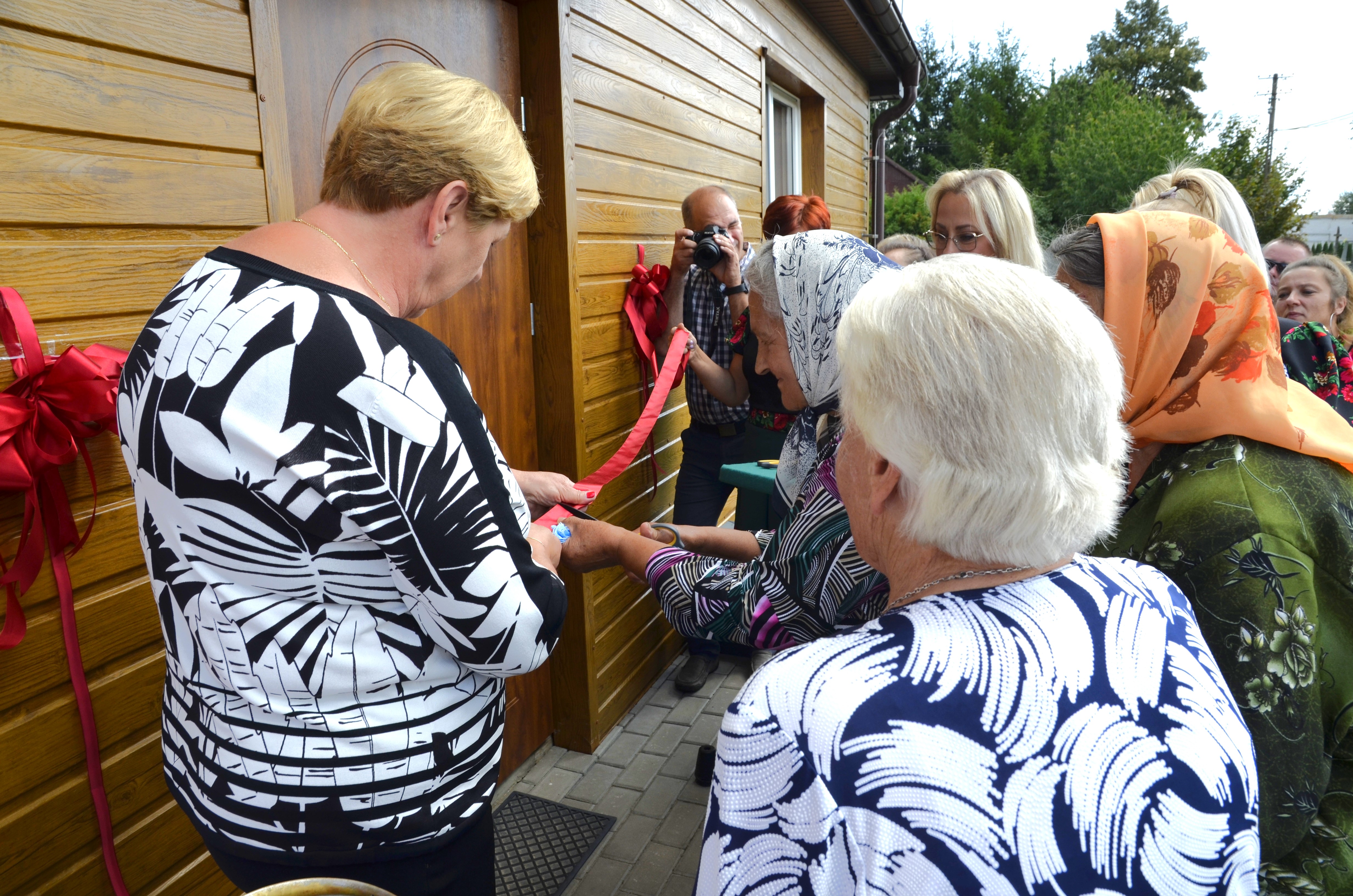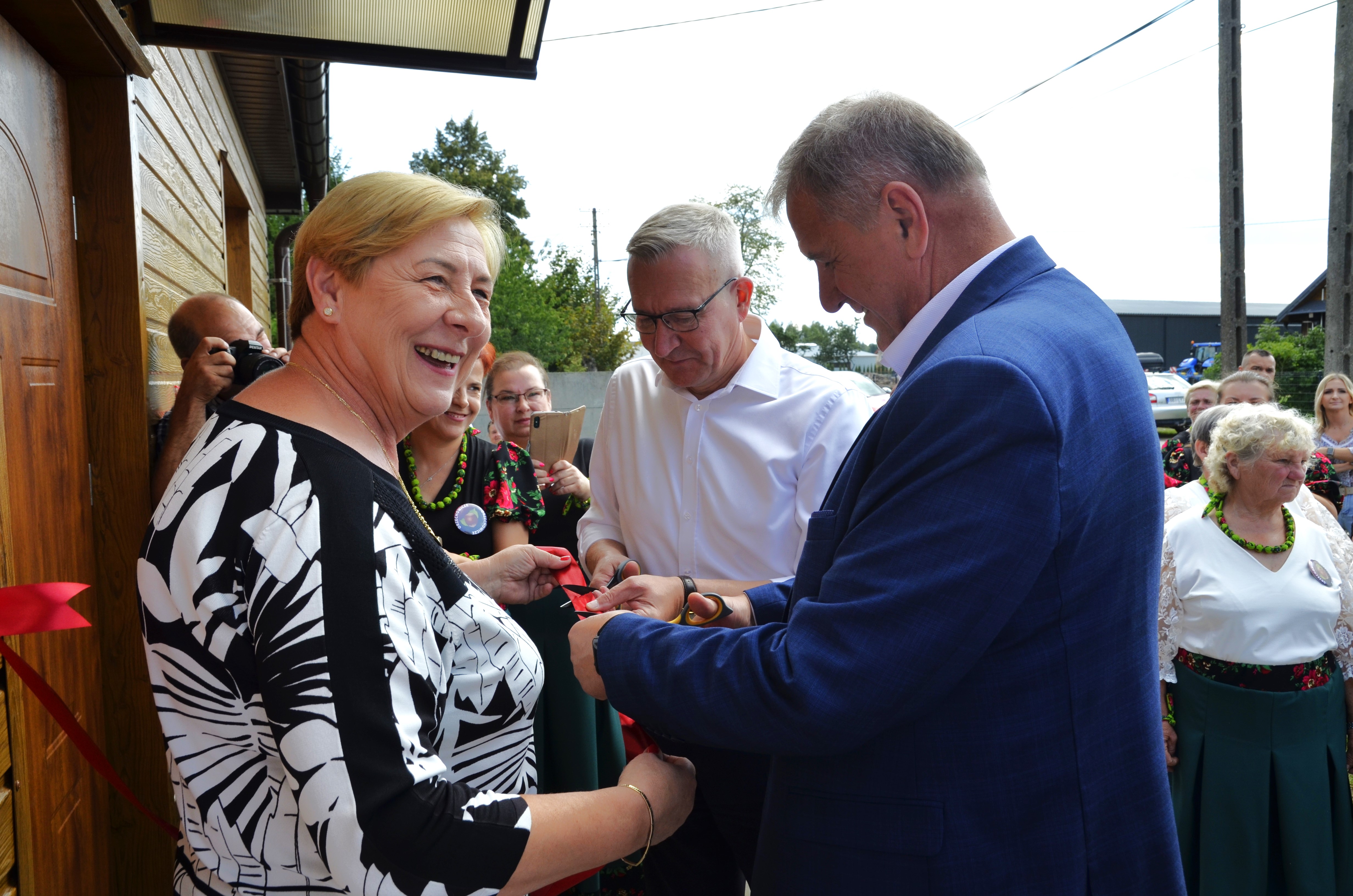 Akt przecięcia wstęgi dokonany został m.in. przez najstarszych i najmłodszych mieszkańców wsi, posła Tyszkiewicza i starostę Snarskiego, księży i pozostałych gości. Następnie kapłani odmówili modlitwy oraz dokonali aktu poświęcenia budynku świetlicy.
