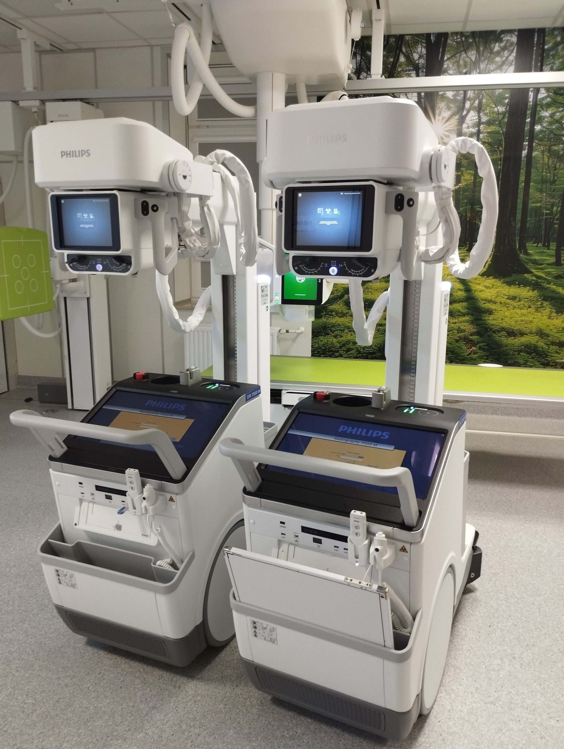 Szpital zakupił dwa nowe, mobilne aparaty RTG Radiography 7000 M firmy Philips, które będą służyły do wykonywania zdjęć przyłóżkowych oraz do diagnostyki w oddziałach ratunkowych. Unikalna technologia zasilania umożliwia płynne przemieszczanie aparatów oraz wyjątkowe możliwości diagnostyczne. Dzięki tym rozwiązaniom badania są szybsze, łatwiejsze dla operatora i mniej stresujące dla pacjentów.