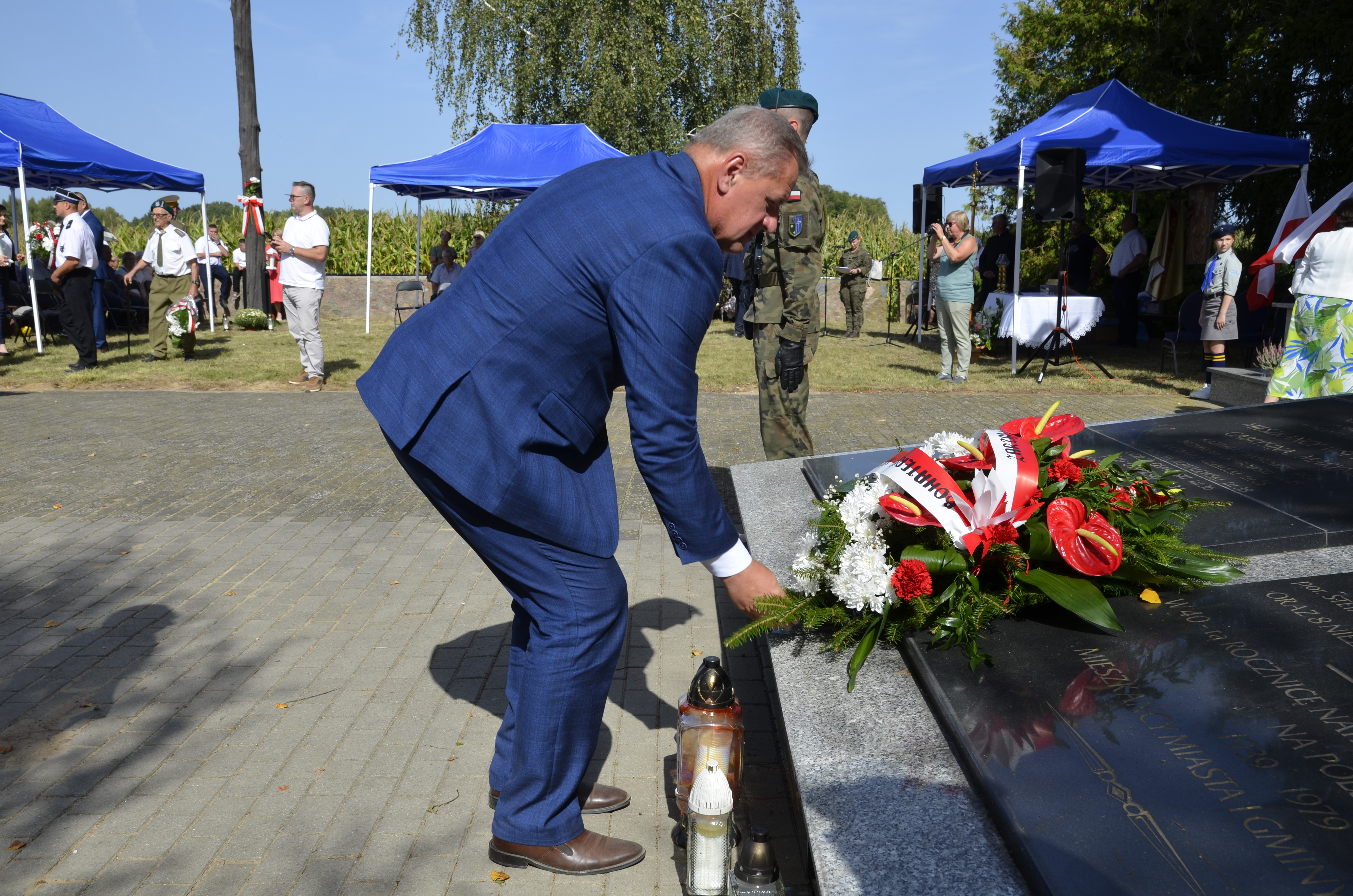 Po przemówieniach odczytany został apel poległych, a kompania honorowa Giżyckiej Brygady Zmechanizowanej oddała salwę honorową. Po pomnikiem oraz płycie upamiętniającej ofiary wrześniowej bitwy złożone zostały wiązanki kwiatów.
