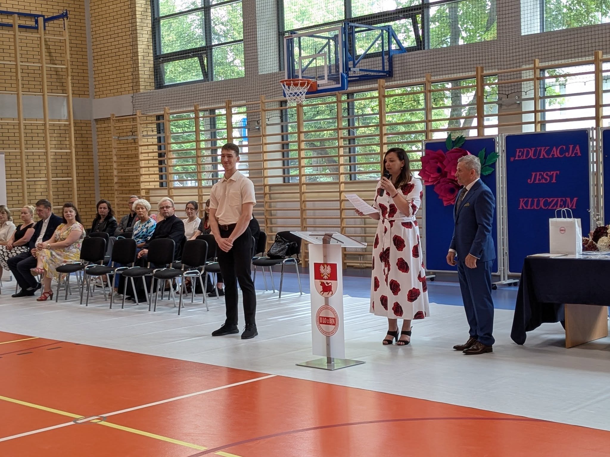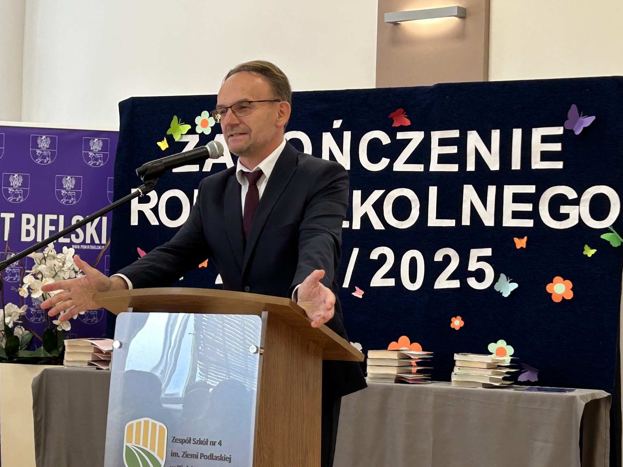 W Zespole Szkół nr 4 im. Ziemi Podlaskiej uroczystość zaszczycił swoją obecnością wicestarosta Piotr Bożko, który pogratulował uczniom sukcesów edukacyjnych oraz życzył im bezpiecznych i radosnych wakacji.