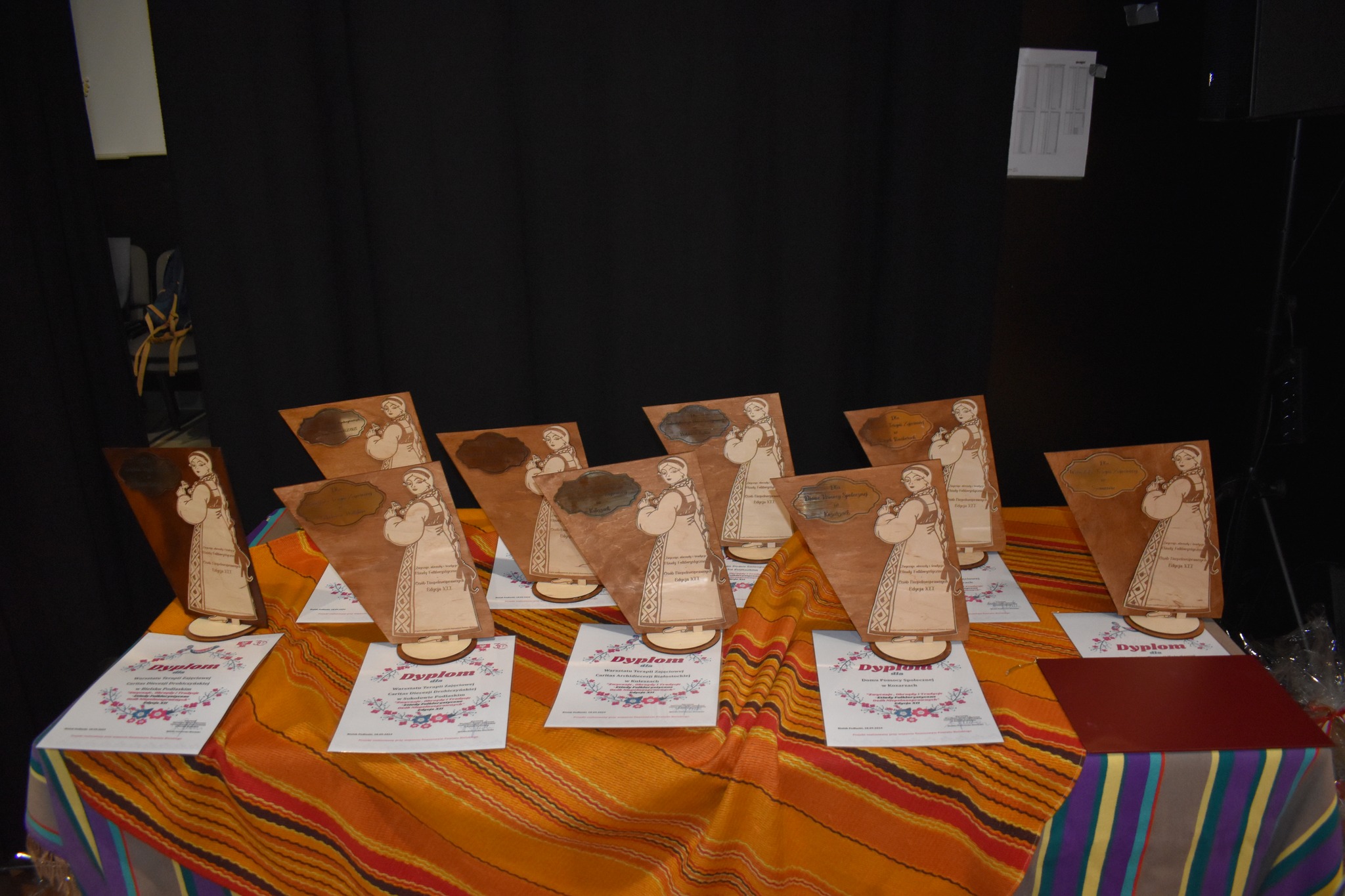 Na zakończenie przeglądu zaproszeni goście: starosta bielski Sławomir Jerzy Snarski, wicestarosta Piotr Bożko, członek zarządu powiatu Maciej Bobel oraz dyrektor Powiatowego Centrum Pomocy Rodzinie w Bielsku Podlaskim Urszula Kitlas wręczyli przedstawicielom występujących zespołów dyplomy, statuetki i kosze słodyczy, a także wykonali wspólne okolicznościowe zdjęcia. Następnie wszyscy udali się na przepyszny posiłek.