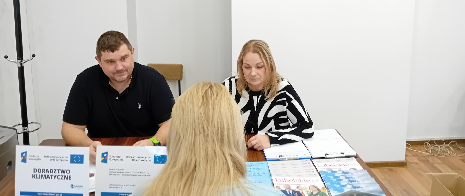 Doradcy klimatyczni w ramach projektu pn. „Powiat Kraśnicki Neutralny Klimatycznie- stworzenie systemu doradztwa” (nr FELU.03.02-IZ.00-0010/23-00) w ramach środków programu Fundusze Europejskie dla Lubelskiego 2021-2027’’. 6 listopada 2024 r. udzielali indywidualnych konsultacji w Urzędzie Gminy w Kraśniku. Podczas konsultacji zainteresowani mieszkańcy mogli uzyskać praktyczne wskazówki służące ograniczeniu zużycia energii, poprawy jakości powietrza, racjonalnego gospodarowania wodą oraz wykorzystywania energii z odnawialnych źródeł.