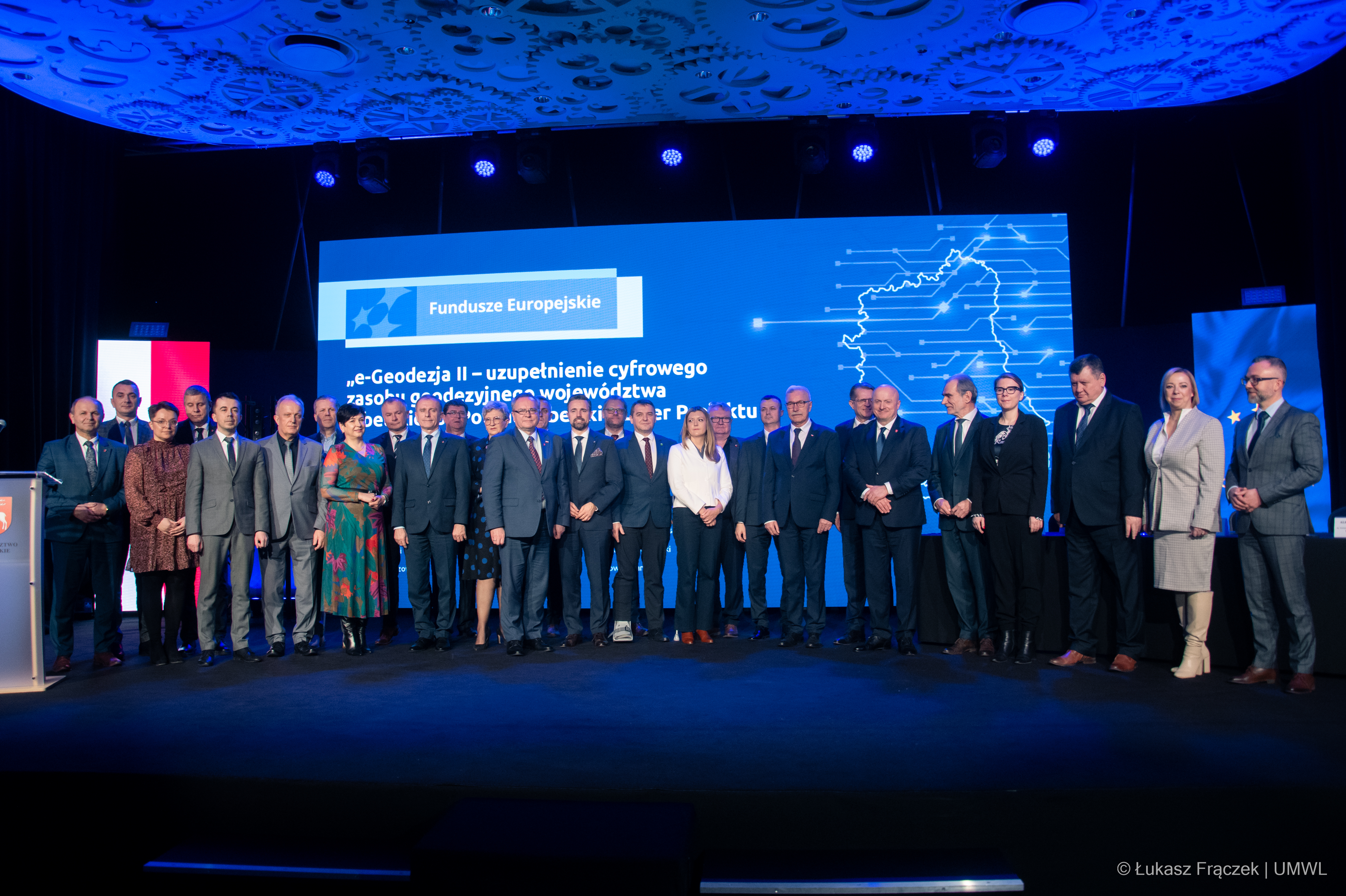 20 lutego 2024 r. miało miejsce uroczyste podpisanie umowy o dofinansowanie projektu pn. „e-Geodezja II - uzupełnienie cyfrowego zasobu geodezyjnego województwa lubelskiego" – zadania wpisanego na listę operacji o znaczeniu strategicznym w programie Fundusze Europejskie dla Lubelskiego 2021 – 2027. Projekt jest kontynuacją zrealizowanego w latach 2016-2021 projektu „e-Geodezja cyfrowy zasób geodezyjny województwa lubelskiego”.