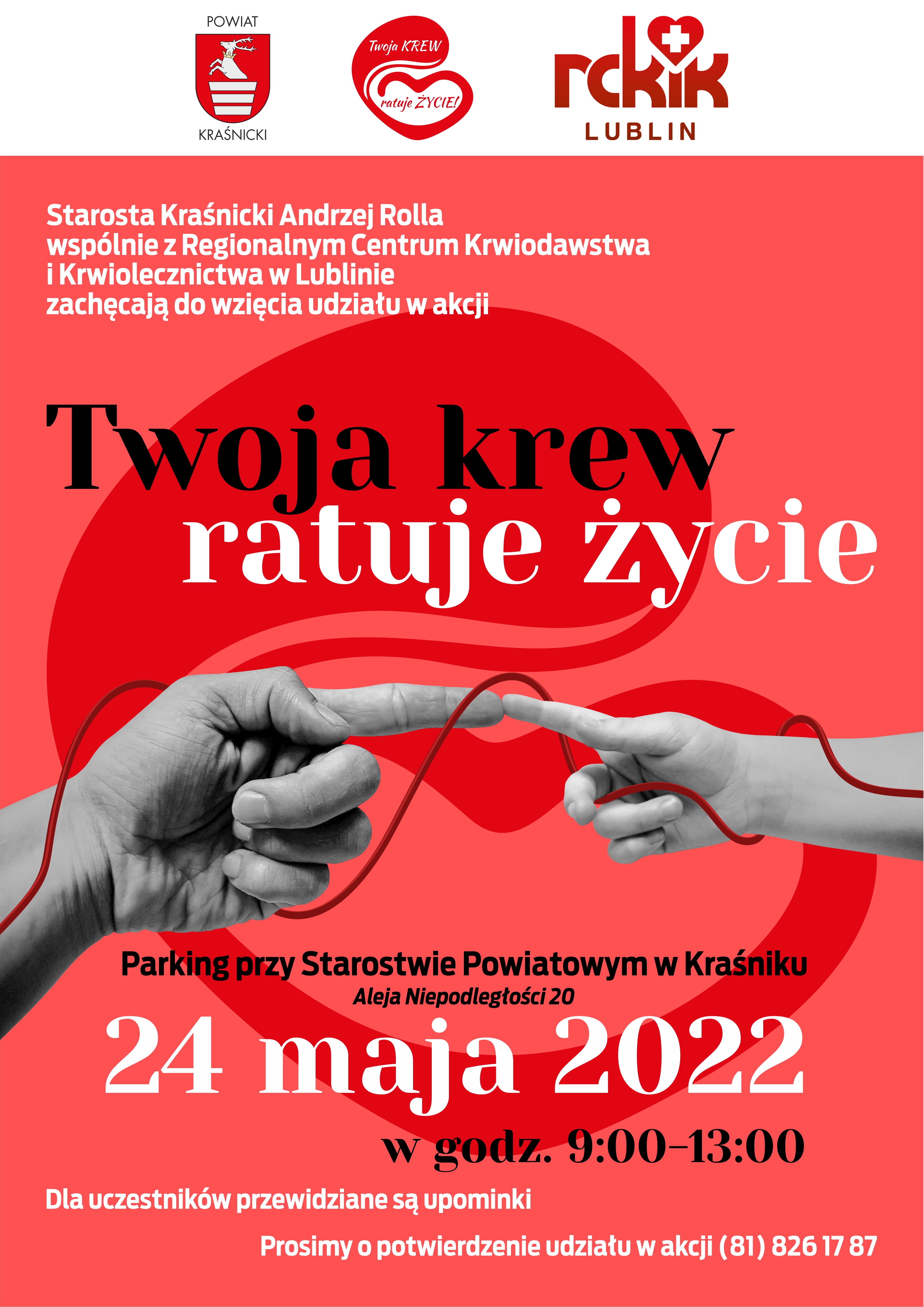 Starosta Kraśnicki Andrzej Rolla oraz Regionalne Centrum Krwiodawstwa i Krwiolecznictwa w Lublinie zapraszają do włączenia się w akcję honorowego oddawania krwi.