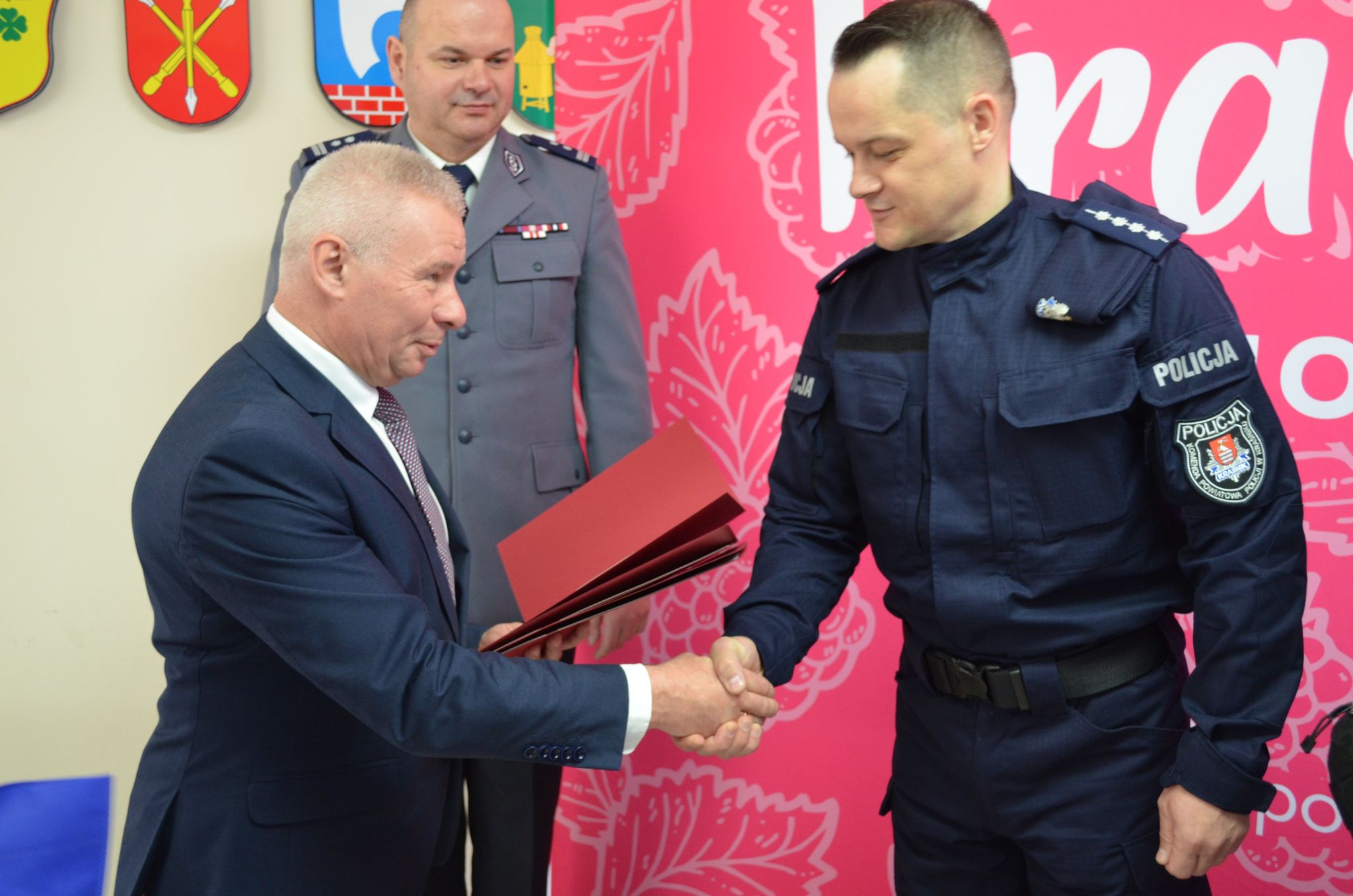 W Starostwie Powiatowym w Kraśniku Starosta Kraśnicki Andrzej Rolla oraz Przewodniczący Rady Powiatu Kraśnickiego Jacek Dubiel spotkali się z Komendantem Powiatowym Policji w Kraśniku mł. insp. Jackiem Figlem oraz Funkcjonariuszami kraśnickiej policji.