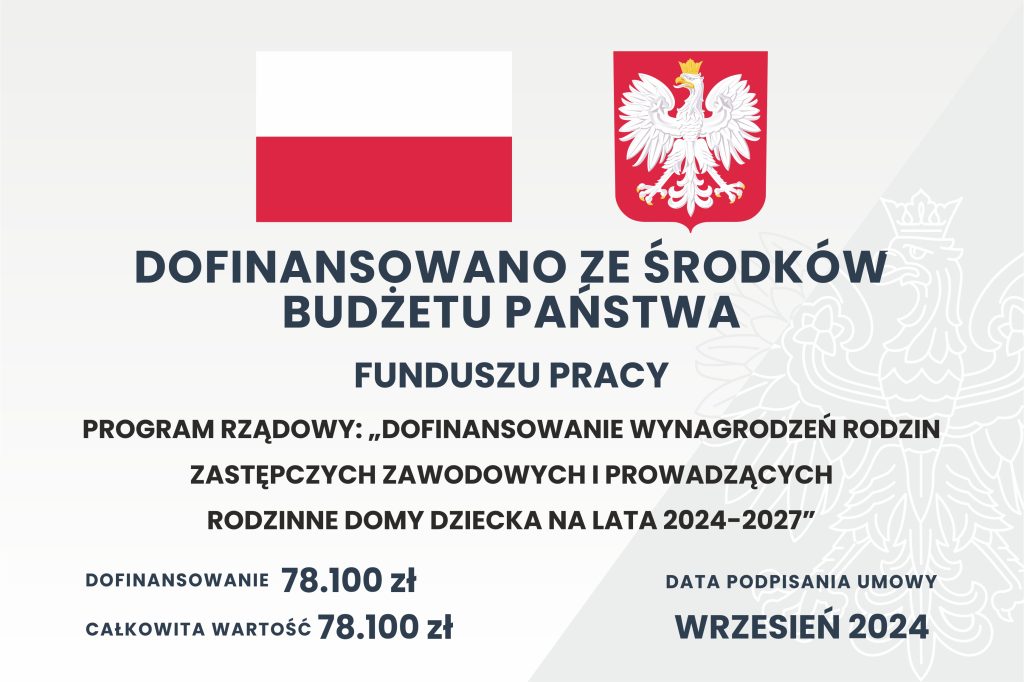 Powiat kraśnicki, za pośrednictwem Wojewody Lubelskiego, otrzymał środki finansowe z Funduszu Pracy w kwocie 78.100 zł na realizację zadań własnych powiatu wynikających z rządowego programu „Dofinansowanie wynagrodzeń rodzin zastępczych zawodowych i prowadzących rodzinne domy dziecka na lata 2024-2027”.