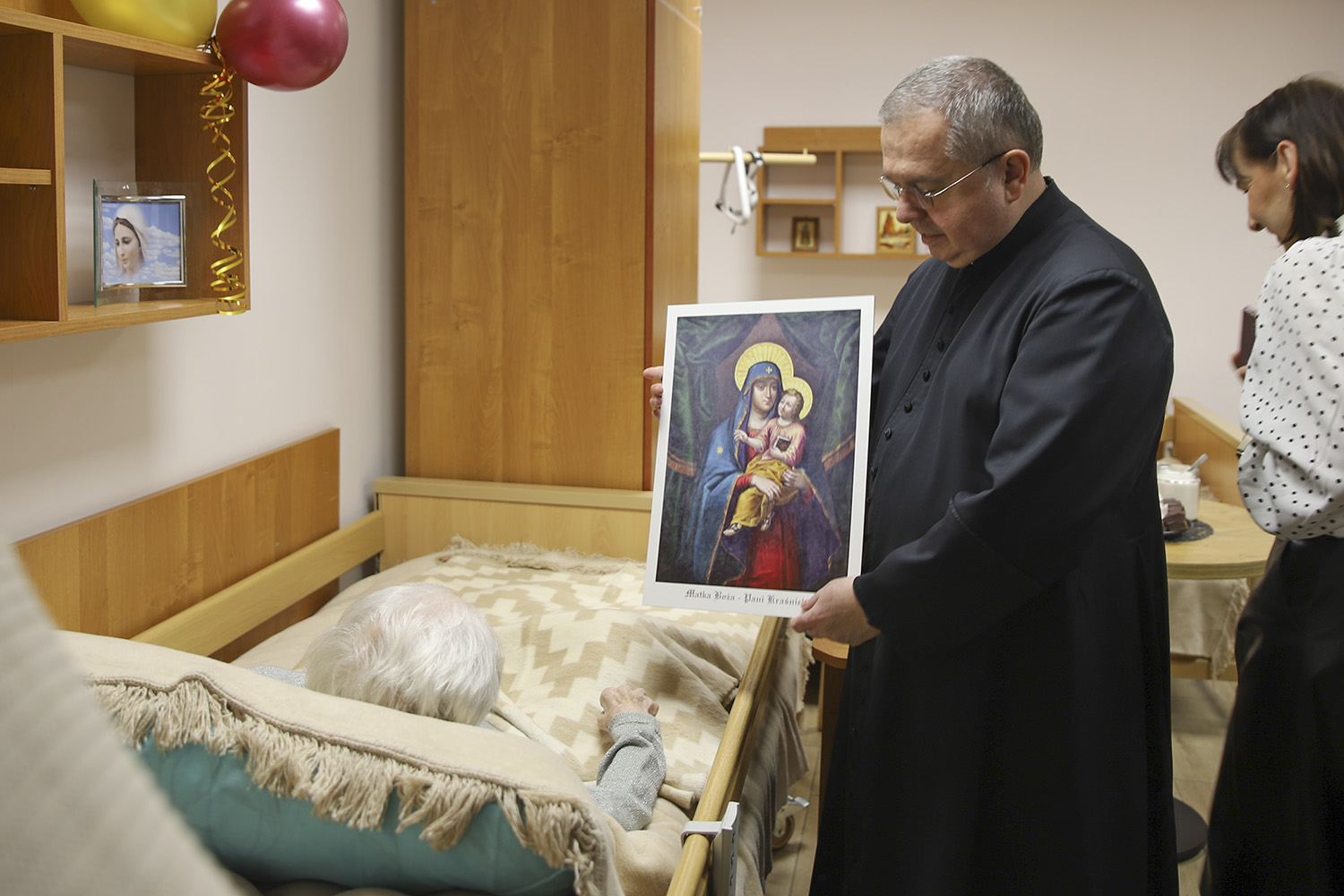Jubileusz rozpoczęła Msza święta w kaplicy placówki, którą celebrował ks. kan. dr Jerzy Zamorski, a następnie rodzina, dyrekcja, pracownicy i pensjonariusze oraz zaproszeni goście złożyli Jubilatce serdeczne życzenia i gratulacje.