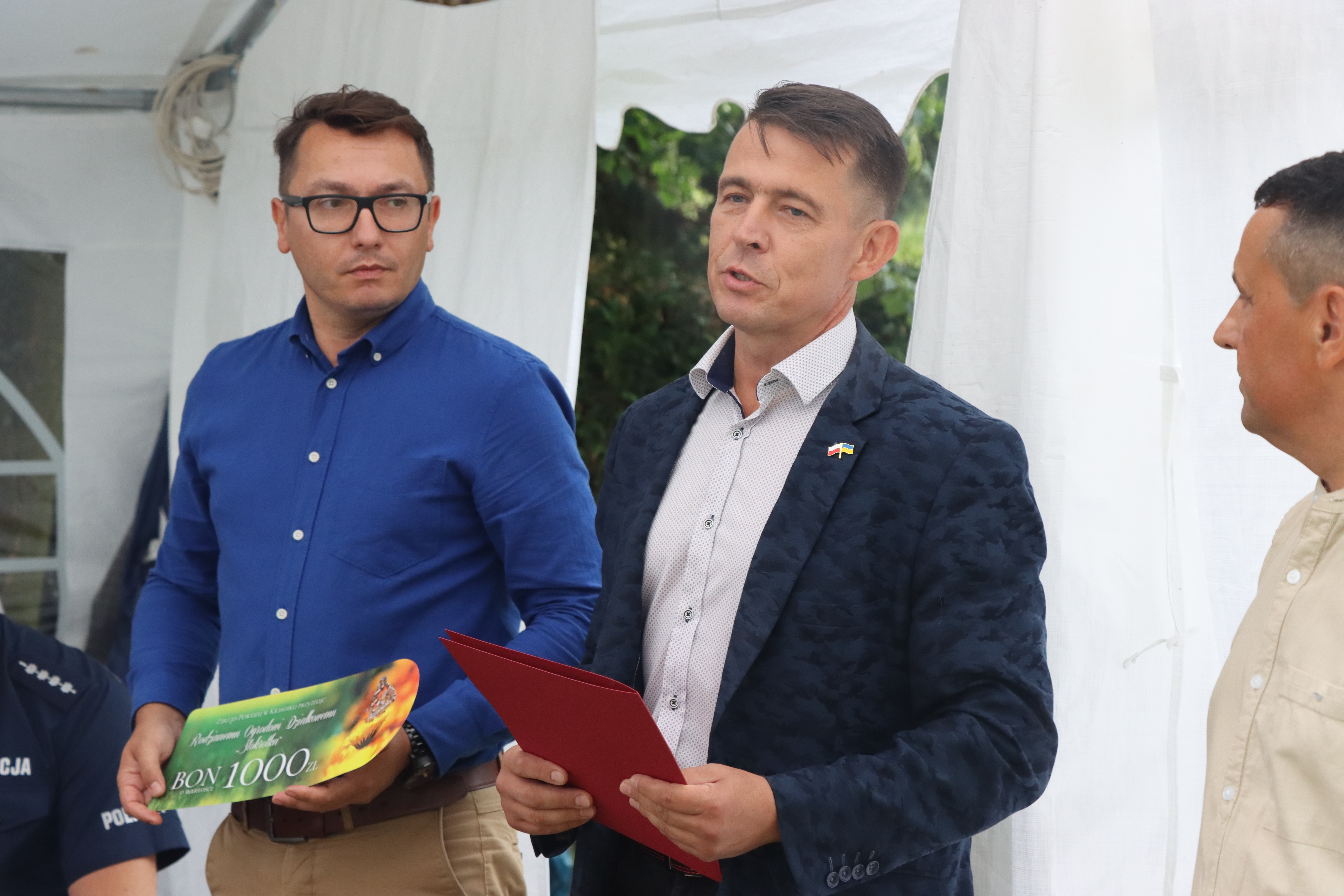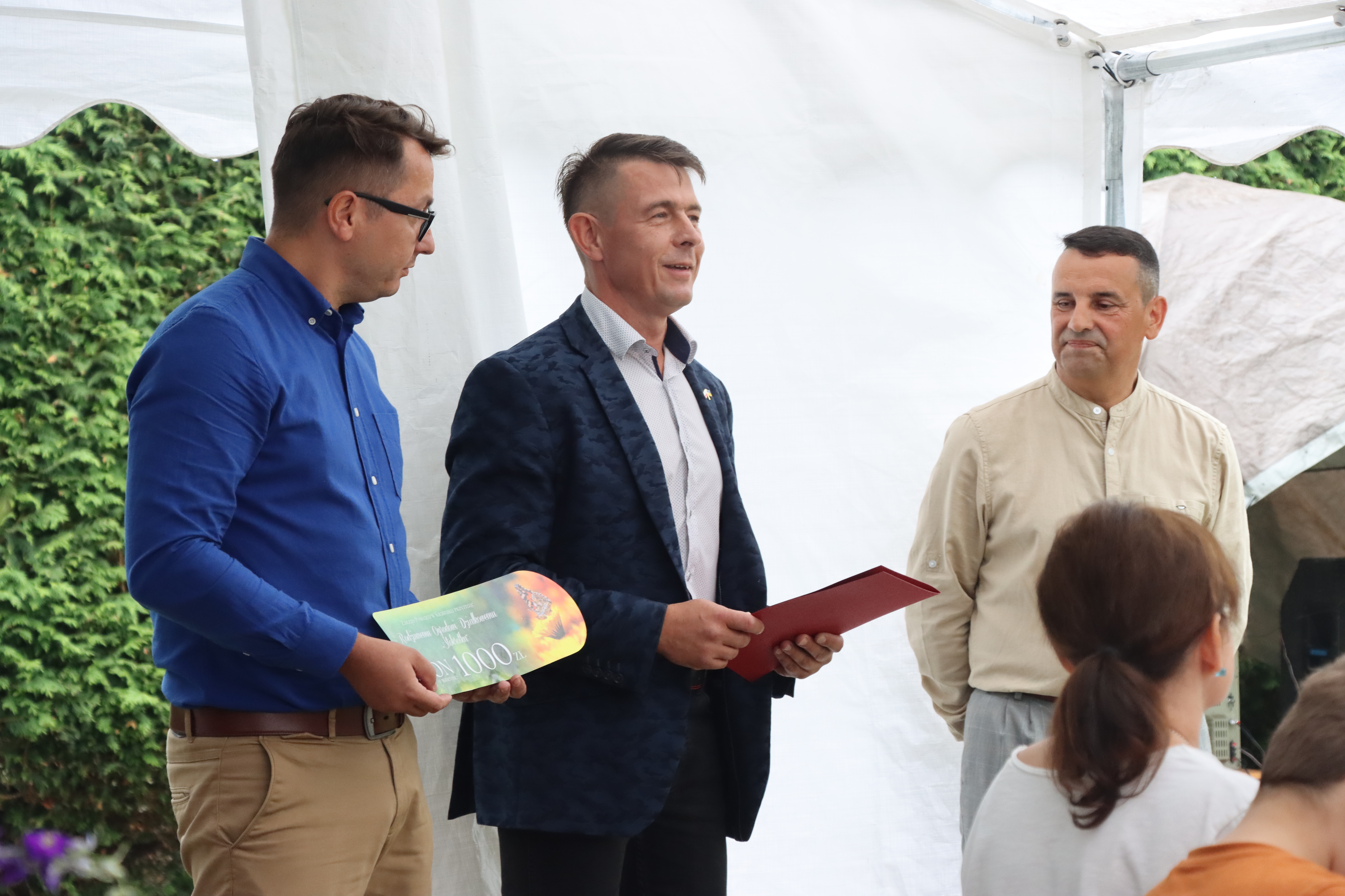 Przewodniczący Jacek Dubiel wyraził uznanie dla działkowiczów i przekazał na ich ręce bon o wartości 1 000 złotych, który zarząd ogrodów wykorzysta przy zakupie niezbędnych urządzeń do pielęgnacji zieleni na terenie ogrodu.