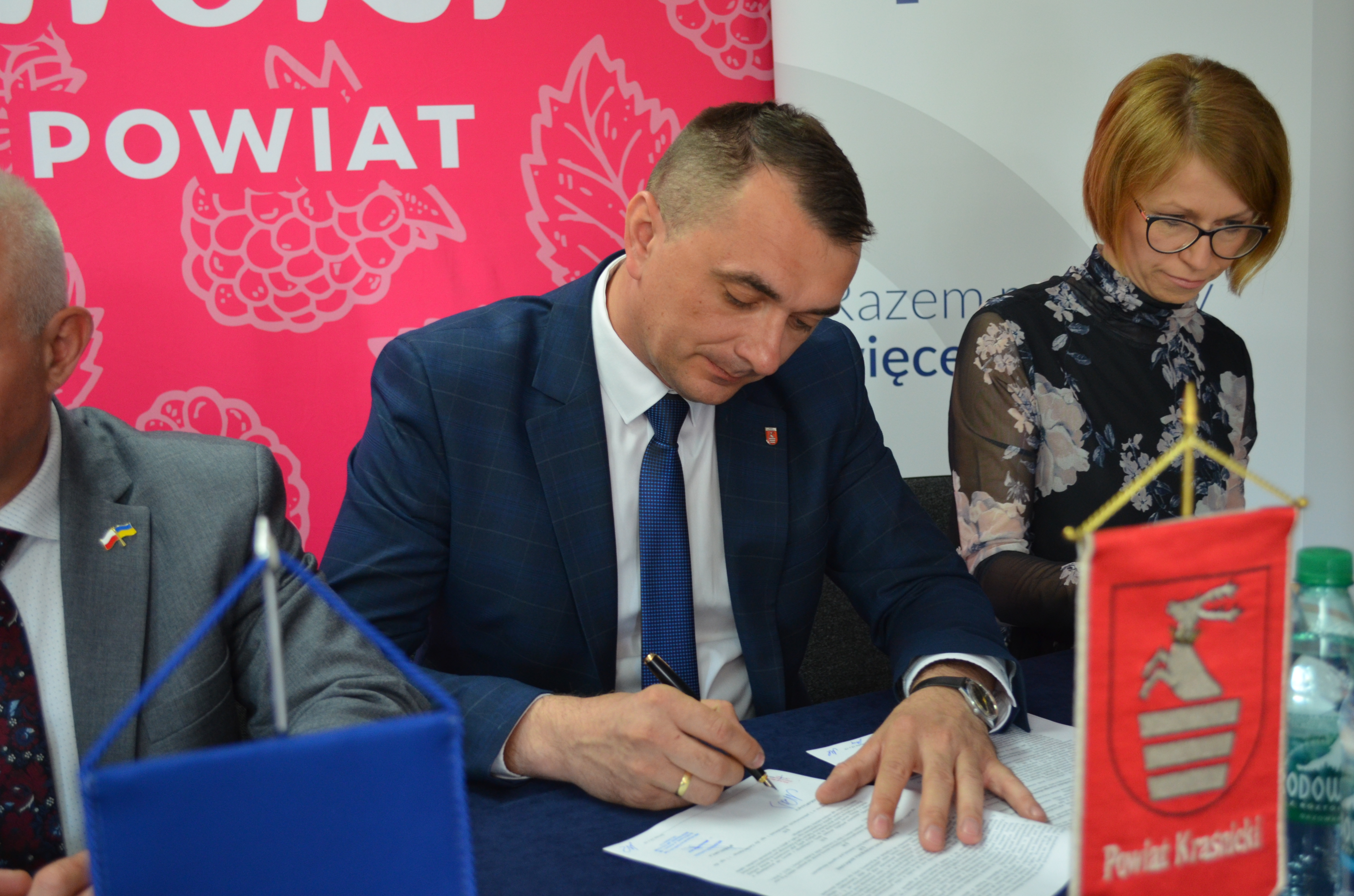 Umowę podpisał Zarząd Powiatu Kraśnickiego, w którego imieniu działają: Starosta Kraśnicki Andrzej Rolla oraz Wicestarosta Kraśnicki Paweł Kudrel, przy kontrasygnacie Skarbnik Powiatu Iwony Szymańskiej i uczestnictwie Przewodniczącego Rady Powiatu Kraśnickiego Jacka Dubiela, jak i Członka Zarządu Powiatu Kraśnickiego Henryka Flisa.