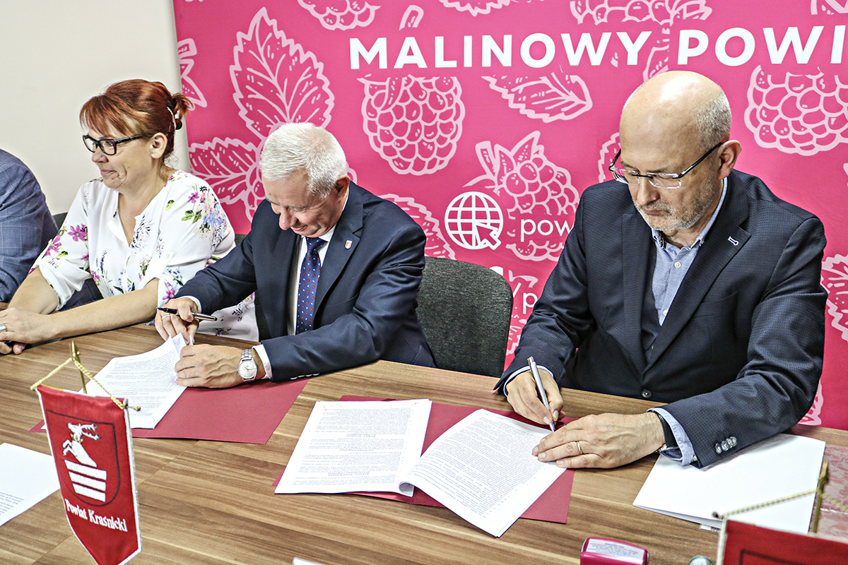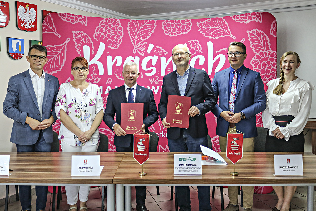 W czwartek Starosta Kraśnicki Andrzej Rolla wspólnie z Sekretarzem Powiatu Łukaszem Skokowskim przy kontrasygnacie Zastępcy Skarbnika Powiatu Agnieszki Rak, podpisali umowy na realizację kolejnych inwestycji drogowych.